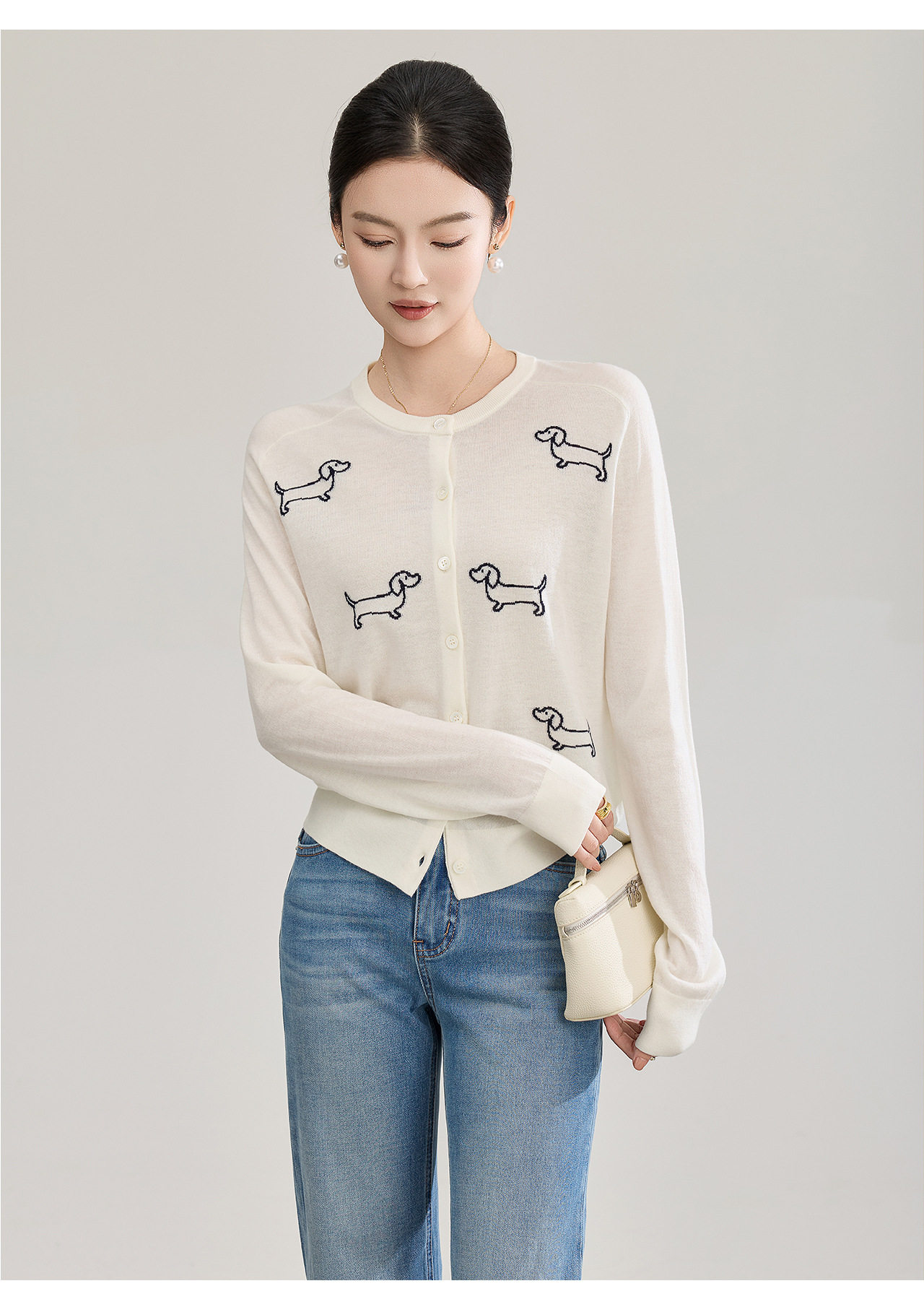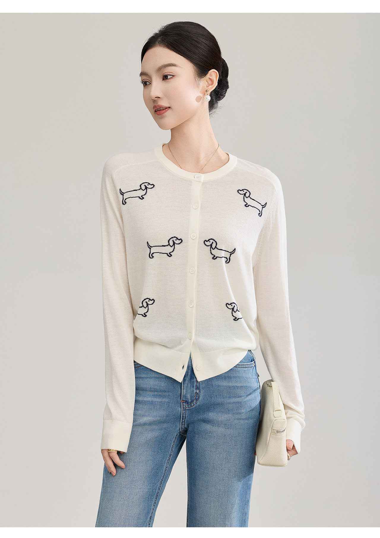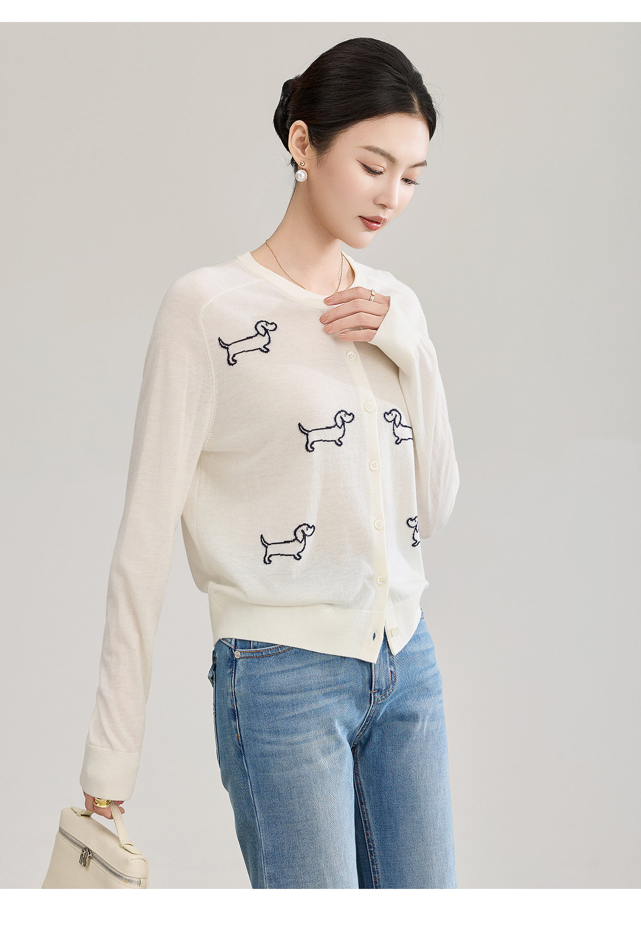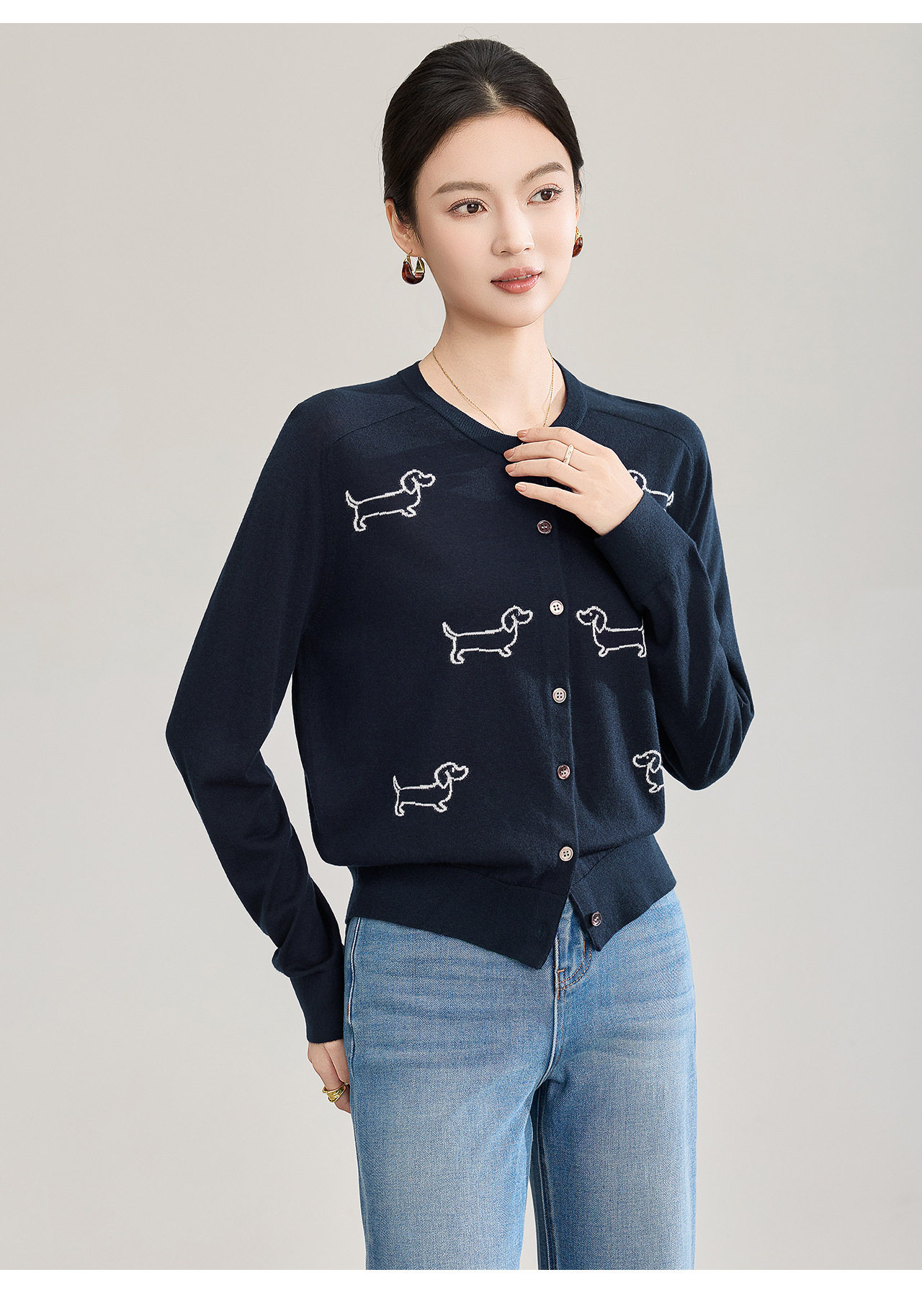 「高货wl」全新升级【铂金会员330/天猫449/差价119】(11741)洛诗琳气质羊毛混纺上衣2026春季新款小狗刺绣针织开衫