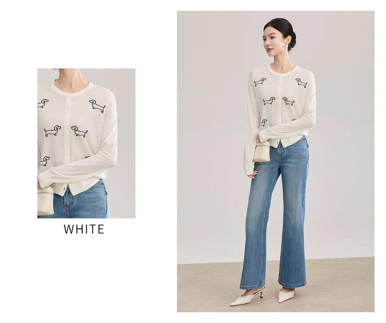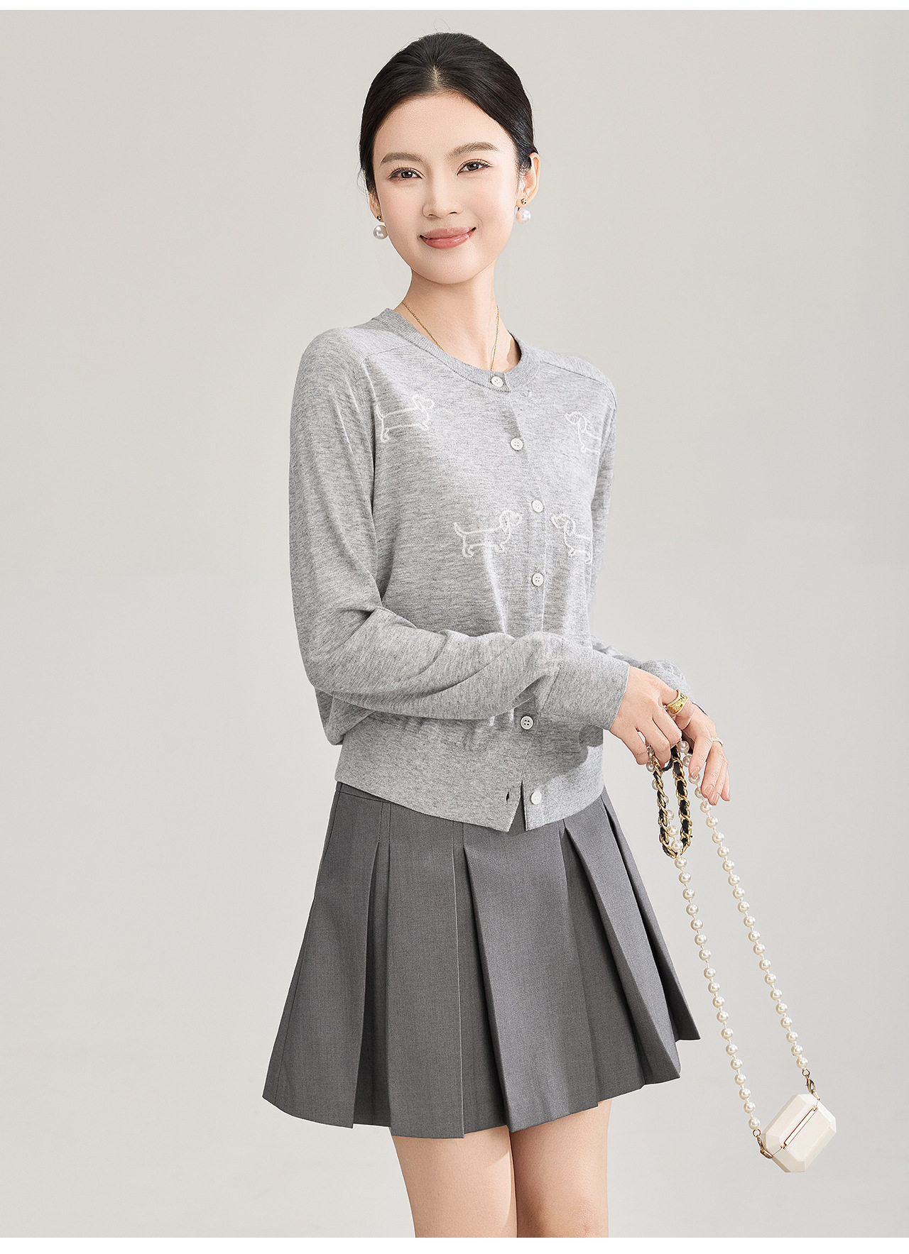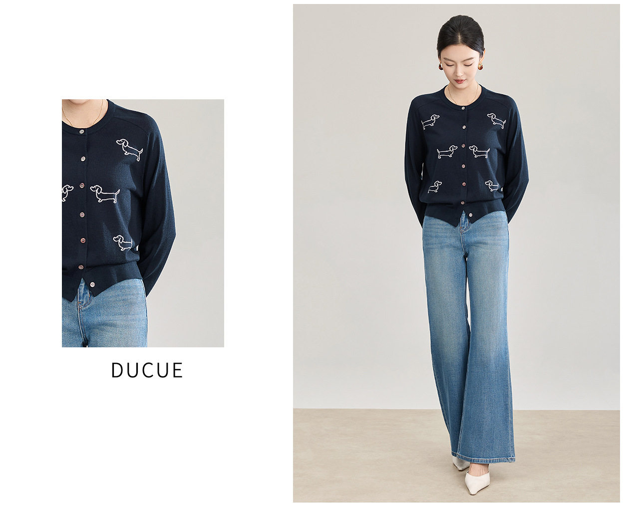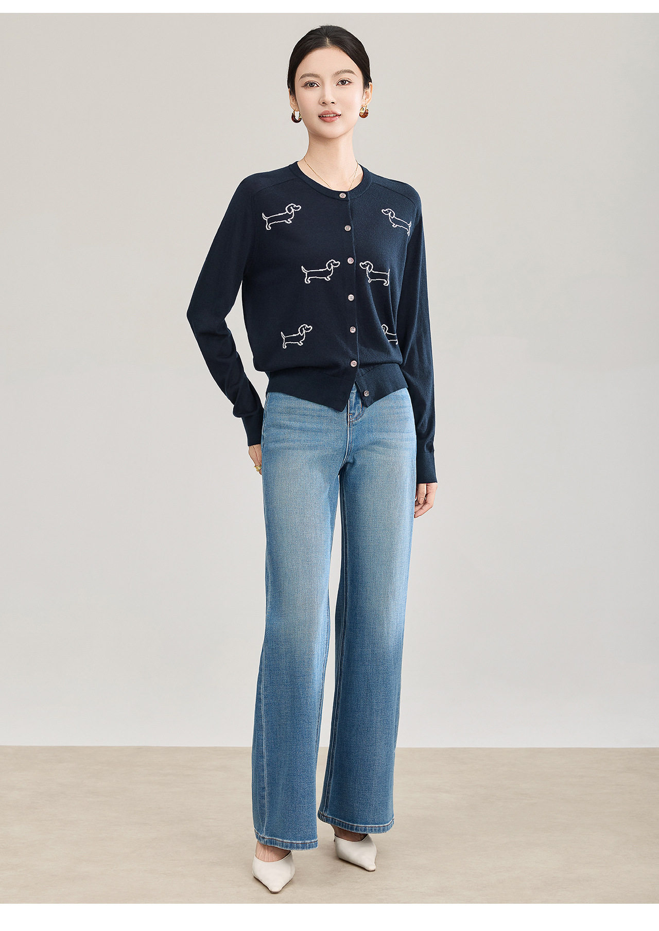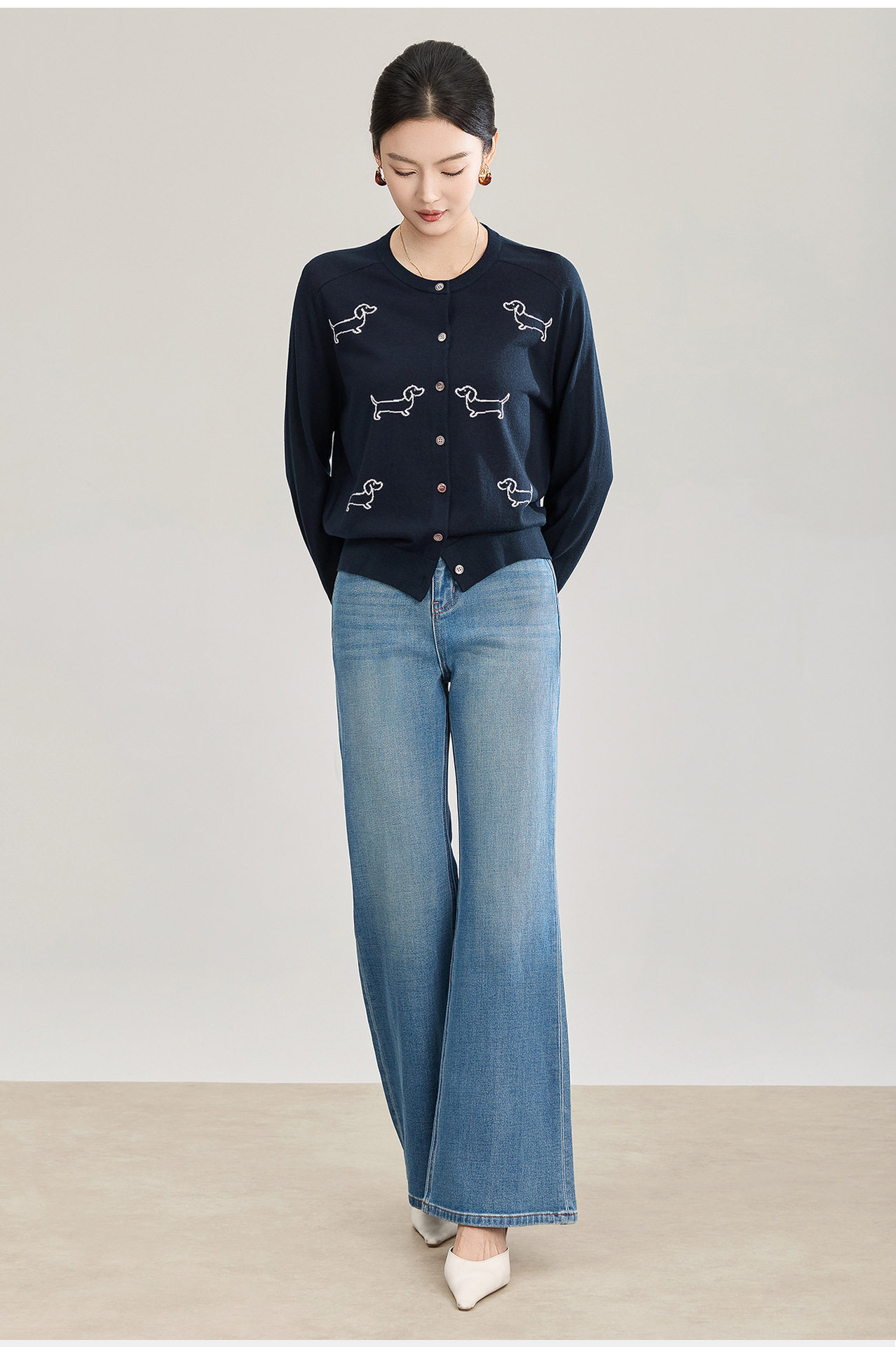 「高货wl」全新升级【铂金会员330/天猫449/差价119】(11741)洛诗琳气质羊毛混纺上衣2026春季新款小狗刺绣针织开衫