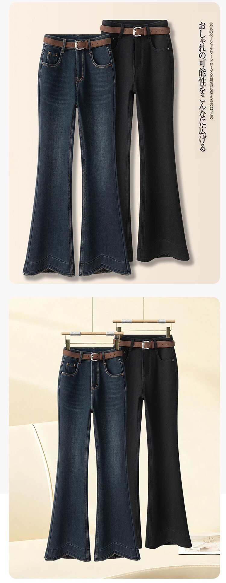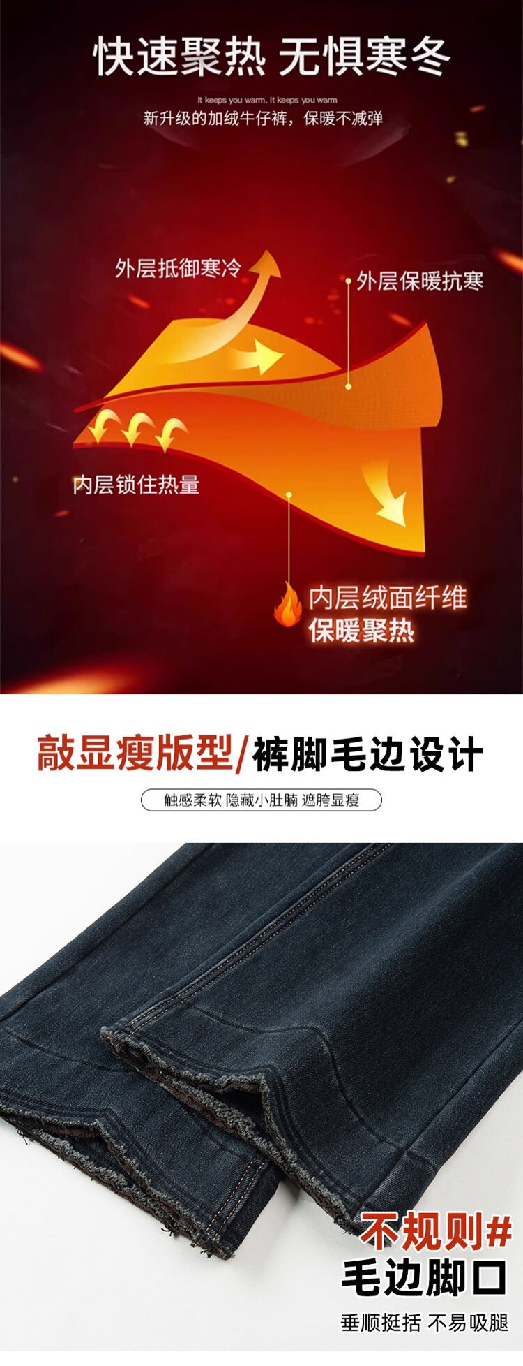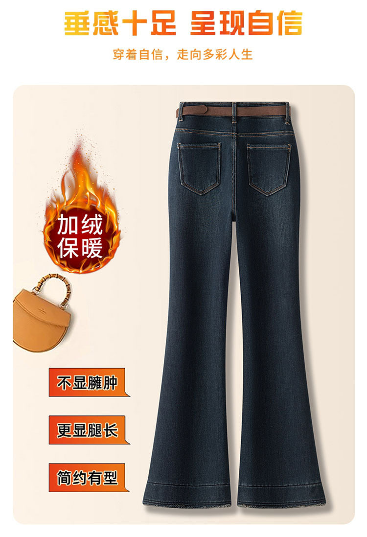 「自」全新升级【铂金会员165/天猫219/差价54】(00942)洛诗琳复古毛边加绒牛仔裤2025年秋冬新款高腰显瘦喇叭裤