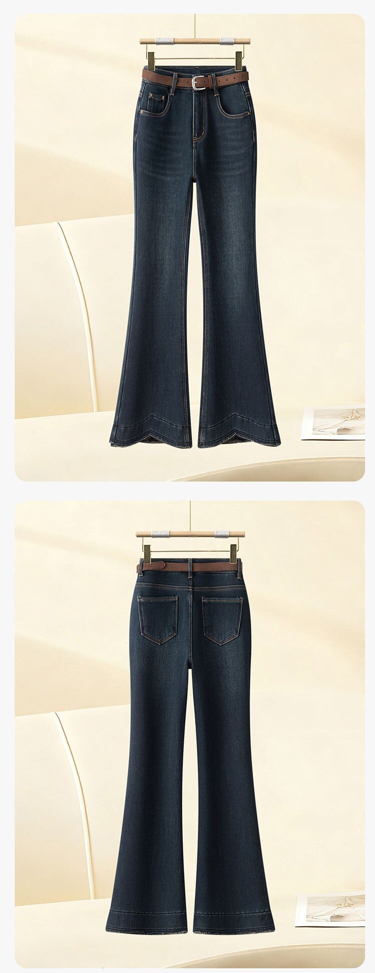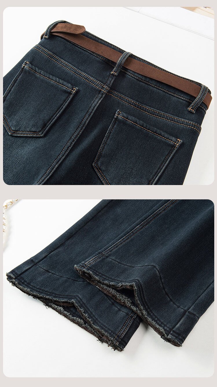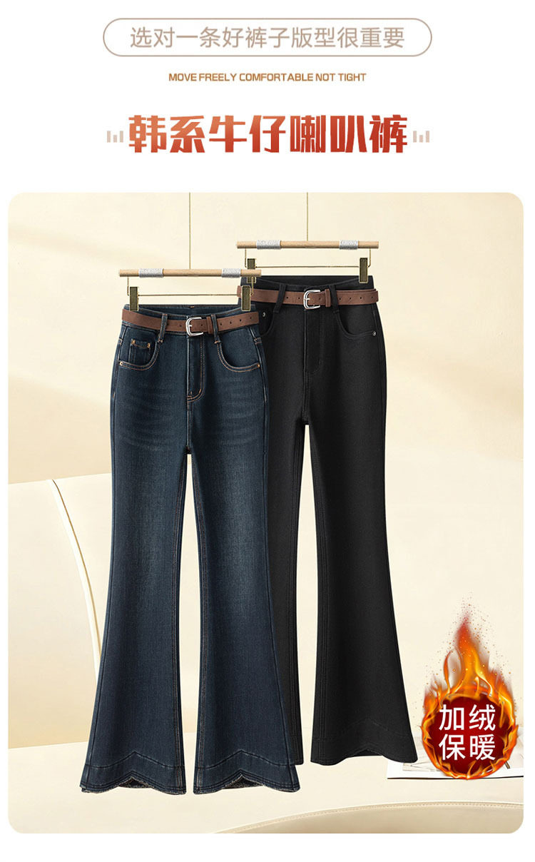 「自」全新升级【铂金会员165/天猫219/差价54】(00942)洛诗琳复古毛边加绒牛仔裤2025年秋冬新款高腰显瘦喇叭裤