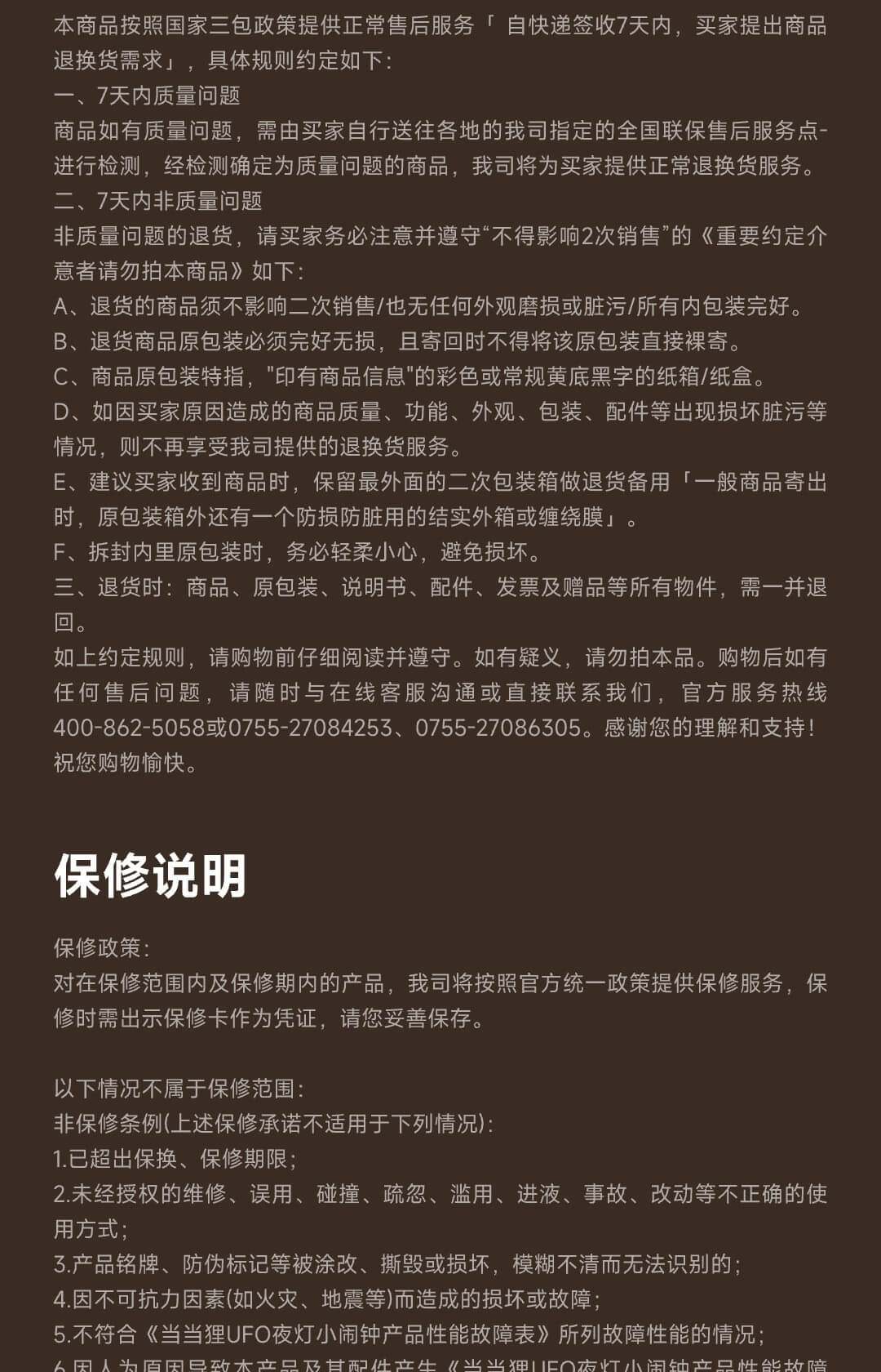 支持7天无理由退货退款(不影响二次销售)在不影响商品完好的情况下,自收货之日起7日内无理由退换货,非产品质量问题的退换货产生的物流费用,由顾客自行承担。