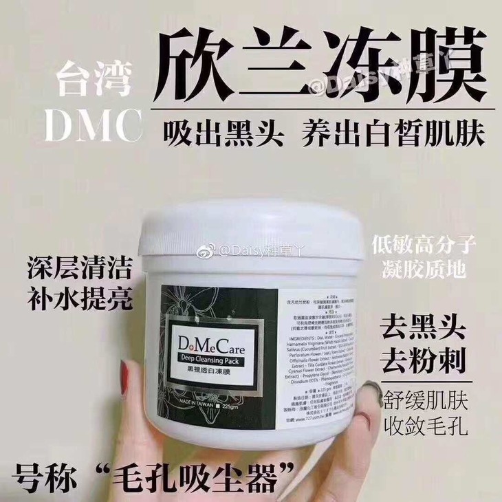 灣DMC欣蘭黑裡透明凍膜500g❗ ~毛孔清道夫🌸🌸欣兰冻膜中含有大量孟宗竹炭和其他多種營養成分:孟宗竹炭👻具有超強吸附能力,將毛孔中的污垢統統吸出來,🙈🙈皮膚自然就白起來了!相信你自己,你本來就很白~它的吸附能力還幫助粉刺、黑頭、白頭上浮,每次用完後臟東西就浮在表面看得見,🙇🏻🙇🏻刮出後再收縮一下毛孔,馬上就感覺清爽無比~🌂女人我最大🎀,湖南衛視🌂強強推薦~~果凍質地上臉很涼很舒服,能夠快速導出肌膚內污垢,上臉20分鐘左右即可用棒子刮去,再溫水清洗🚿🚿,凍膜要塗厚厚的效果才更好!敷完記得來片💦補水面膜哦💦❗️