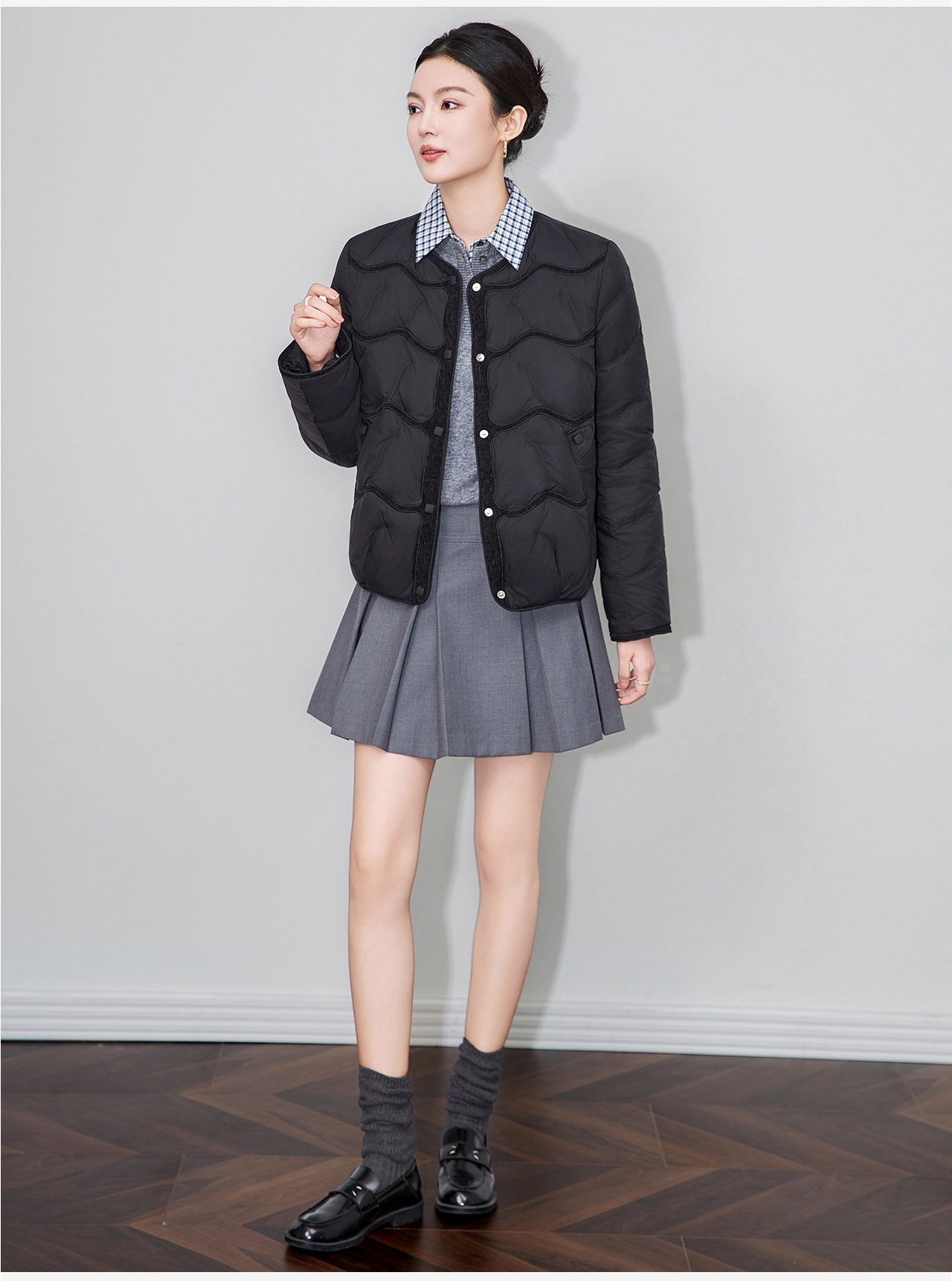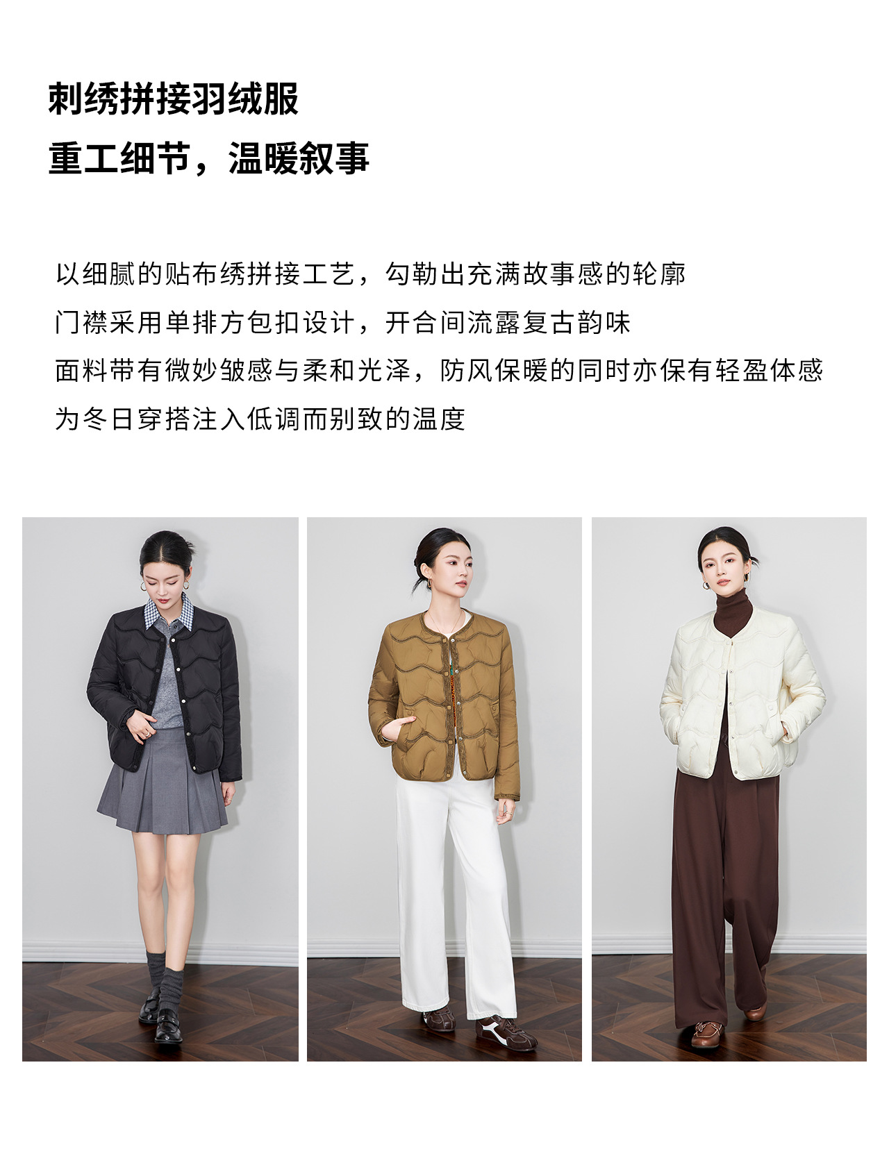 「高货wl」全新升级【铂金会员514/天猫689/差价175】(02738)洛诗琳90白鸭绒羽绒服2025冬季重工刺绣拼接保暖短外套