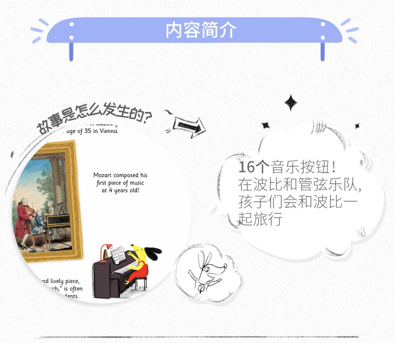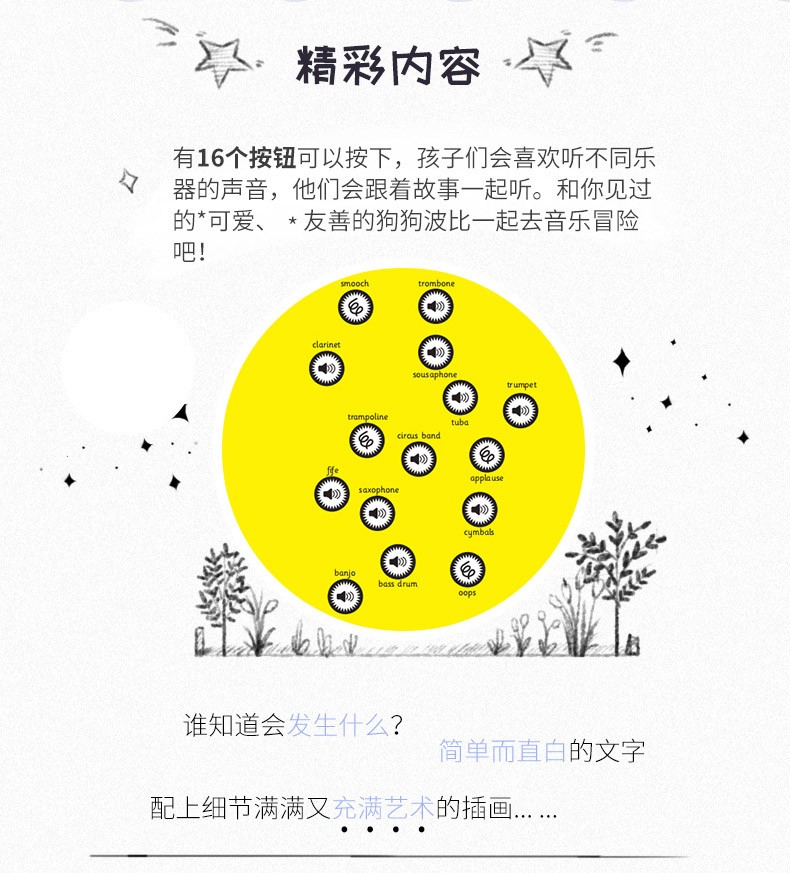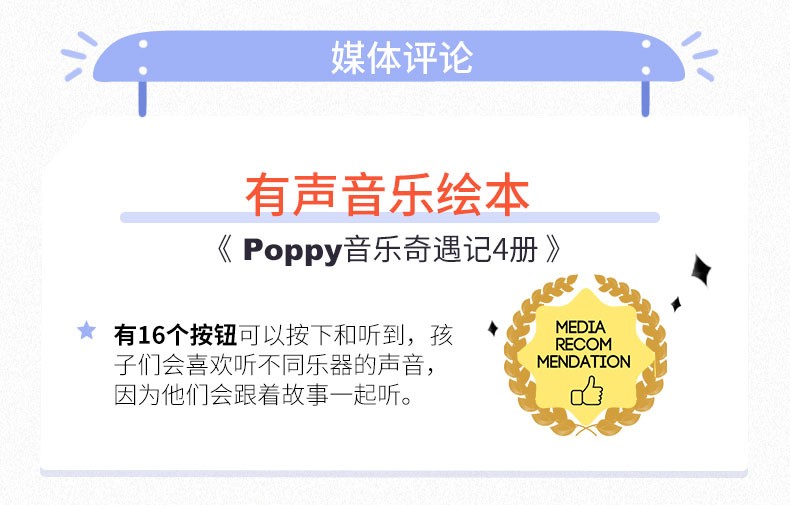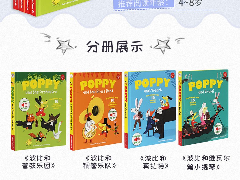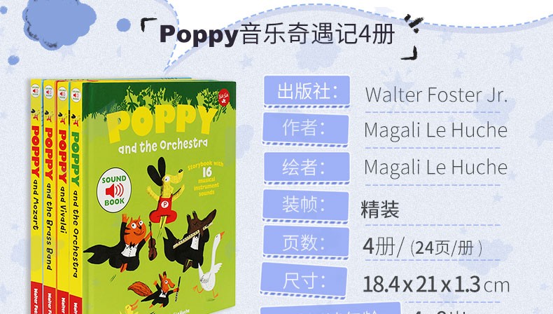 有音频 音乐启蒙发声书 Poppy波比音乐奇遇记 4册精装合售 婴幼儿童早教音律启蒙认知有声发音读物(免费听音频)