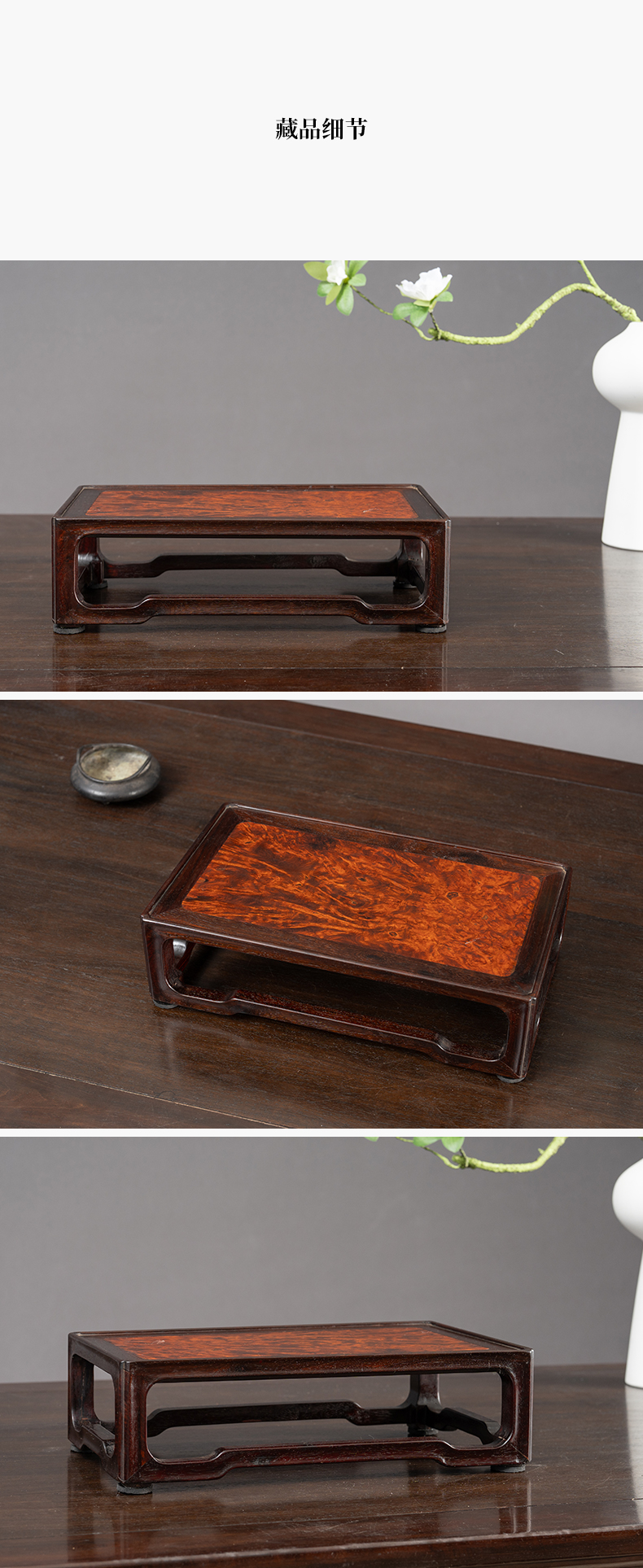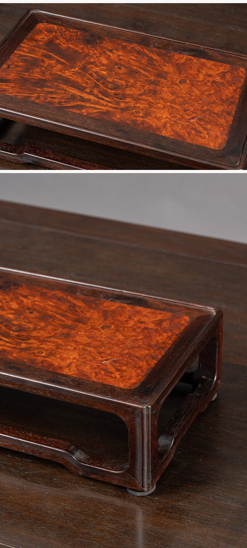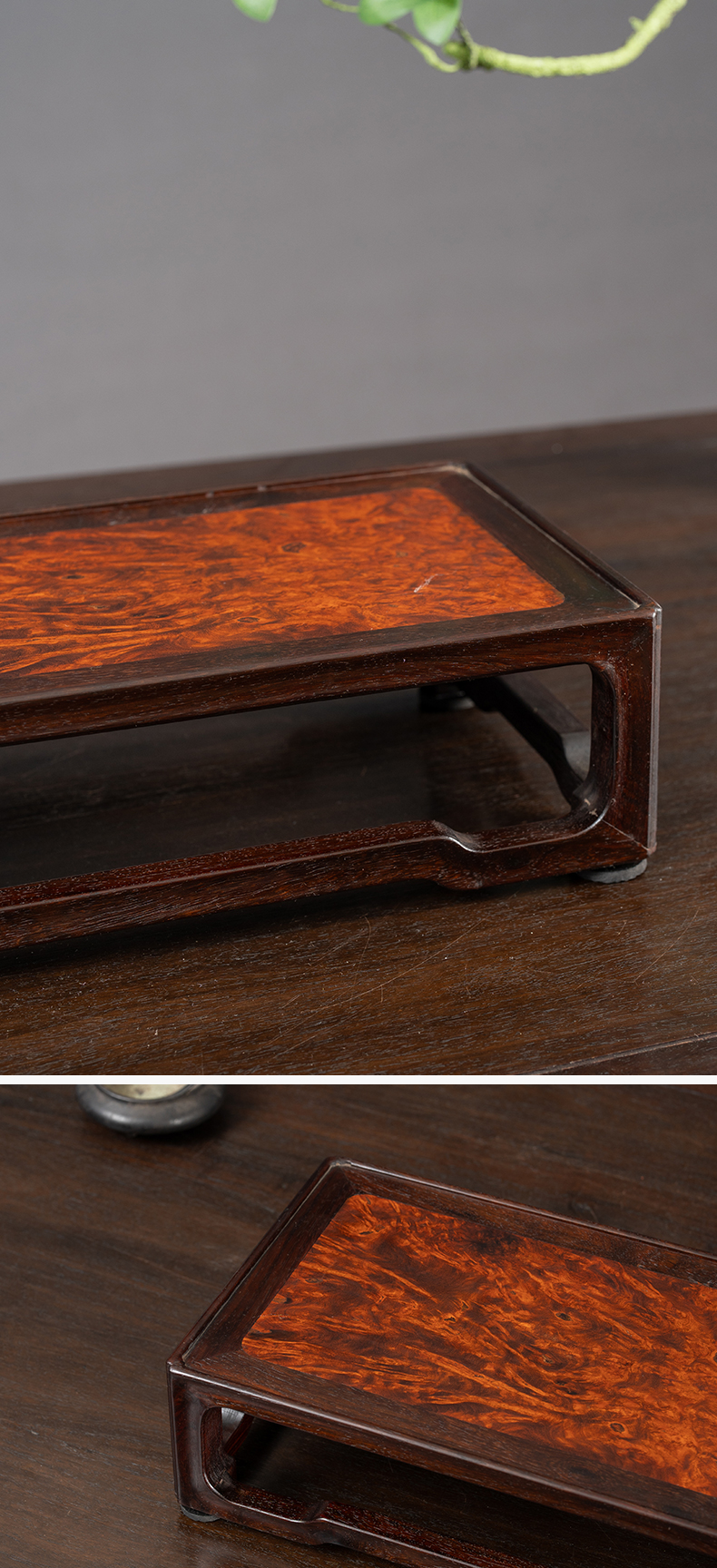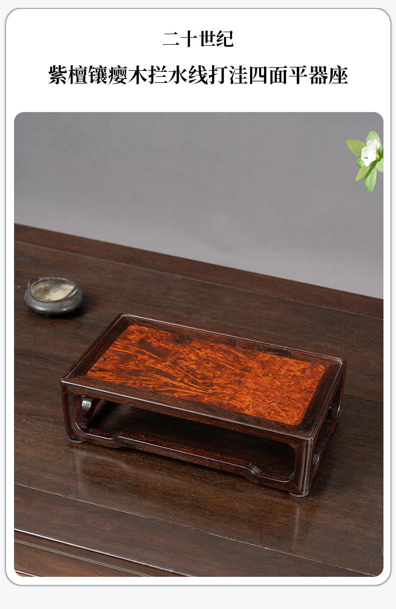 二十世纪 紫檀镶瘿木拦水线打洼四面平器座