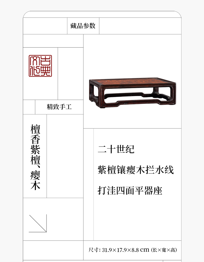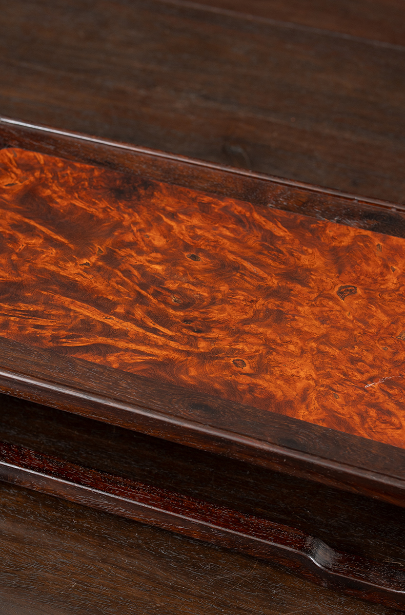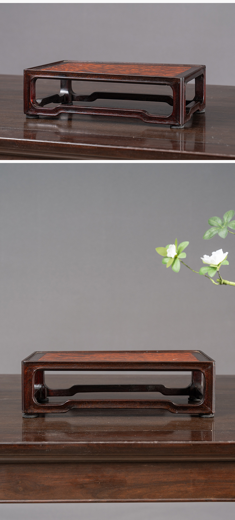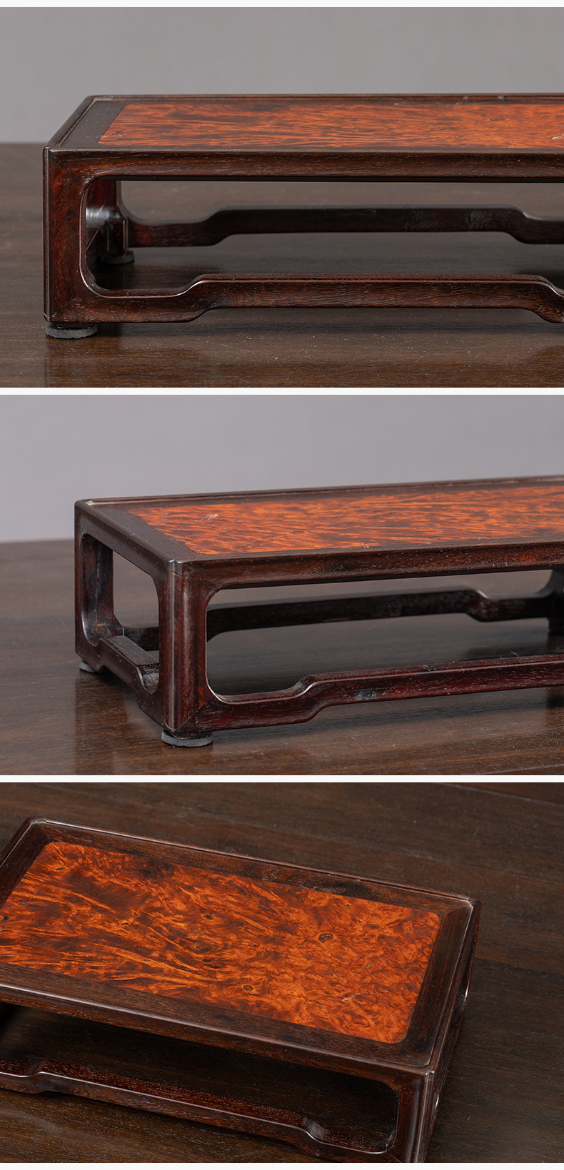 二十世纪 紫檀镶瘿木拦水线打洼四面平器座