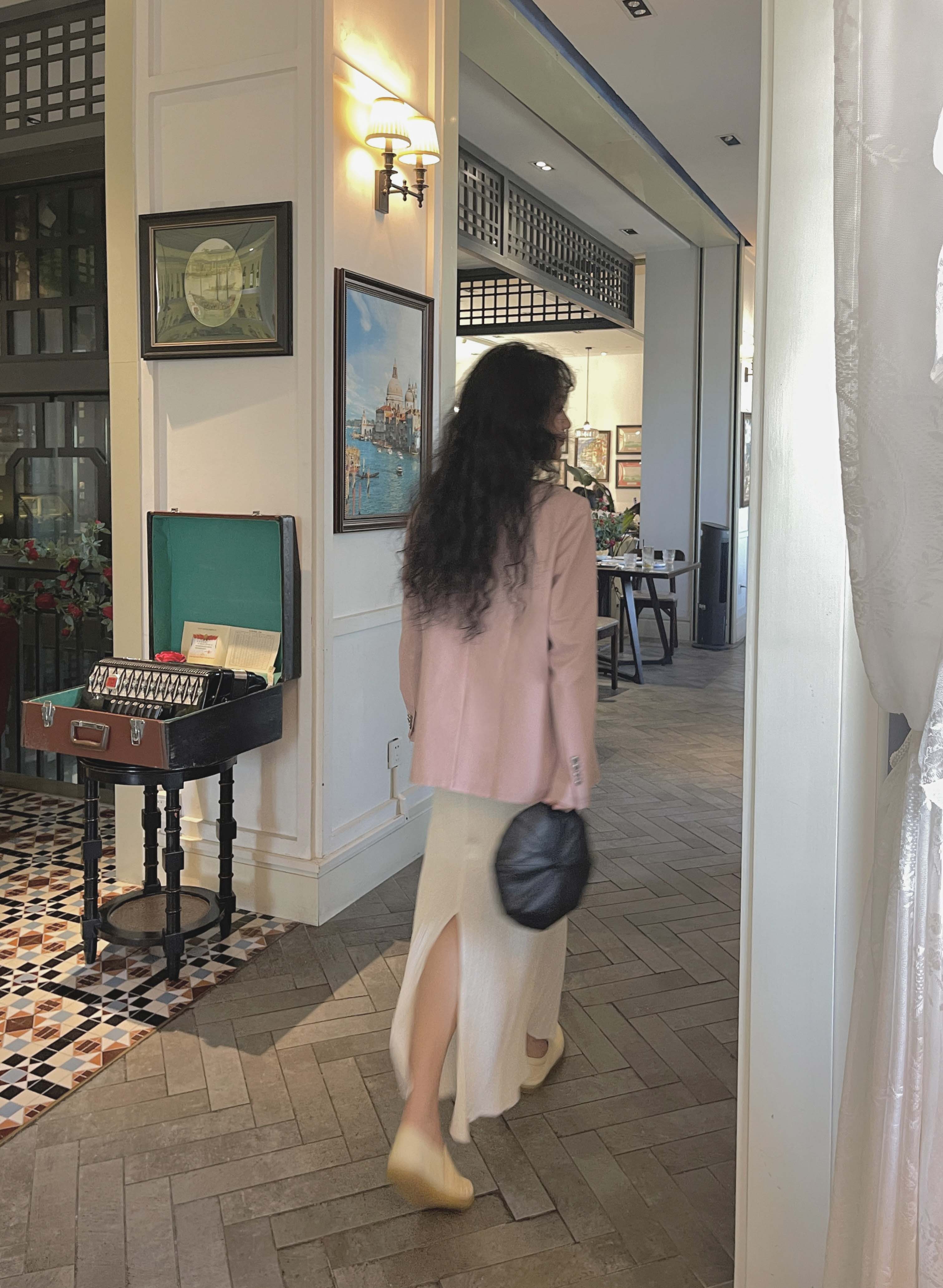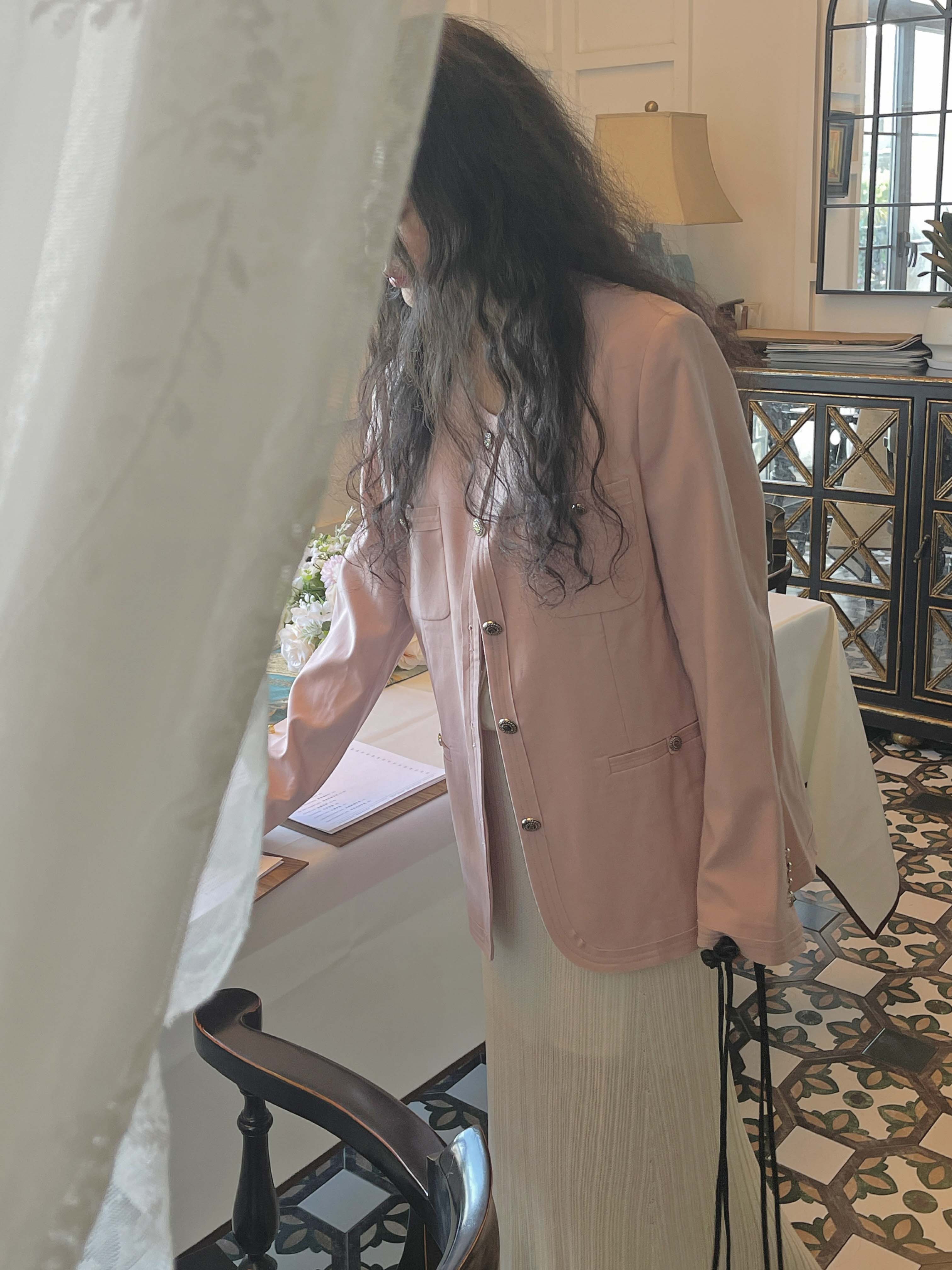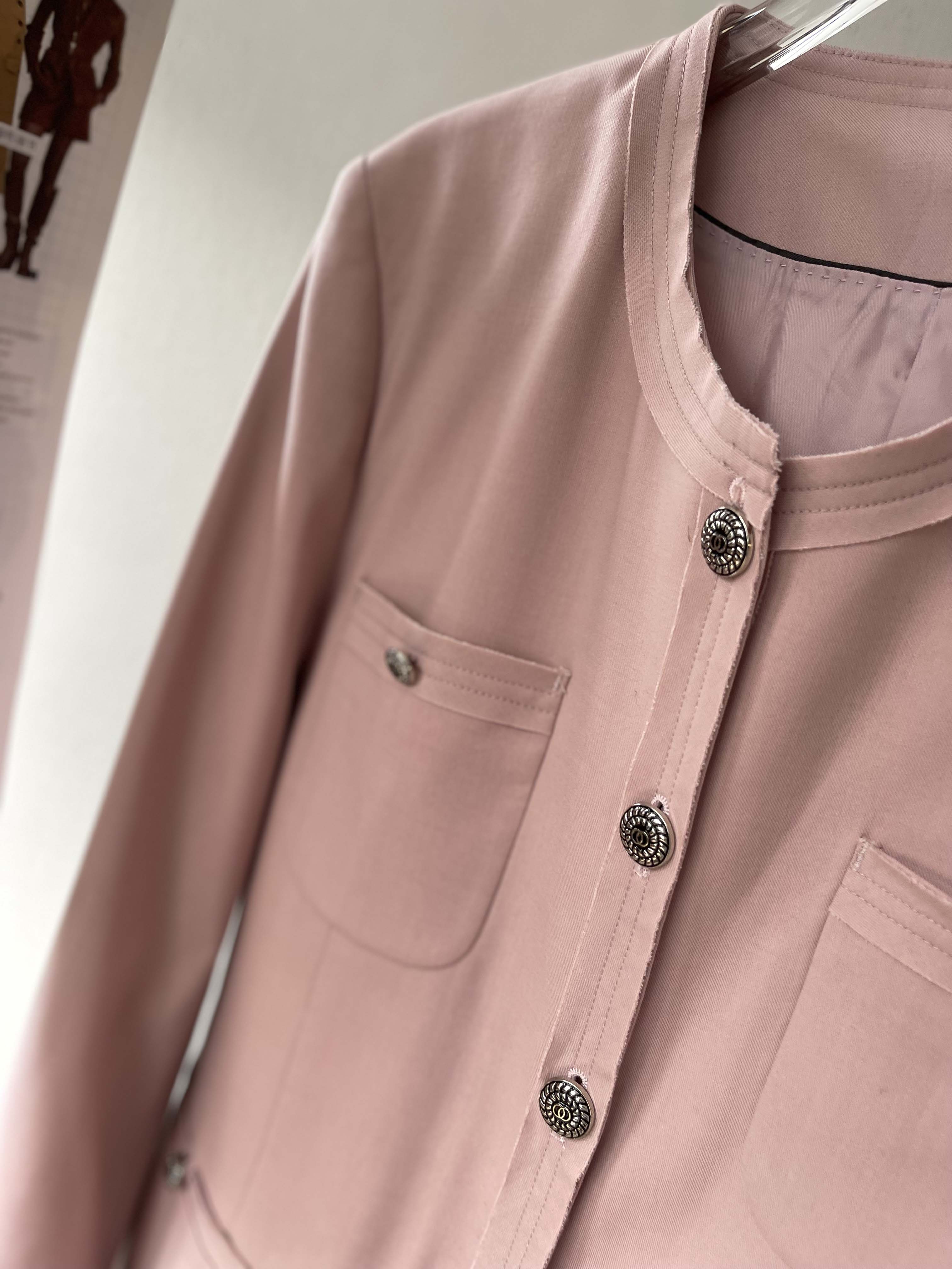 淡淡的粉色,温柔至极「羊毛色织小香风西装」显白提气色,穿出日系甜美感