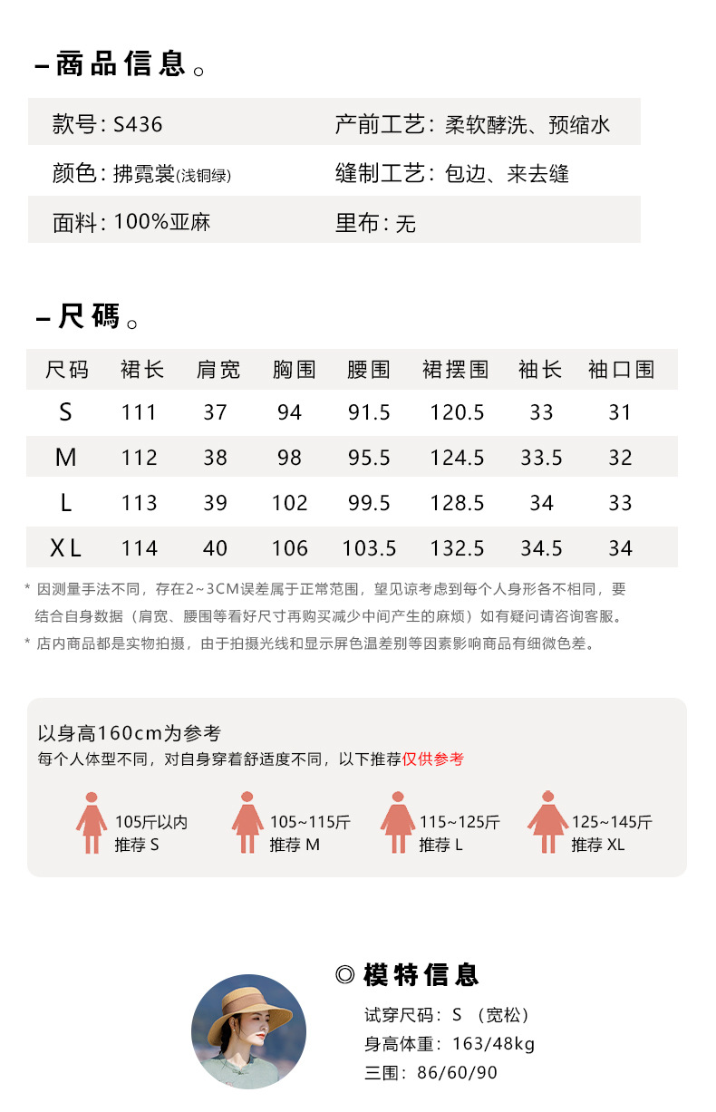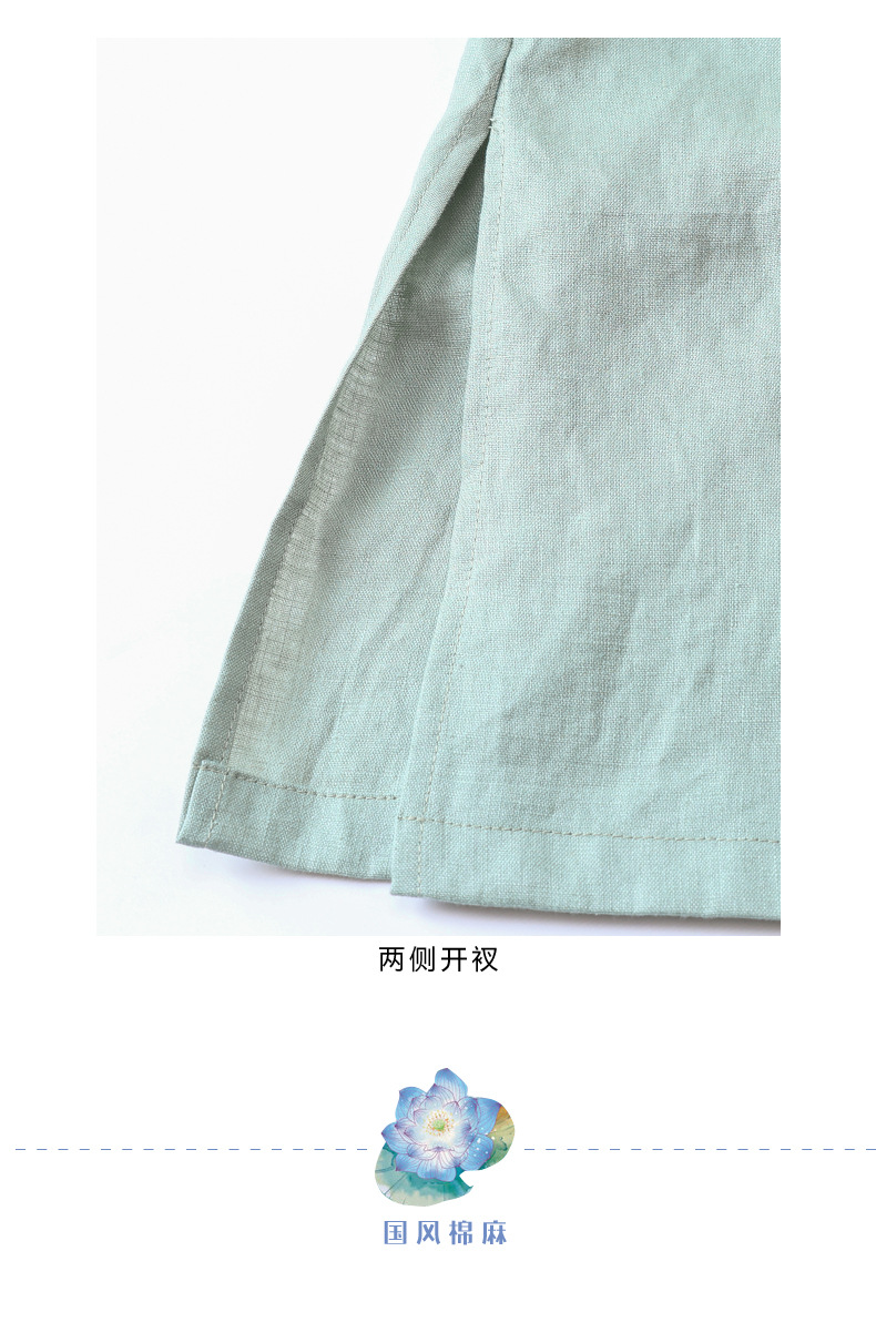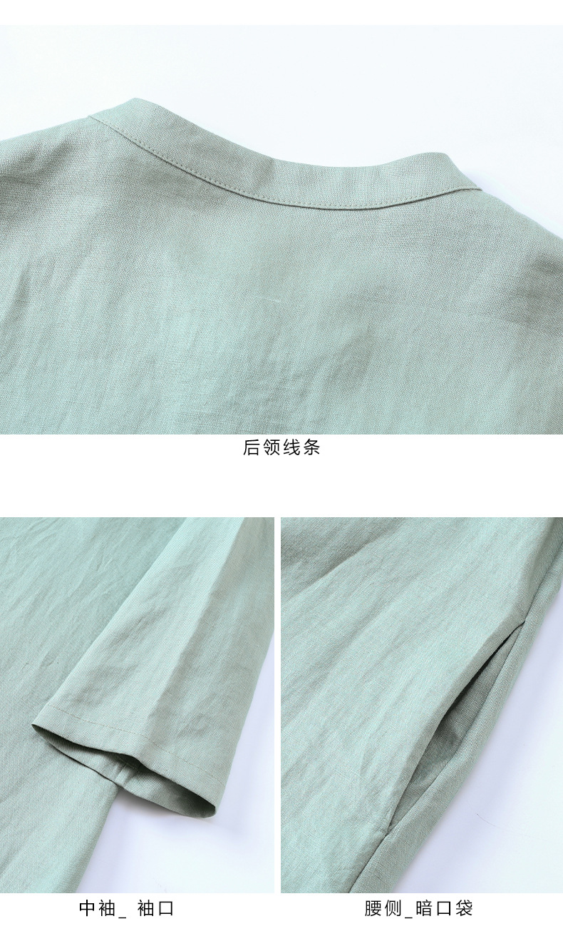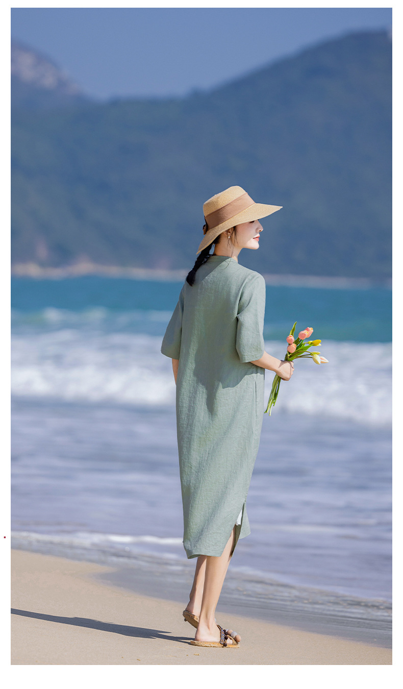 HM-S436国风复古亚麻绣花改良旗袍中式文艺斜襟立领五分袖连衣裙女侧开叉