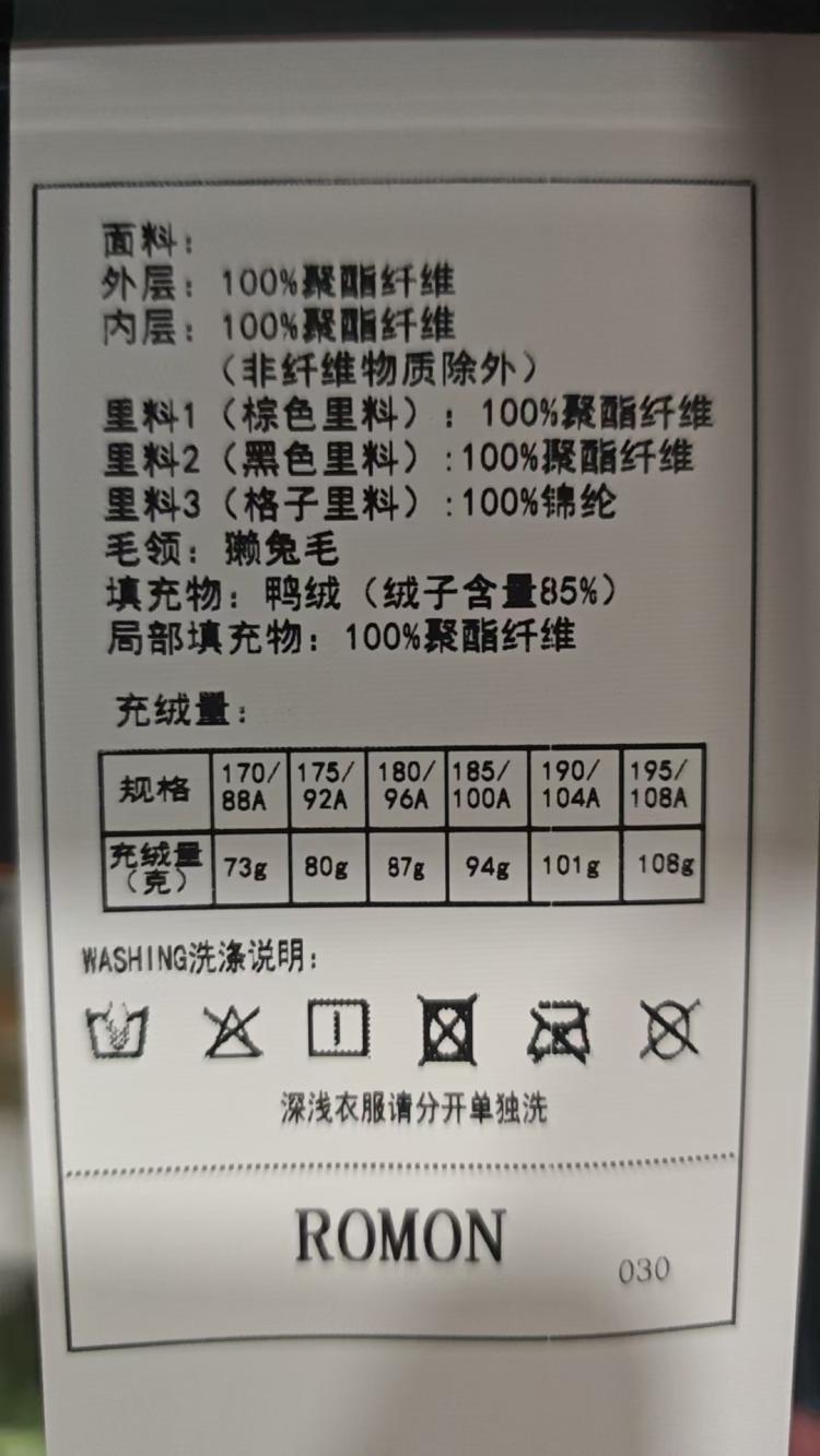 里料 3(格子里料):100%锦纶