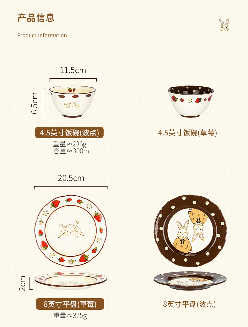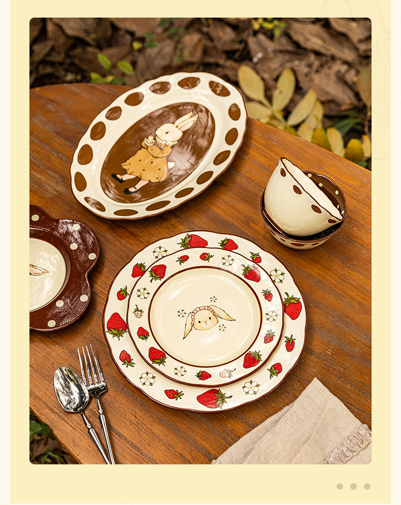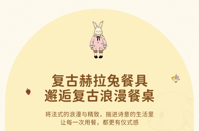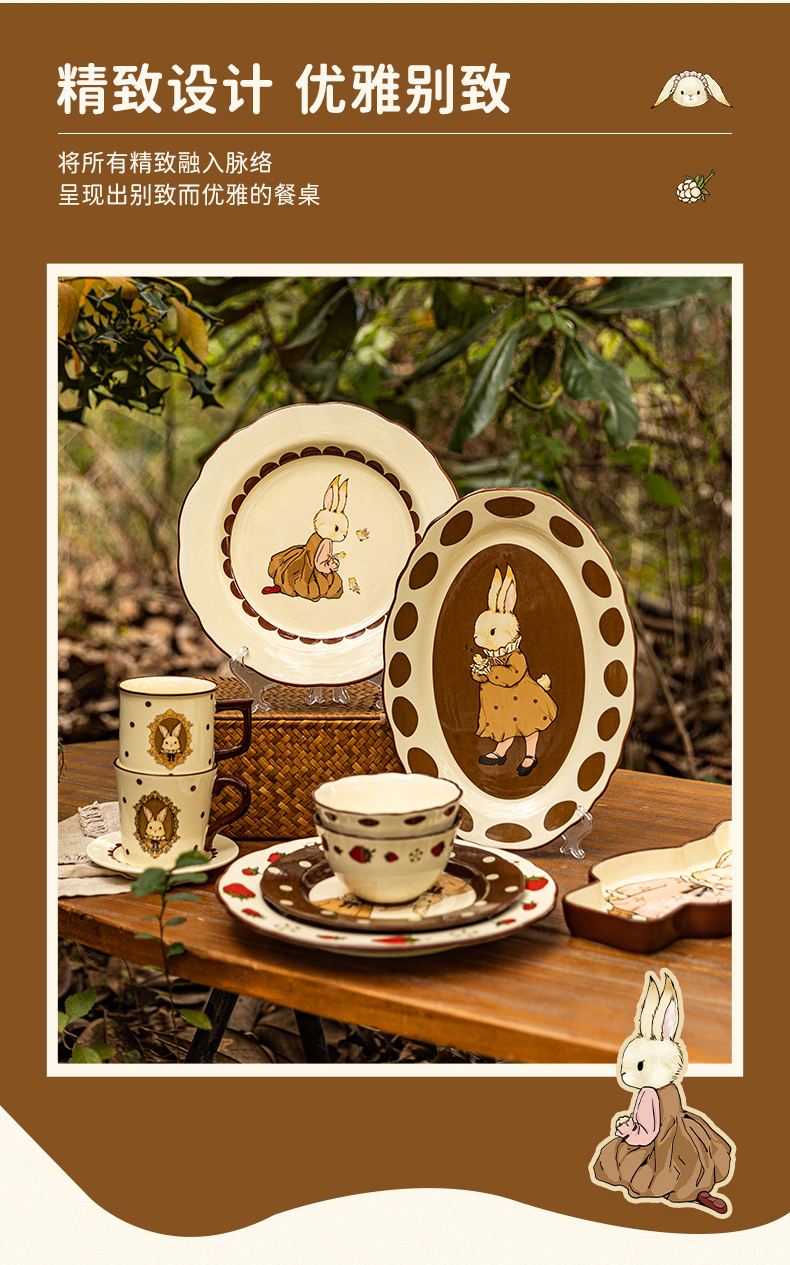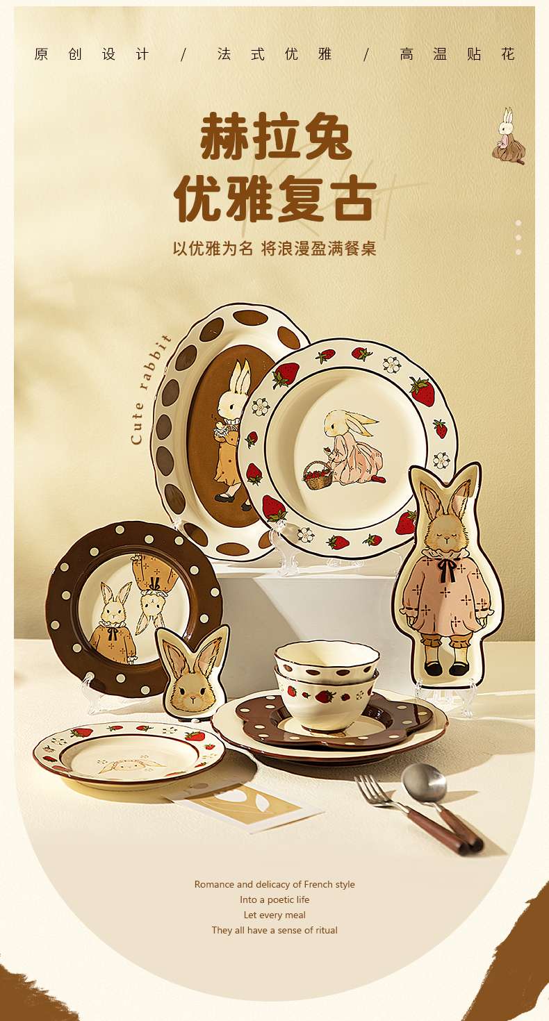 摩登主妇赫拉兔原创复古陶瓷碗家用餐具可爱碗盘套装米饭碗