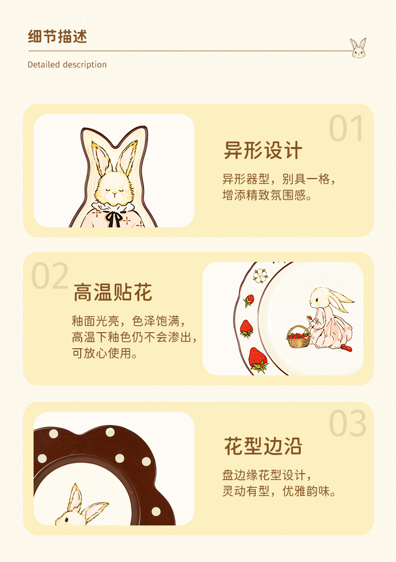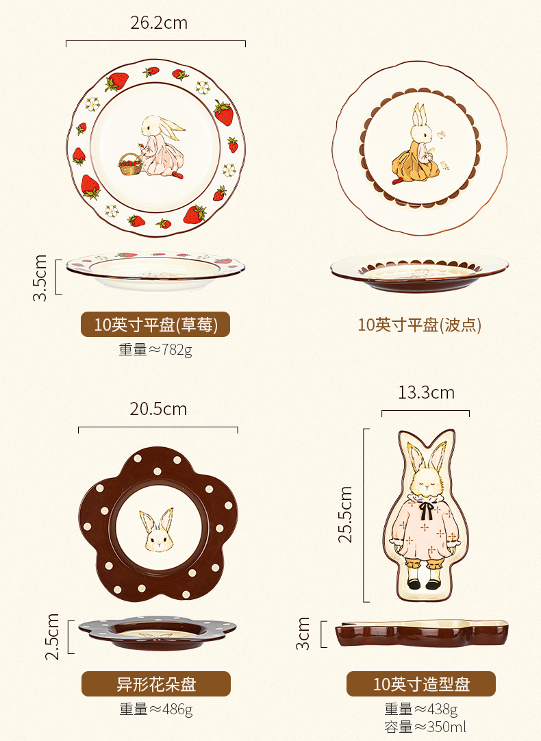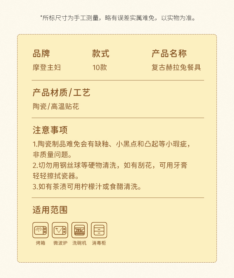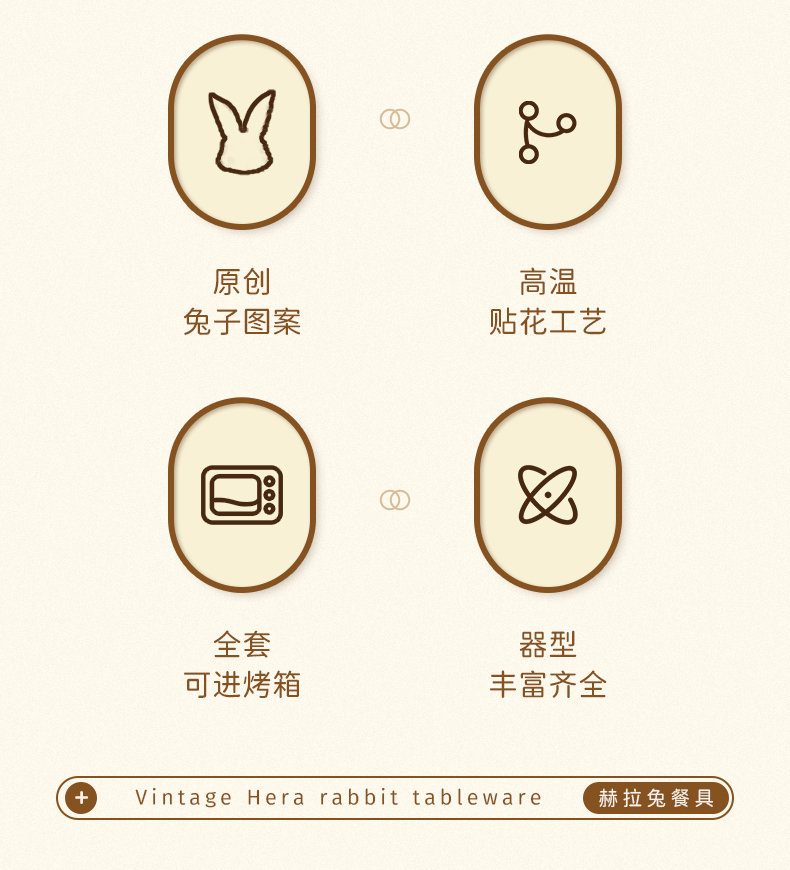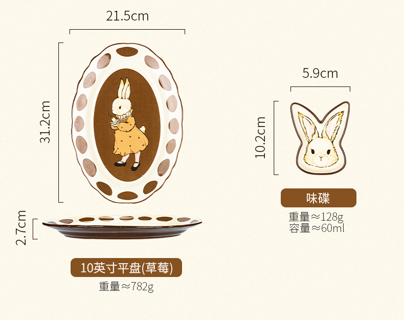 摩登主妇赫拉兔原创复古陶瓷碗家用餐具可爱碗盘套装米饭碗