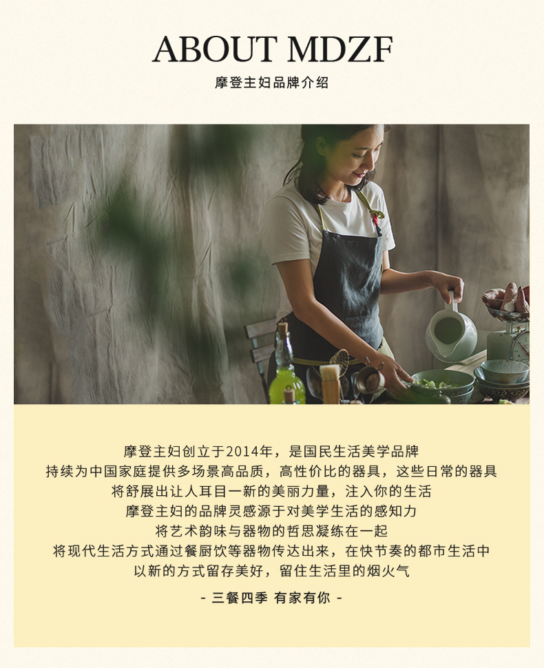 - 摩登主妇的创始人娜娜,是一个普通的80后妈妈,因为一个简单而执着的想法,要让“中国制造”的优质商品走进国内主妇们的生活,摩登主妇的品牌页由此而来。