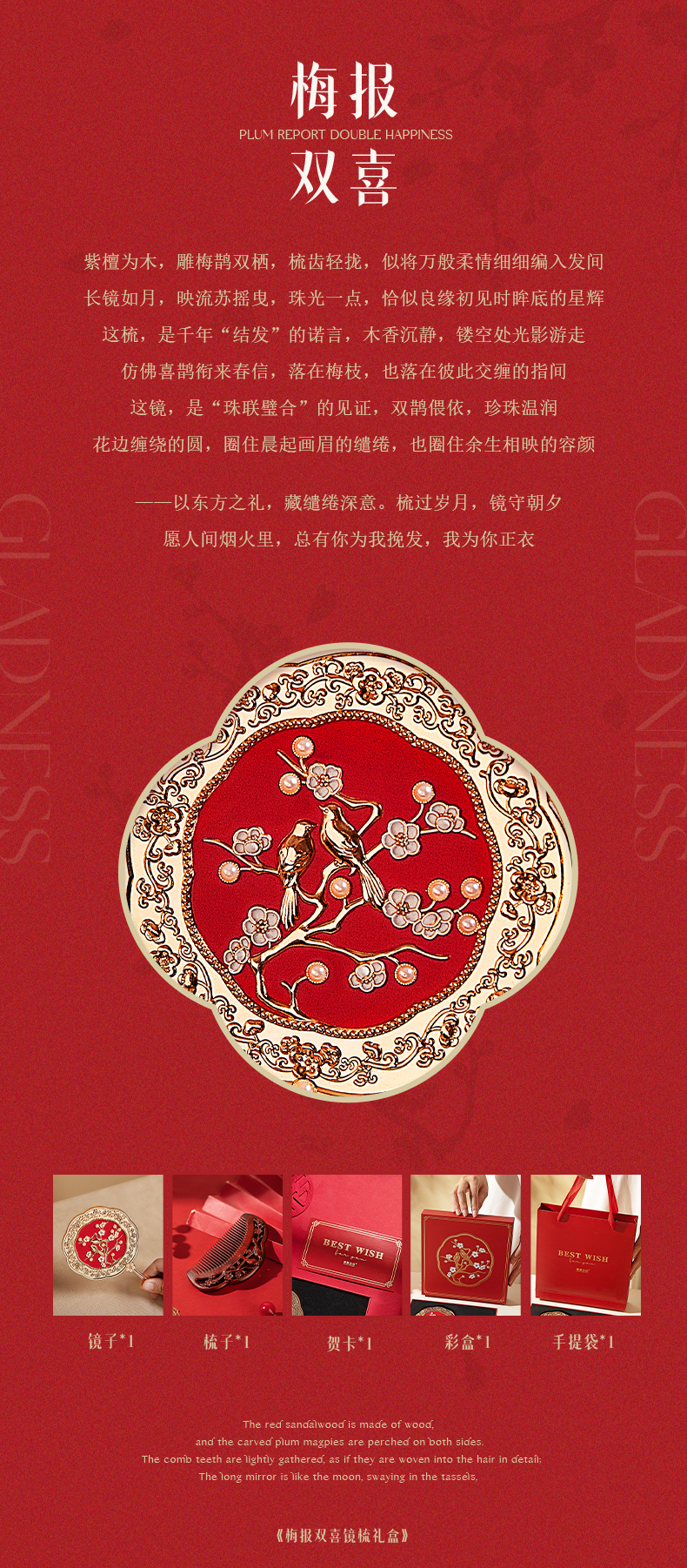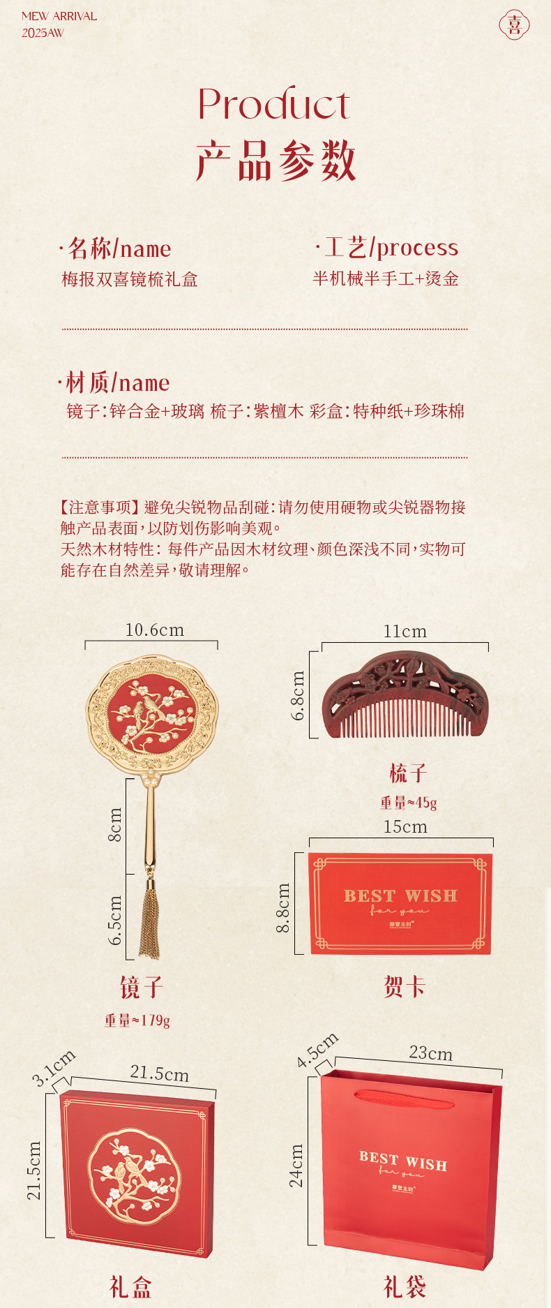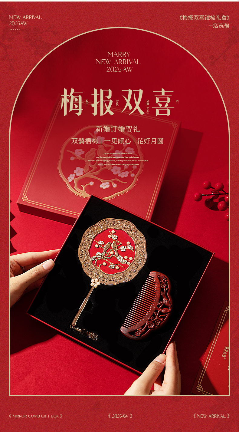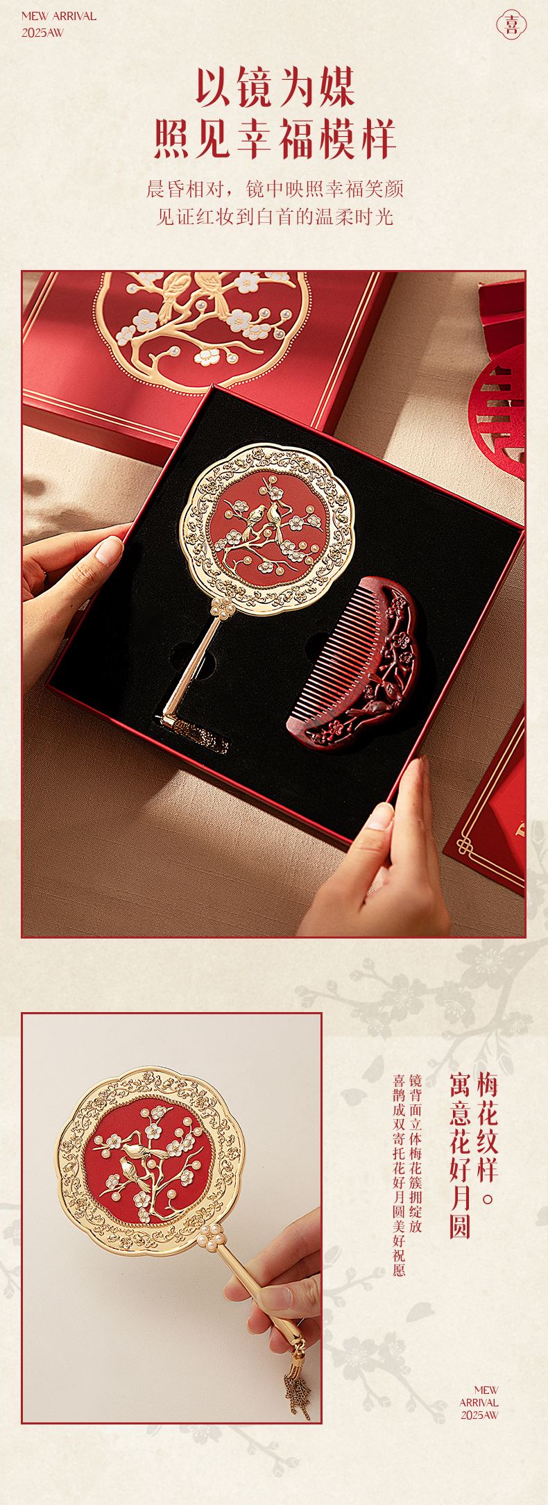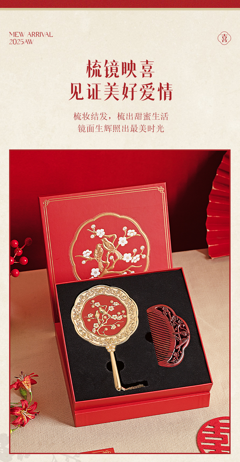 摩登主妇喜上眉梢新婚结婚礼物梳镜实用套装订婚送新娘送闺蜜礼盒