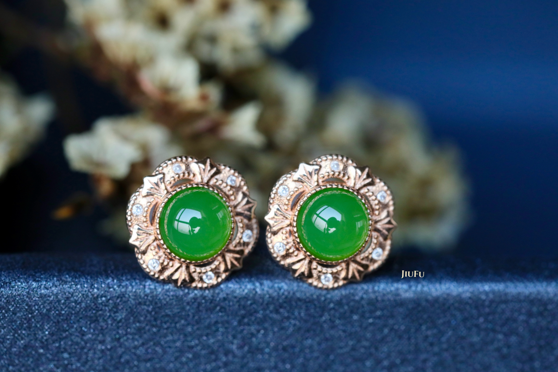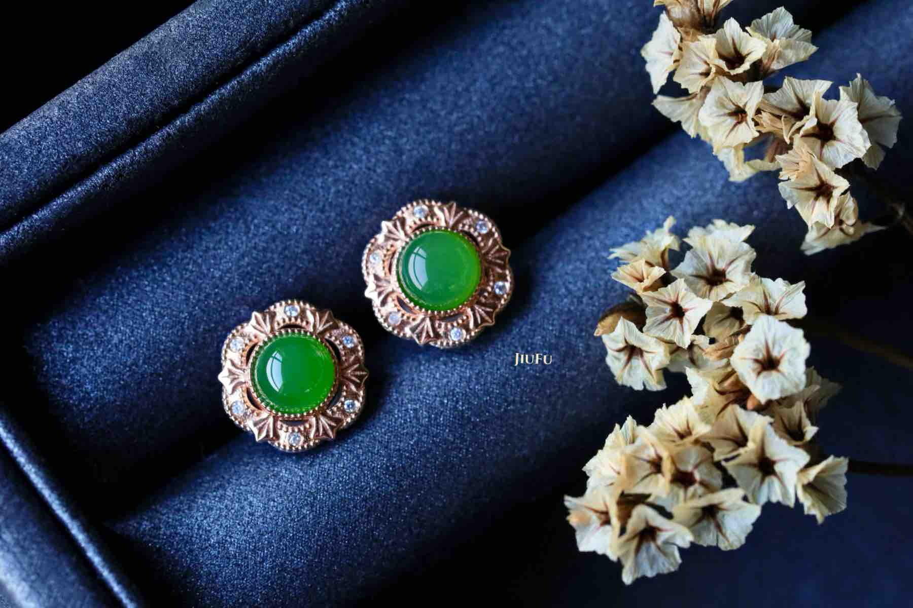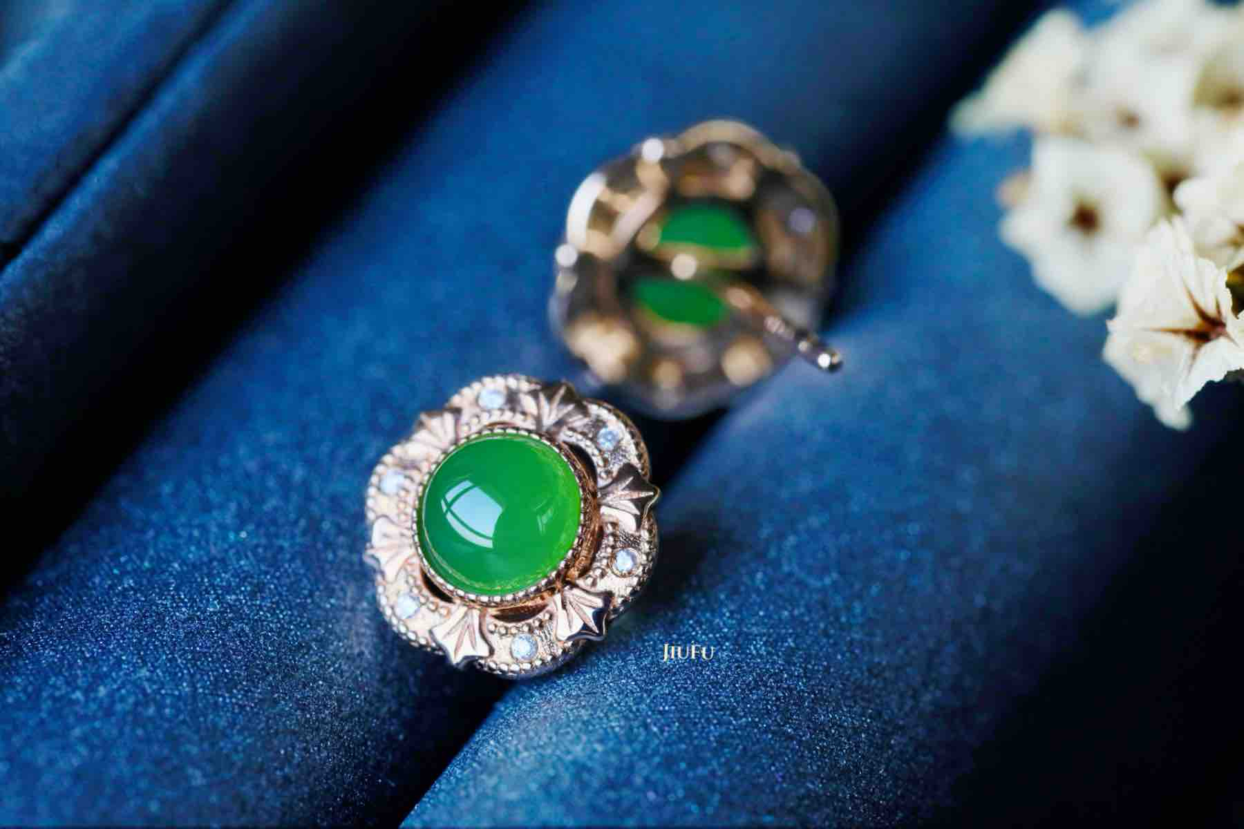 玉石尺寸:半珠直径5mm/苹果绿 配镶:钻石