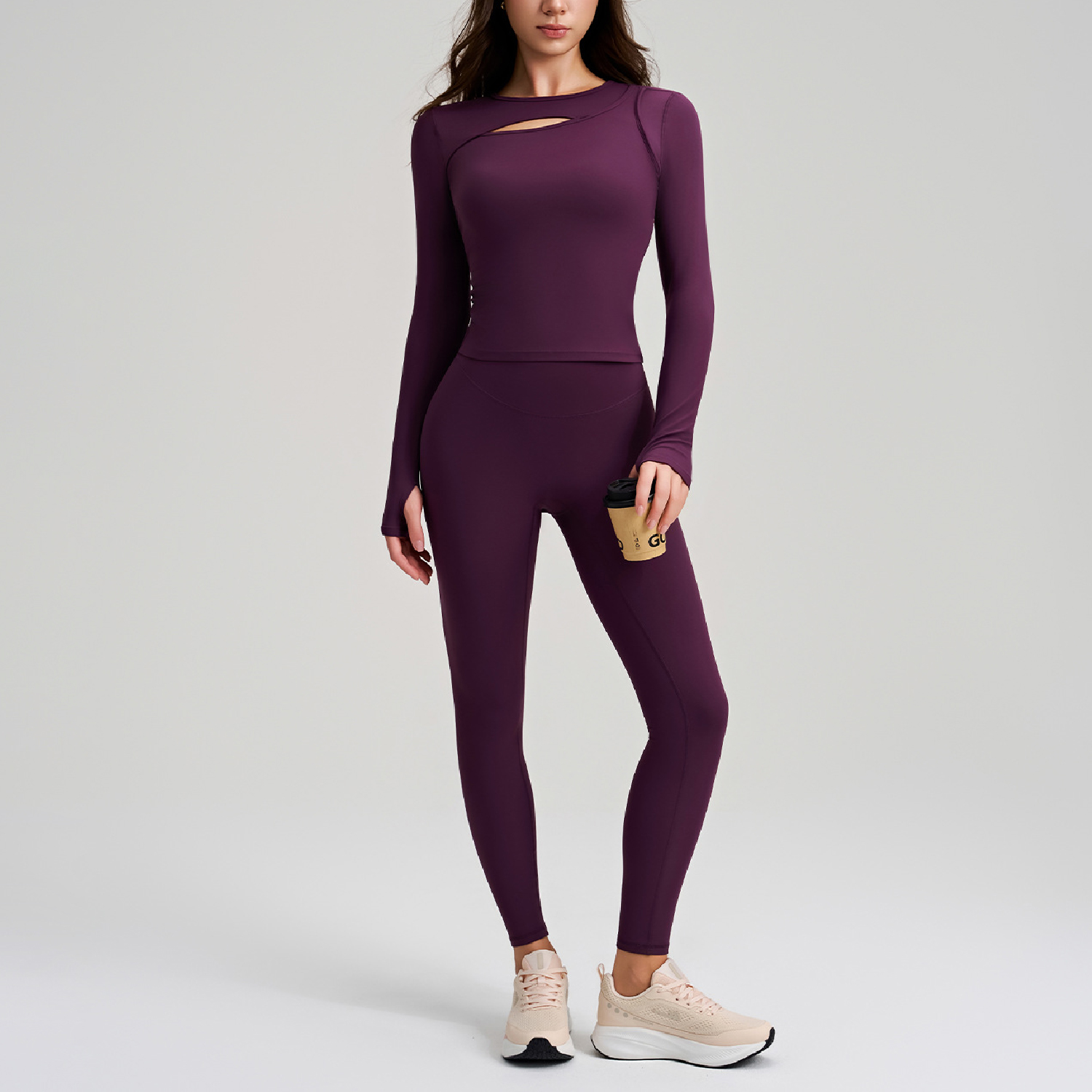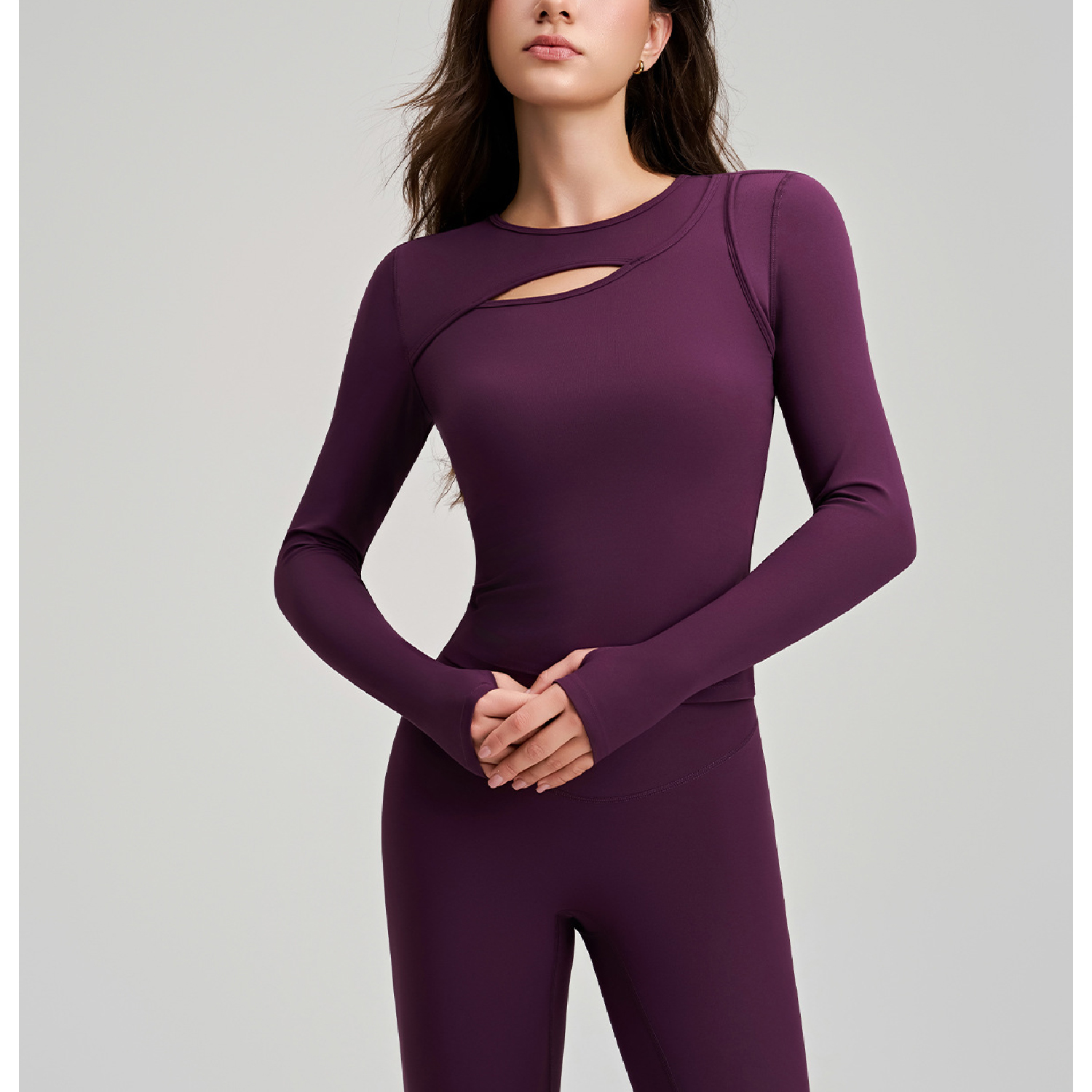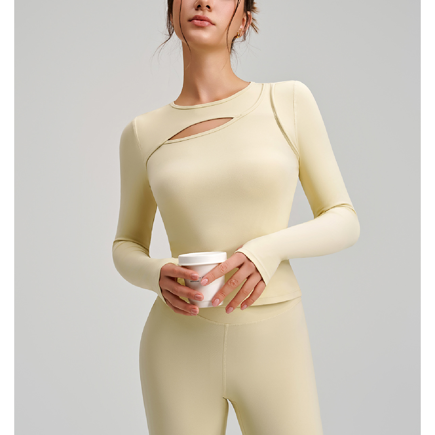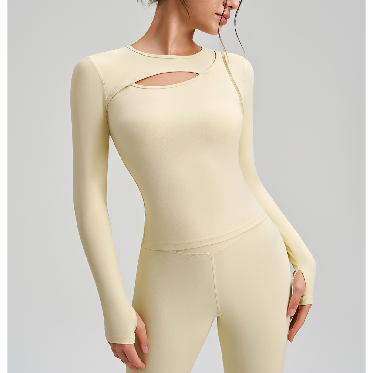 跃牌【安琪拉系列】健身运动新款镂空运动上衣女长袖健身T恤跑步训练瑜伽服YG-557