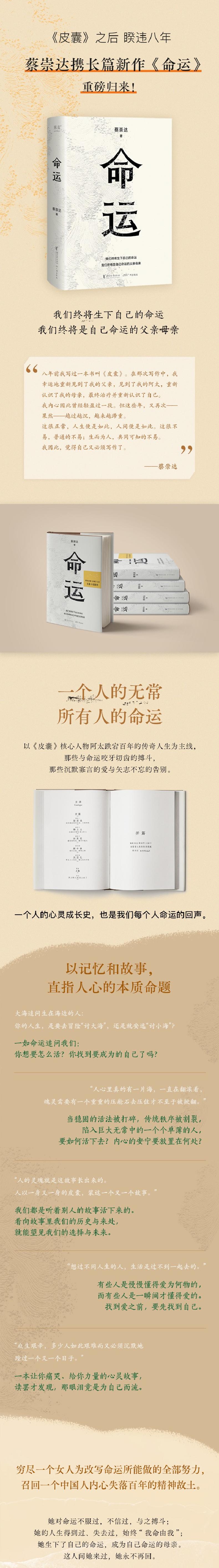 《命运》是蔡崇达继《皮囊》之后,时隔八年潜心创作的长篇小说。