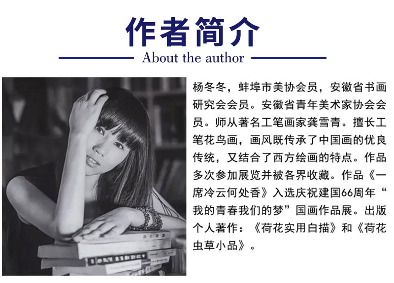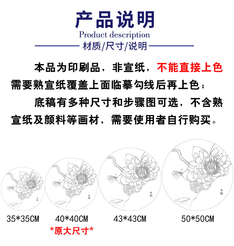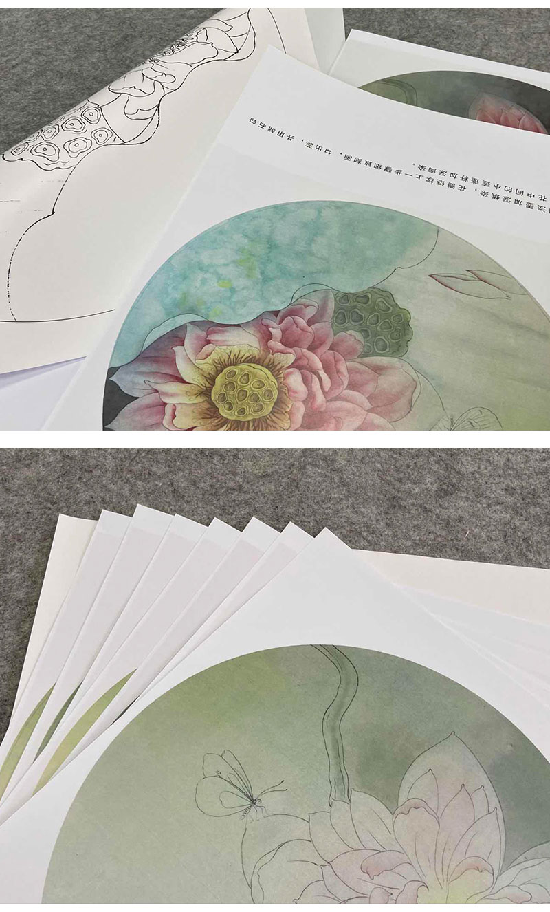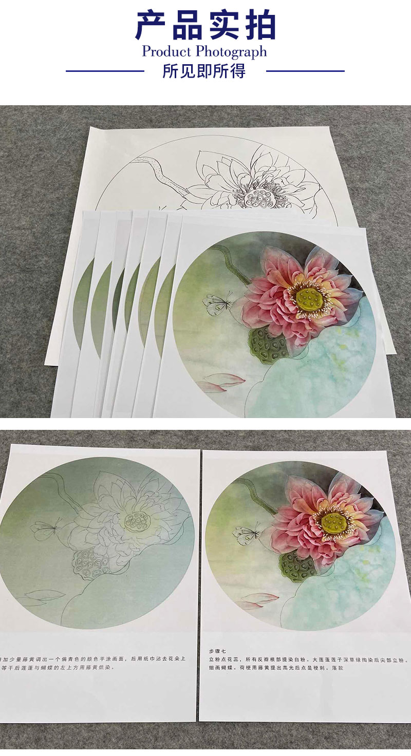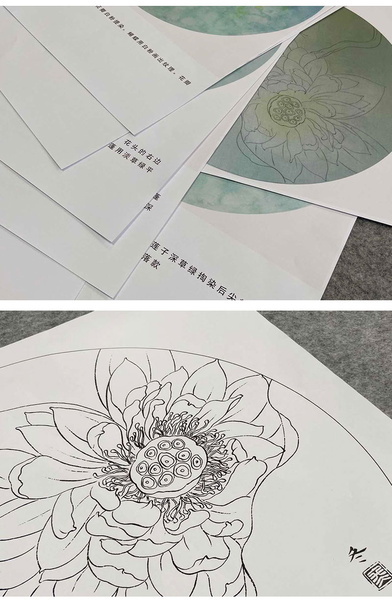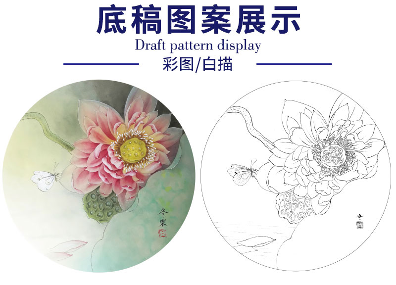 【有步骤、大彩图】杨冬冬工笔画白描底稿圆形小品《蝶慕》荷花蝴蝶初学者临摹花鸟线稿HD29