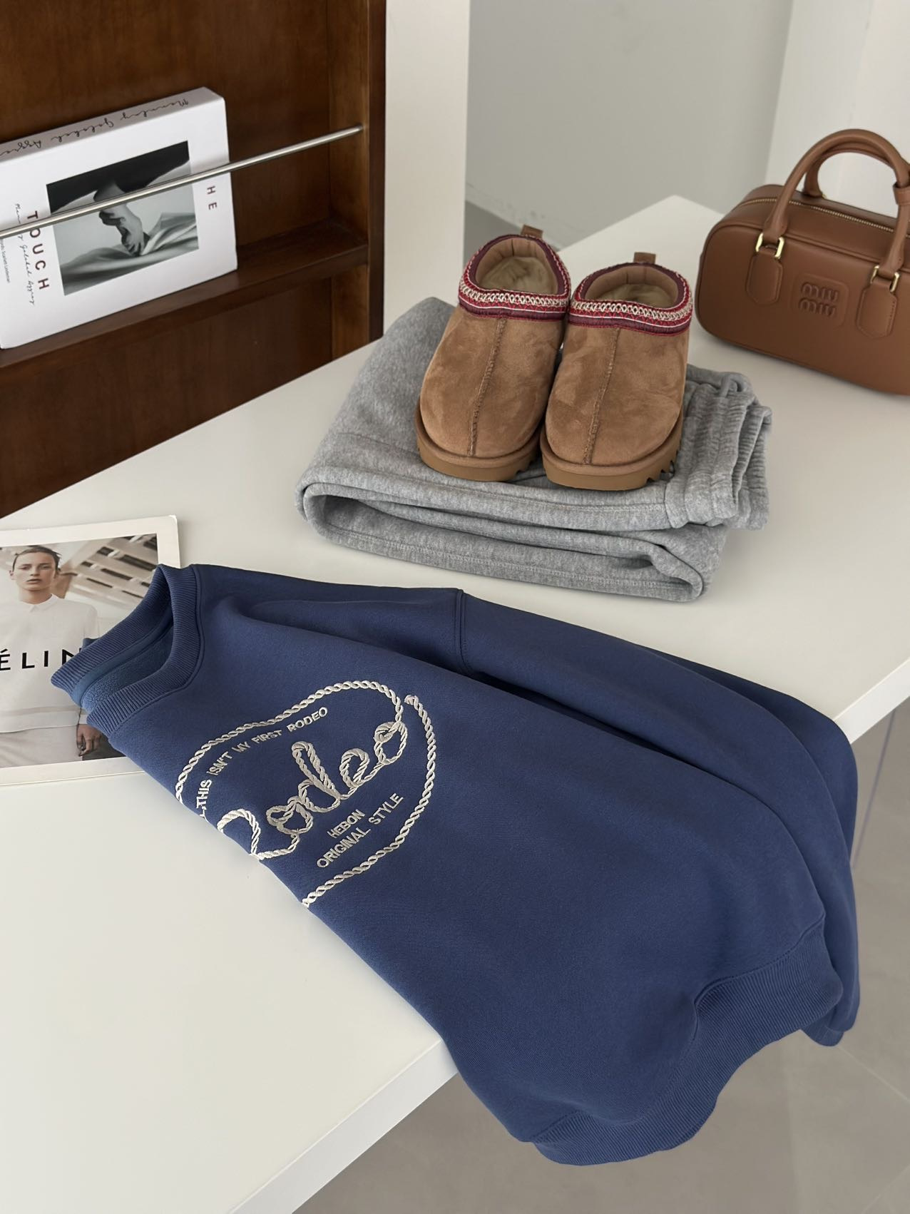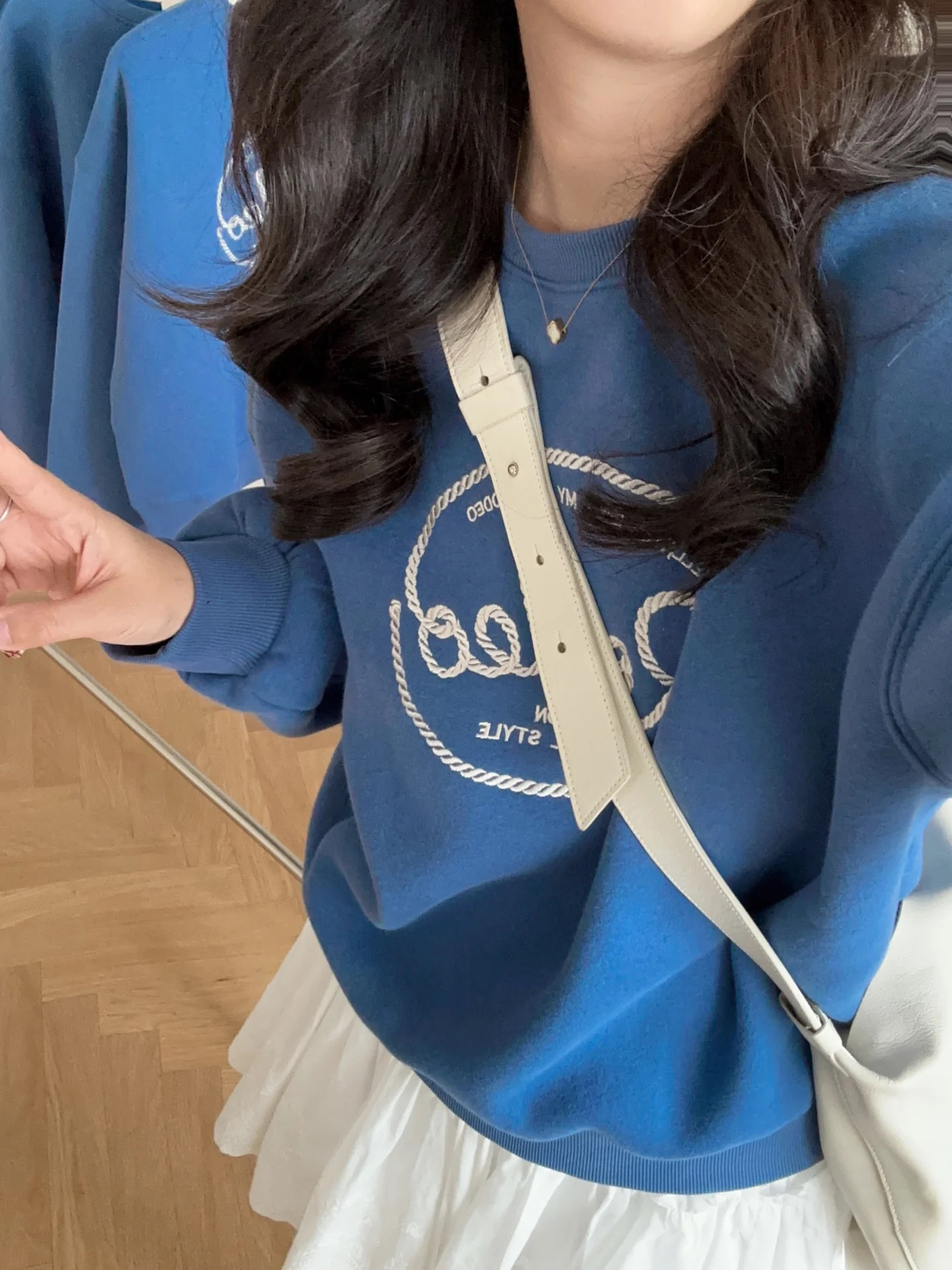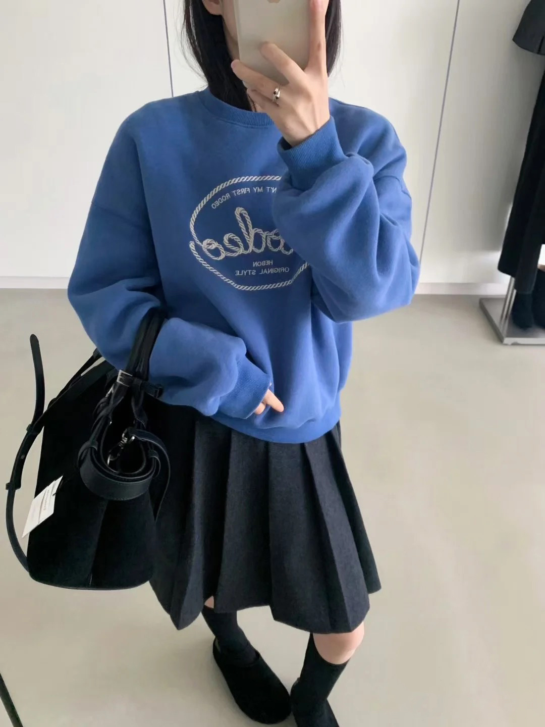 爆款3-5天发货!isabellemarran北欧蓝加绒立体字母植绒刺绣卫衣JS3693194