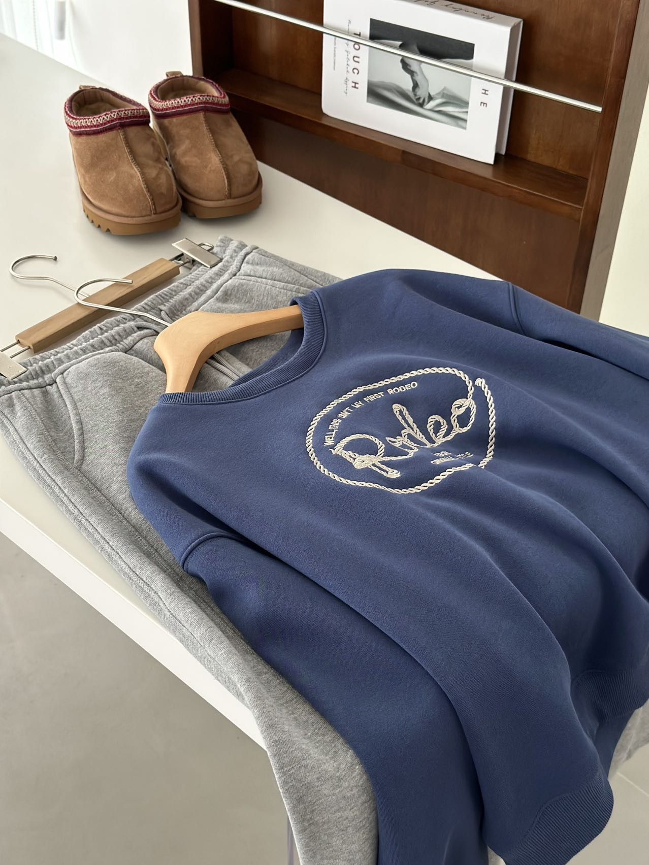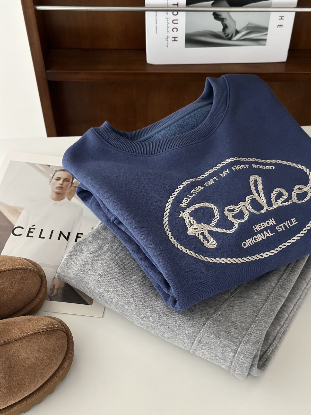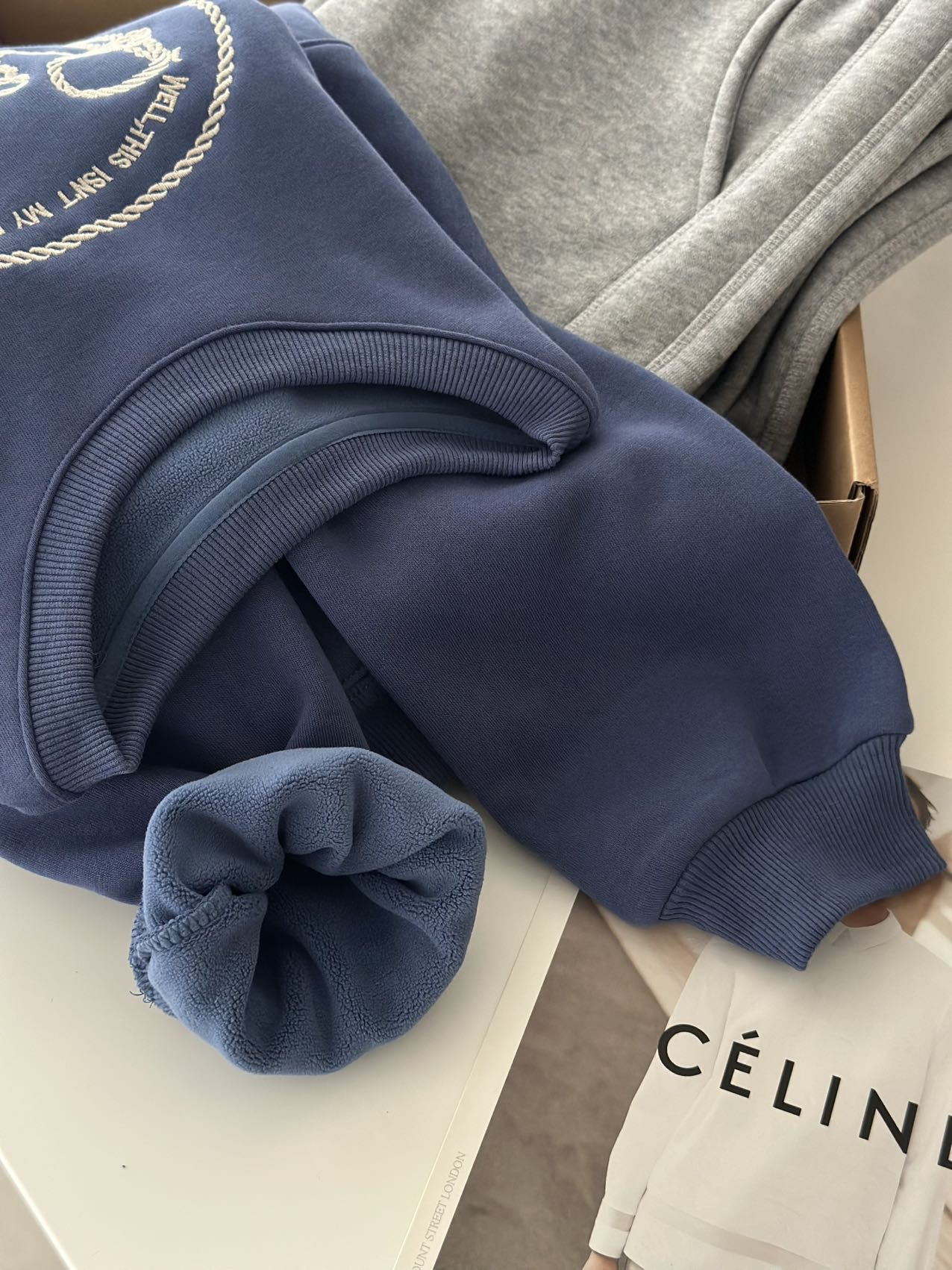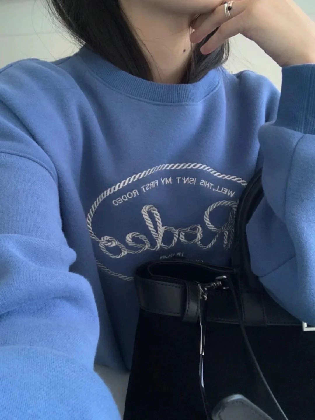 爆款3-5天发货!isabellemarran北欧蓝加绒立体字母植绒刺绣卫衣JS3693194