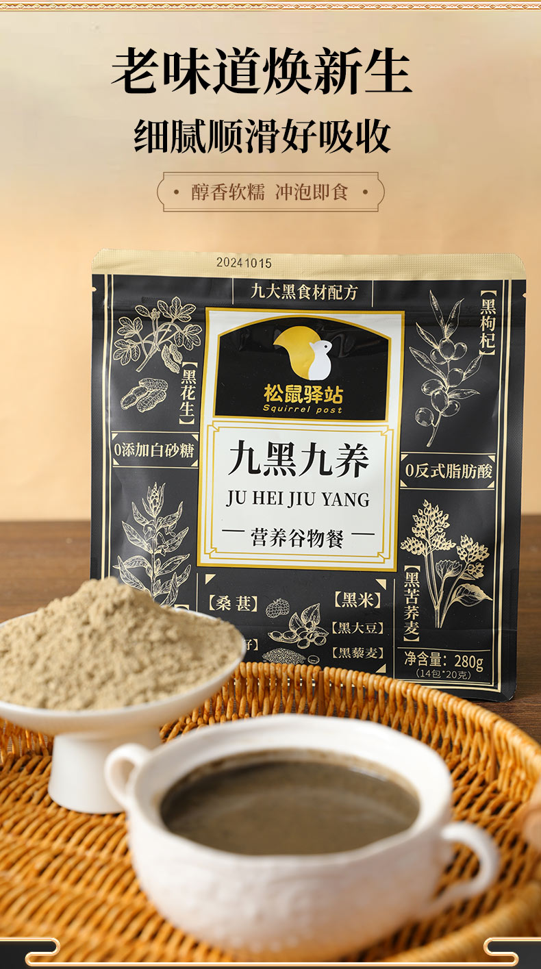 【超值4袋装】松鼠驿站营养谷物餐 即冲即饮九黑九养/九红九养独立包装 280g*4袋