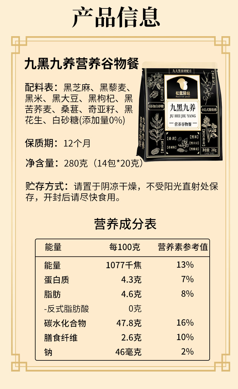 【品名】【超值4袋装】松鼠驿站营养谷物餐 即冲即饮九黑九养/九红九养独立包装 280g*4袋 【规格】280g*4袋 【产地】国内 【保质期】12个月 【发货包装】独立包装 【发货地】山东 【发货快递】中通、圆通、申通、韵达、极兔随机发 【不发货区域】新疆、西藏、内蒙古、港澳台 【补邮费地区】甘肃、宁夏、青海、海南+3元/单 北京、上海+2元/单 【发货时效】48-72小时,周末节假日顺延 |
