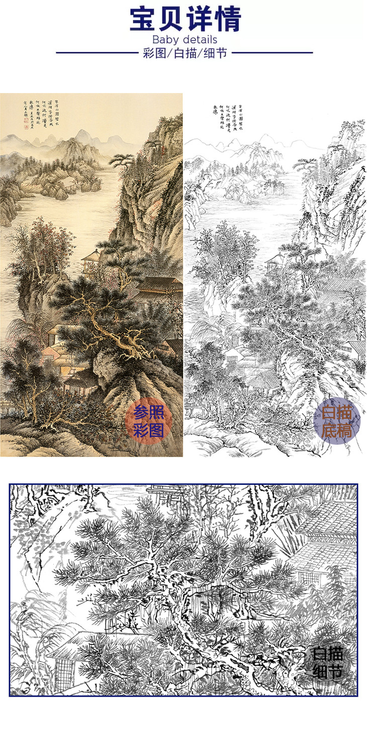 刘彦水白描底稿-竖幅工笔山水-《溪居图》-多种白描尺寸可选-LQ69