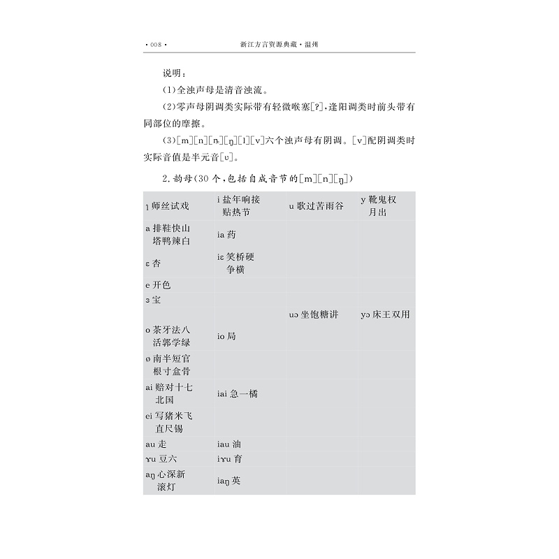 本书属于“浙江省语言资源保护工程成果(第二辑)”。本书简要描写温州方言的声韵调、连读变调、文白异读、小称音变等,以国际音标标注1000个汉字的老派与新派读音,收集1200条方言词及50个语法例句;语料方面既有规定内容的长篇故事《牛郎和织女》,又有广泛流传于当地的童谣、谚语、俗语、歇后语、谜语、传说等口头方言文化作品,还有即席讲述的反映当地文化风俗的自然话语,具有十分珍贵的方言语料价值,所有方言文化的内容均有对应的方言转写及普通话译文,同时还以二维码方式附有音频及视频。