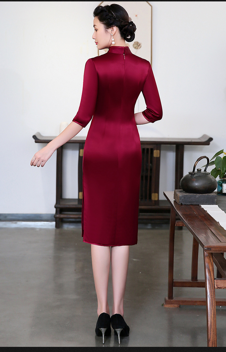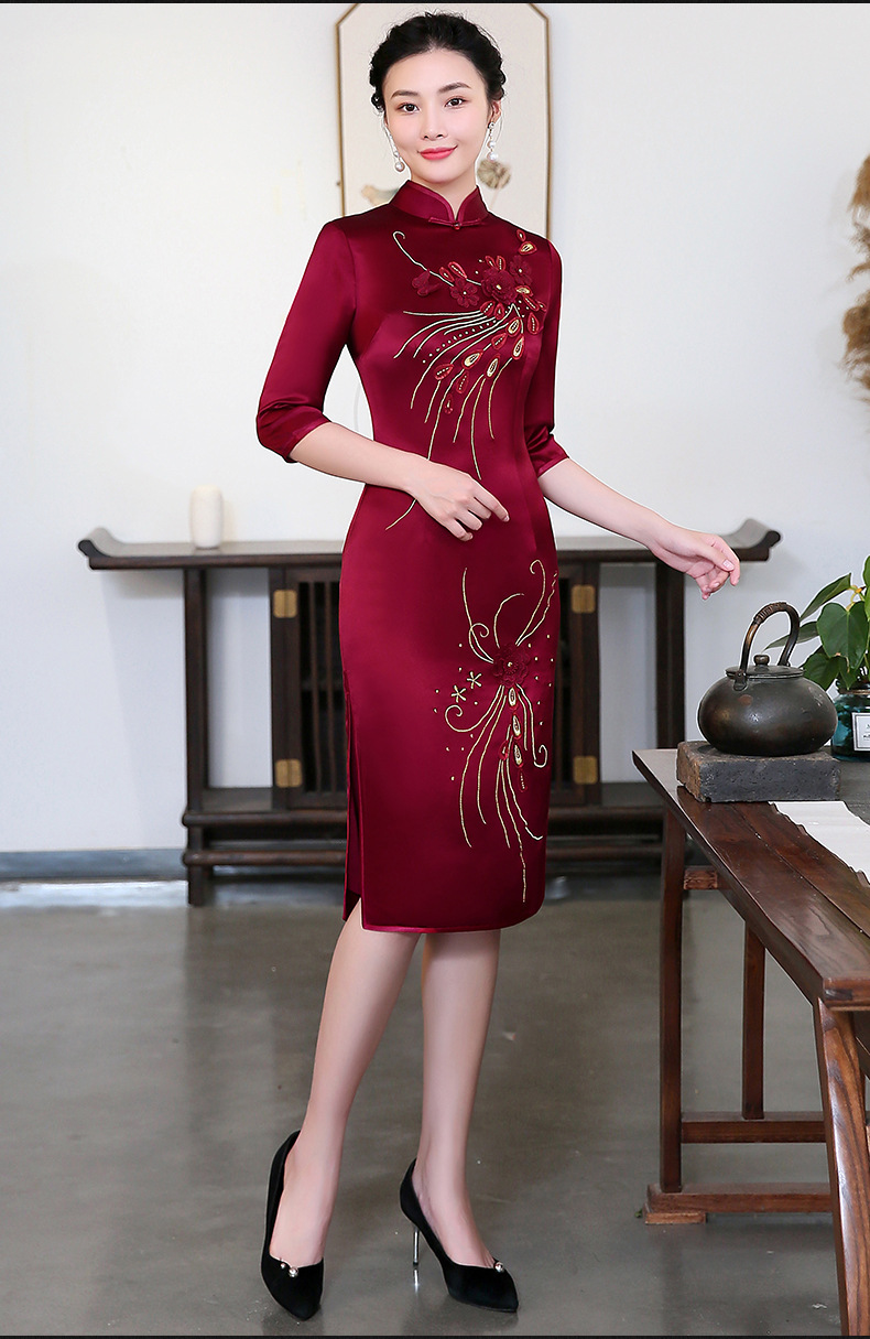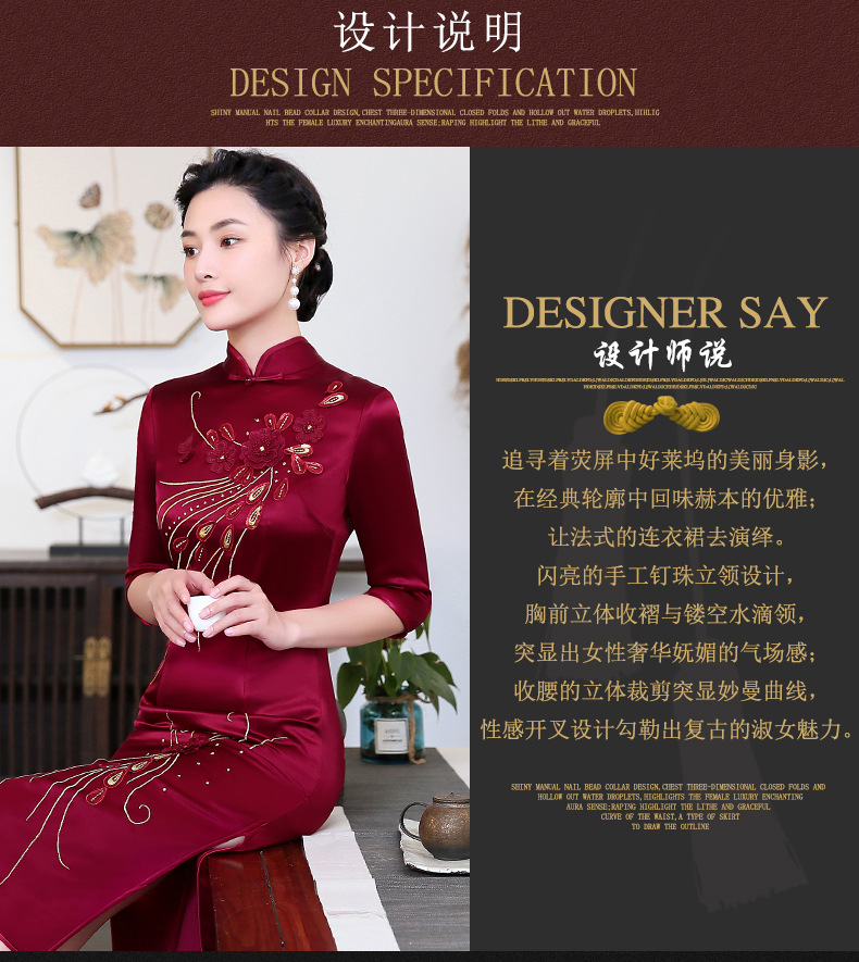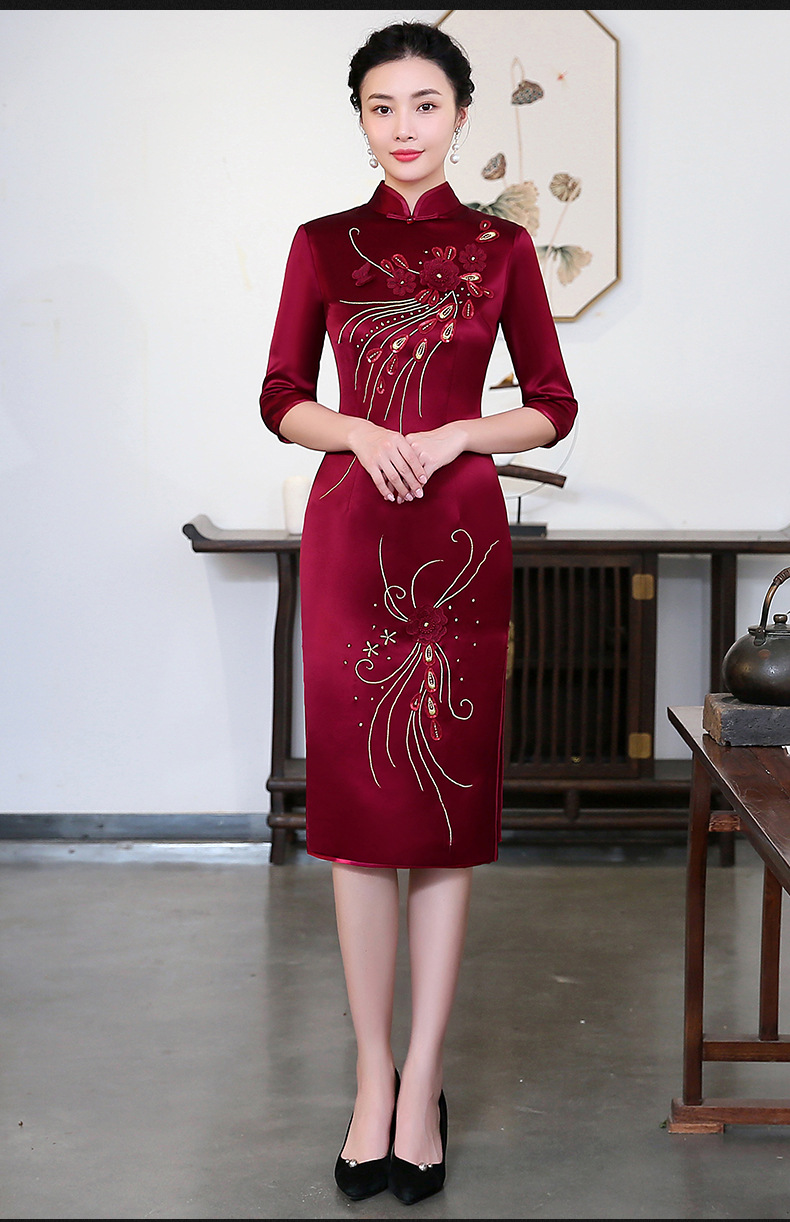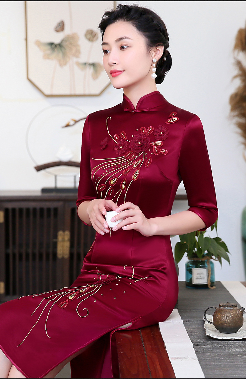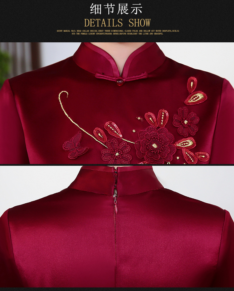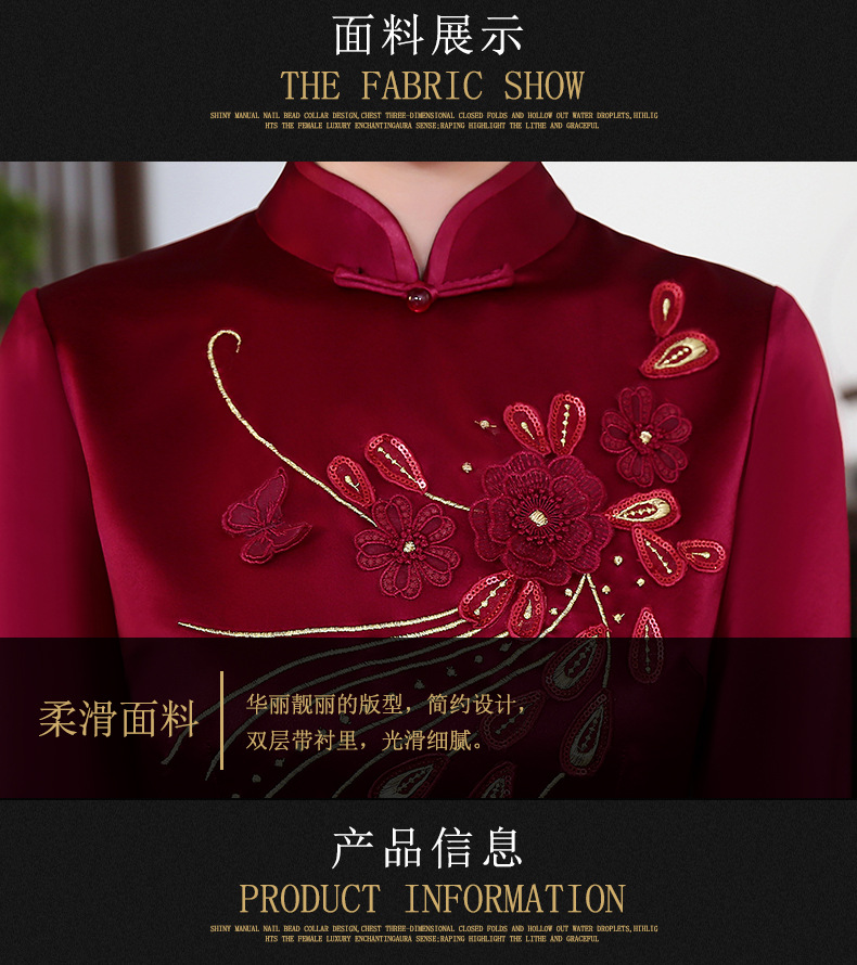 上海旗袍厂LHS-1083红新款立体绣花妈妈装婚宴旗袍喜婆婆婚礼婚庆旗袍裙礼服中长袖秋季