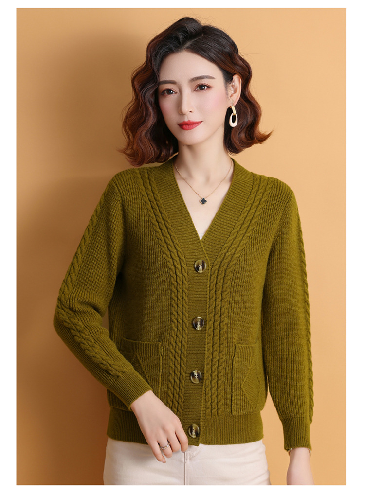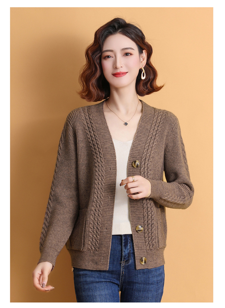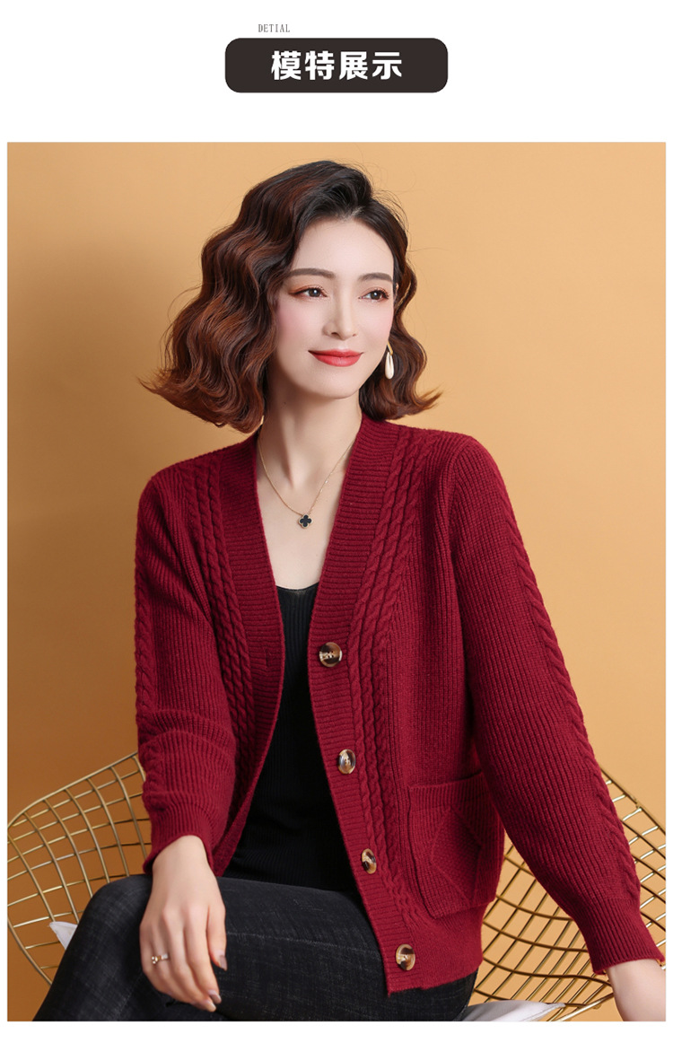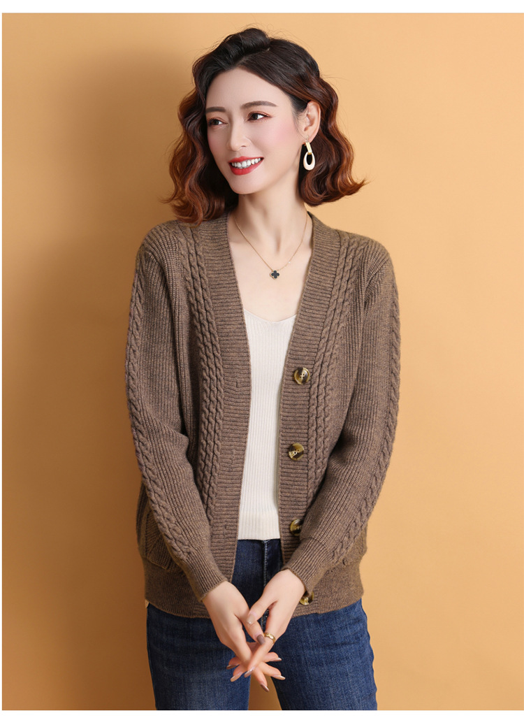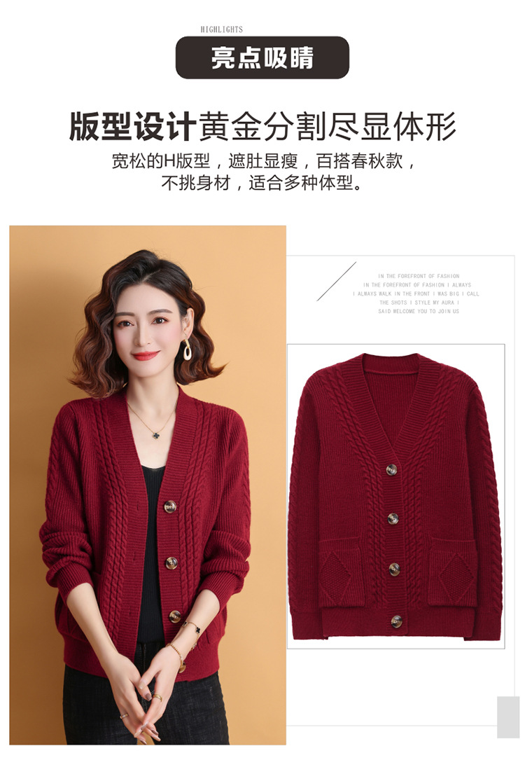 FCY YS86119针织开衫宽松慵懒麻花外套纽扣针织衫
