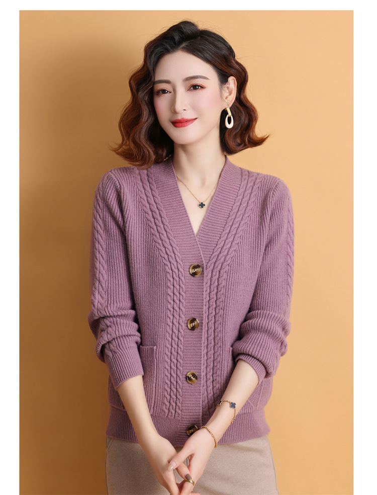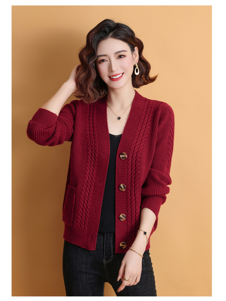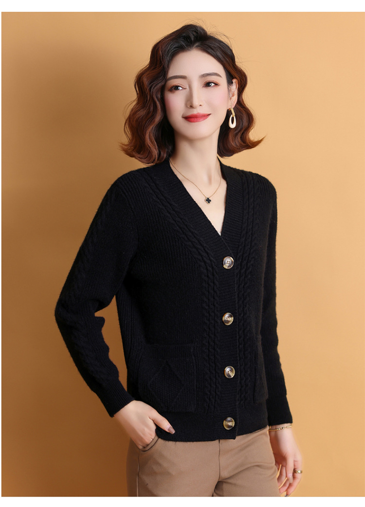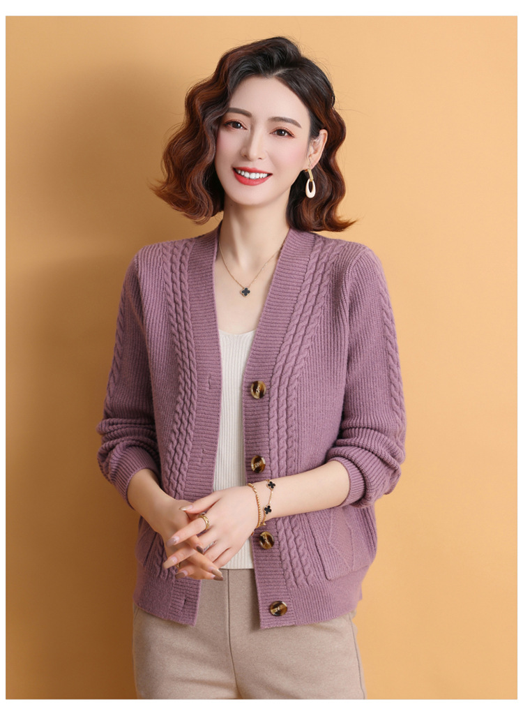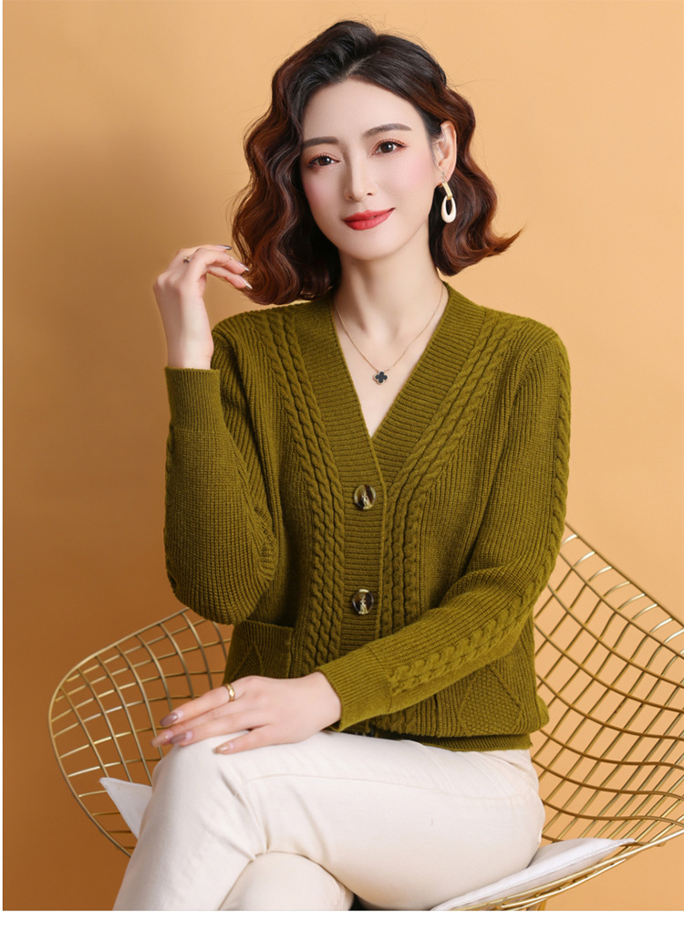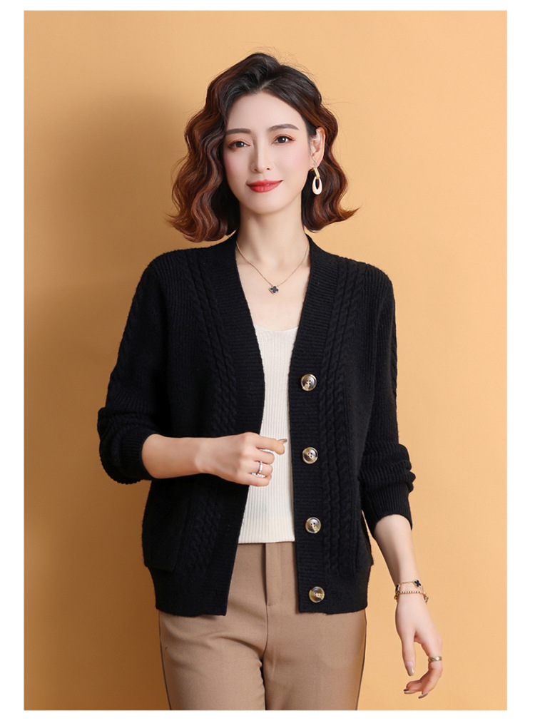FCY YS86119针织开衫宽松慵懒麻花外套纽扣针织衫