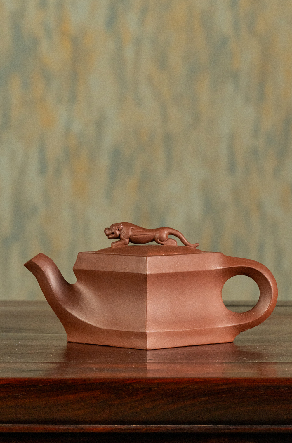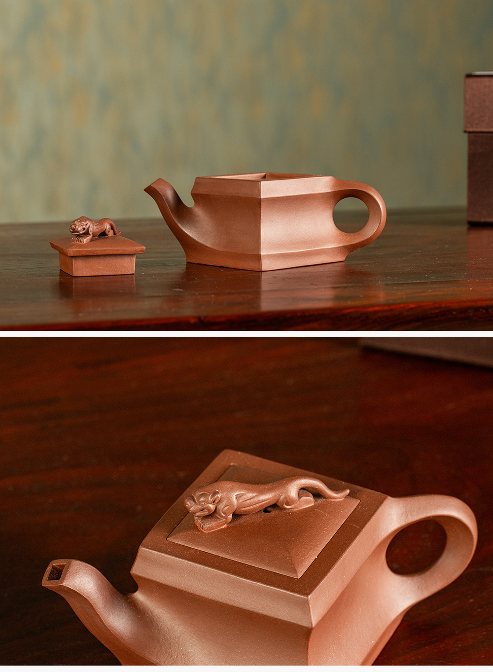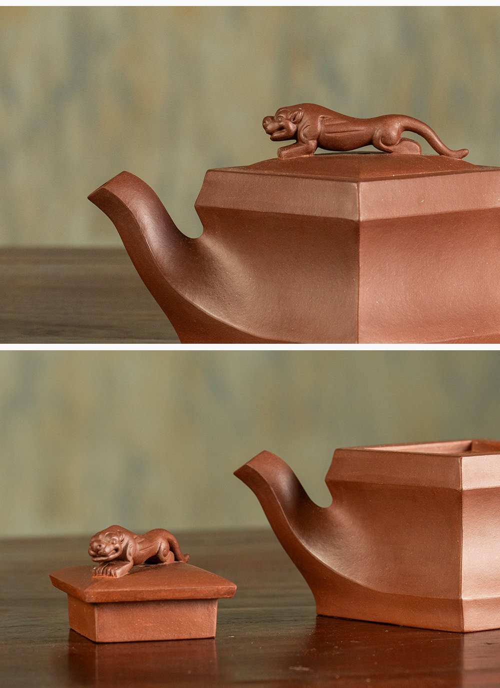 《狮王壶》 许红娟 高级工艺美术师,高级乡村振兴技艺师,高级/一级技师,江苏省陶瓷艺术委员会会员,宜兴市紫砂协会会员,宜兴市紫砂陶全手工技艺传承人