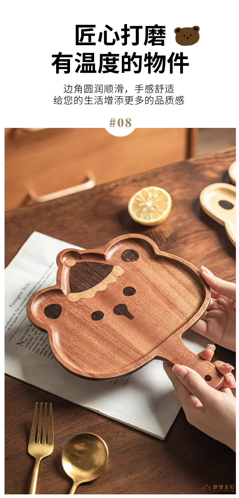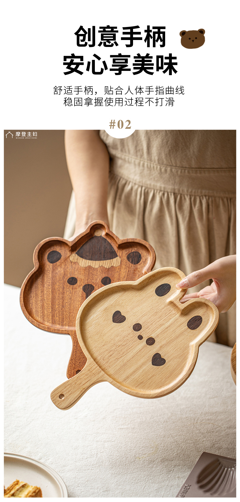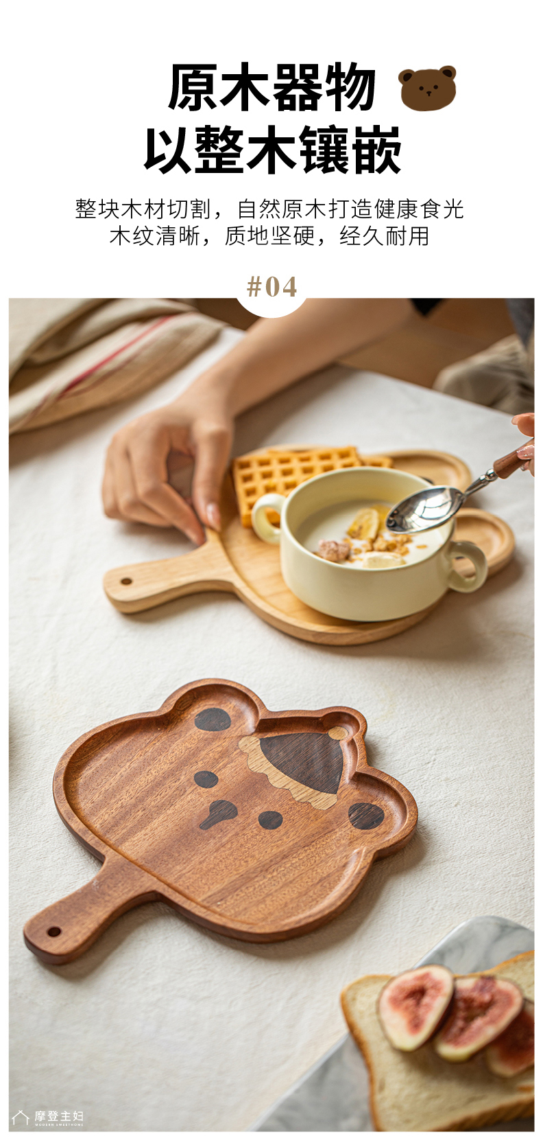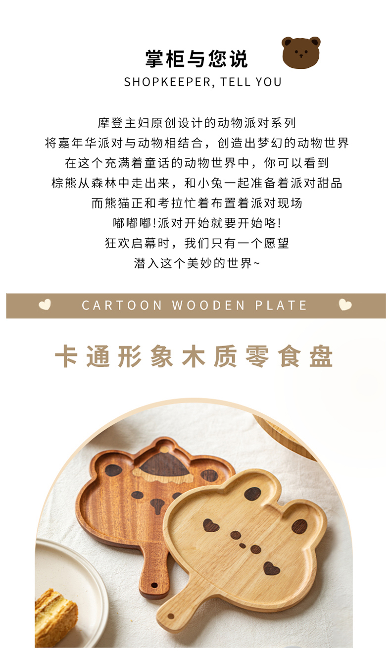 摩登主妇动物派对卡通木质托盘小吃零食盘家用下午茶甜品点心餐盘