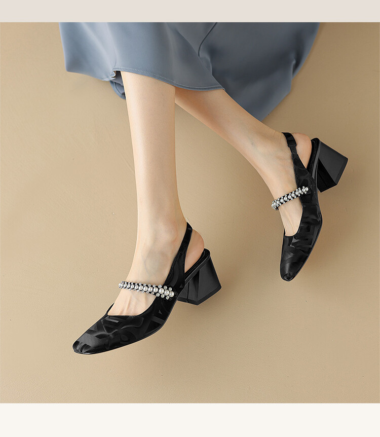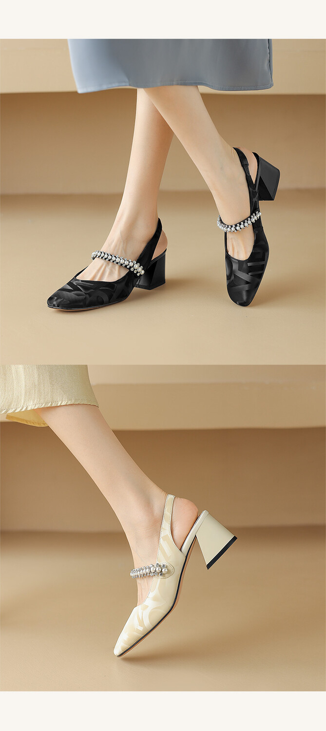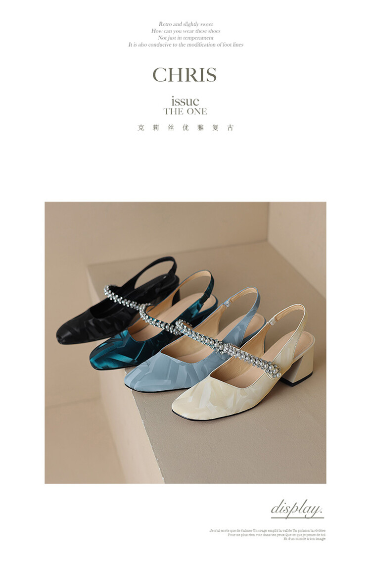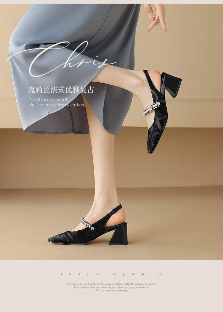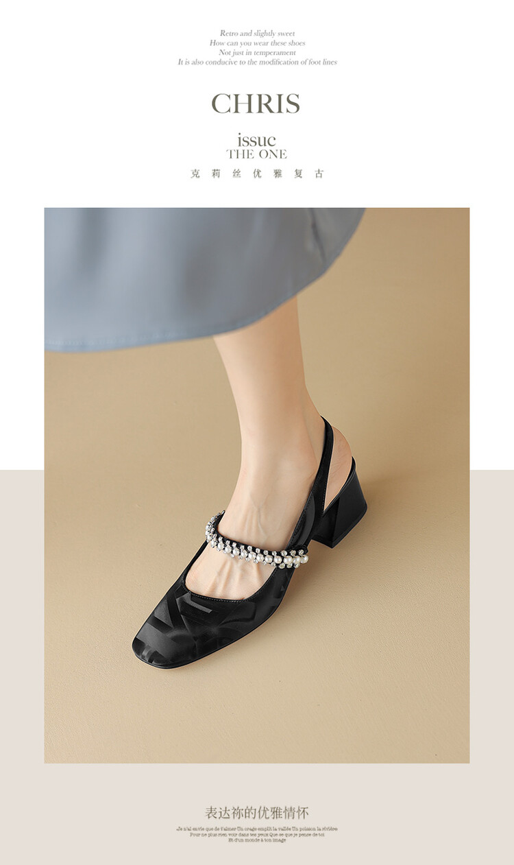【预售5天】巨好穿水钻珍珠一字带通勤温柔粗跟后空包头凉鞋NDXC&6539