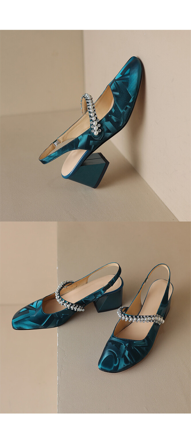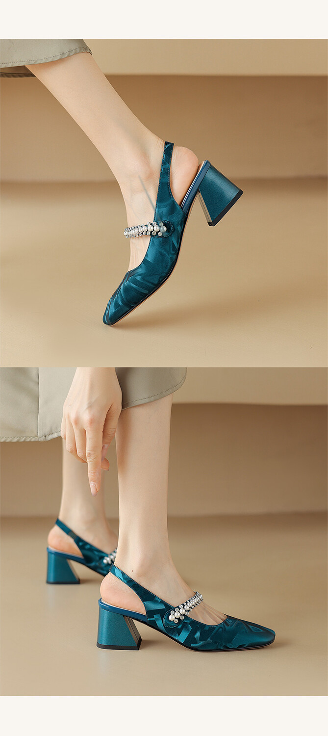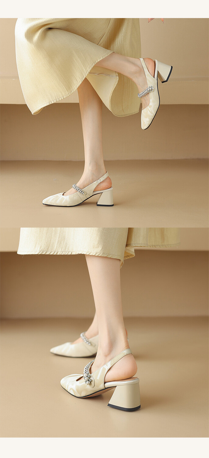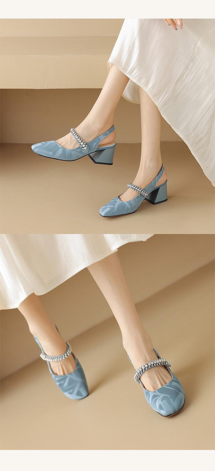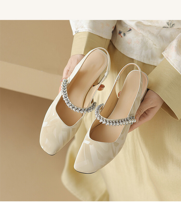 【预售5天】巨好穿水钻珍珠一字带通勤温柔粗跟后空包头凉鞋NDXC&6539