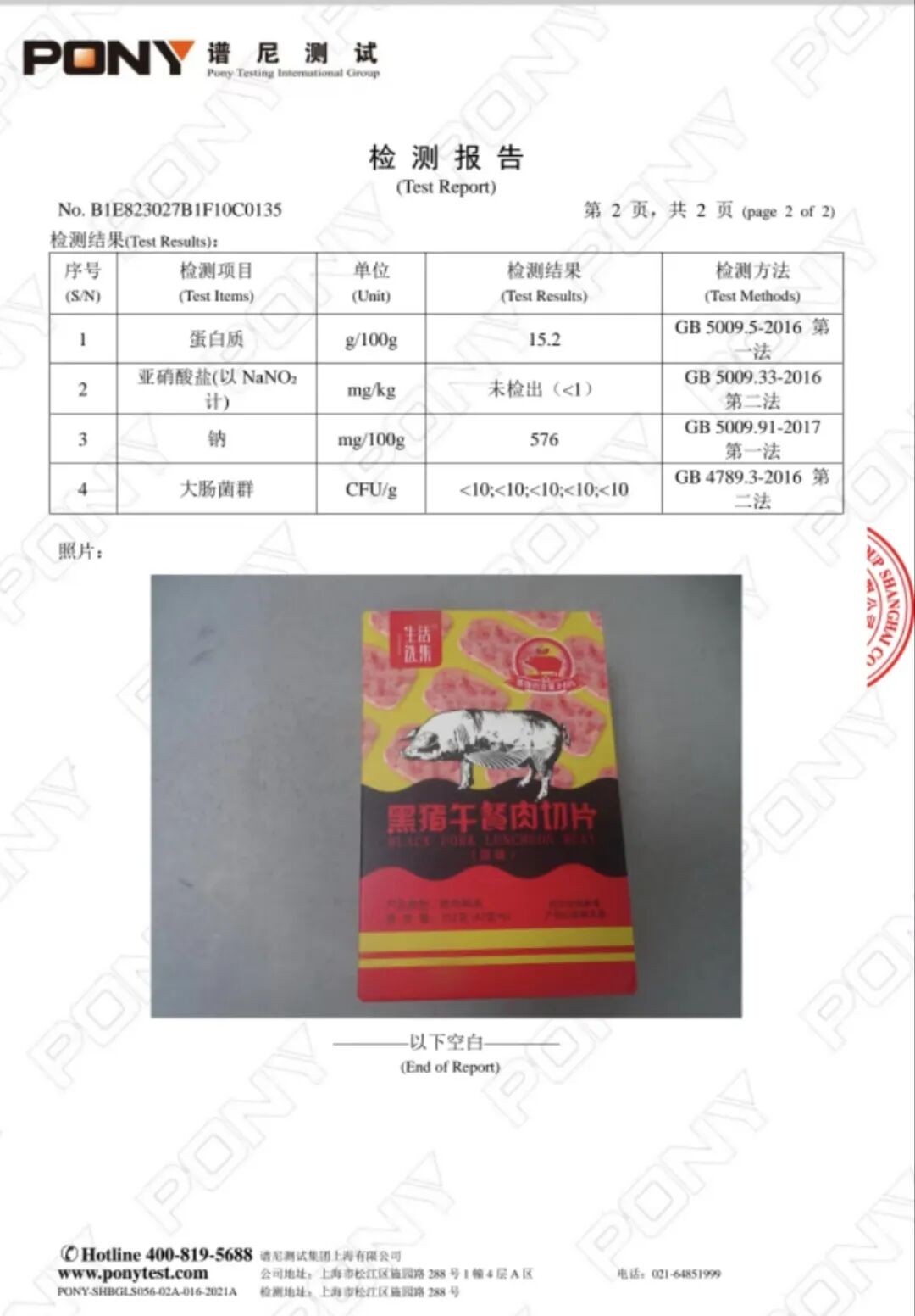 1. 送检蛋白质和钠含量与标称值相符,高蛋白,未添加防腐剂亚硝酸盐,卫生条件优秀