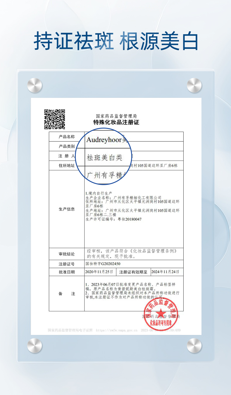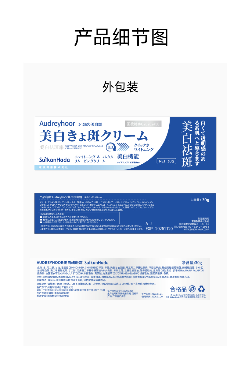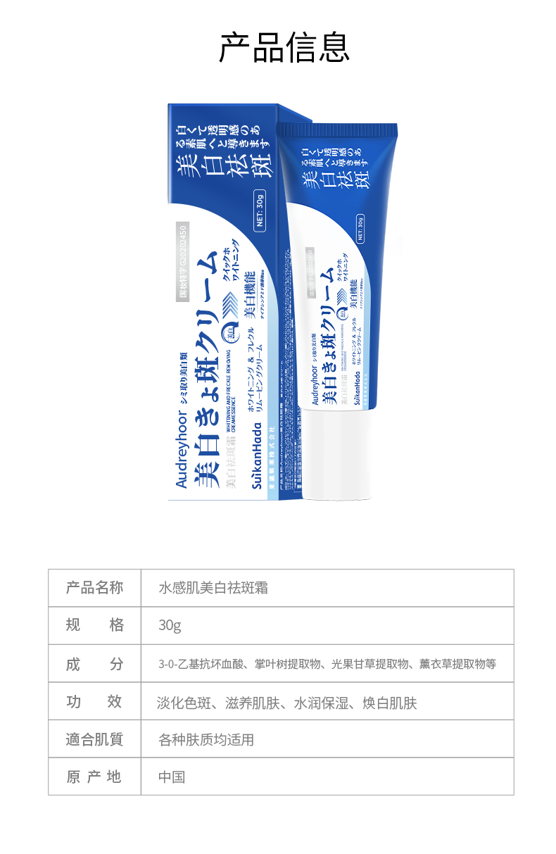 【正品直销】【特证美白】水感肌Audreyhoor美白祛斑霜30g 水润保湿滋养肌肤淡化色班