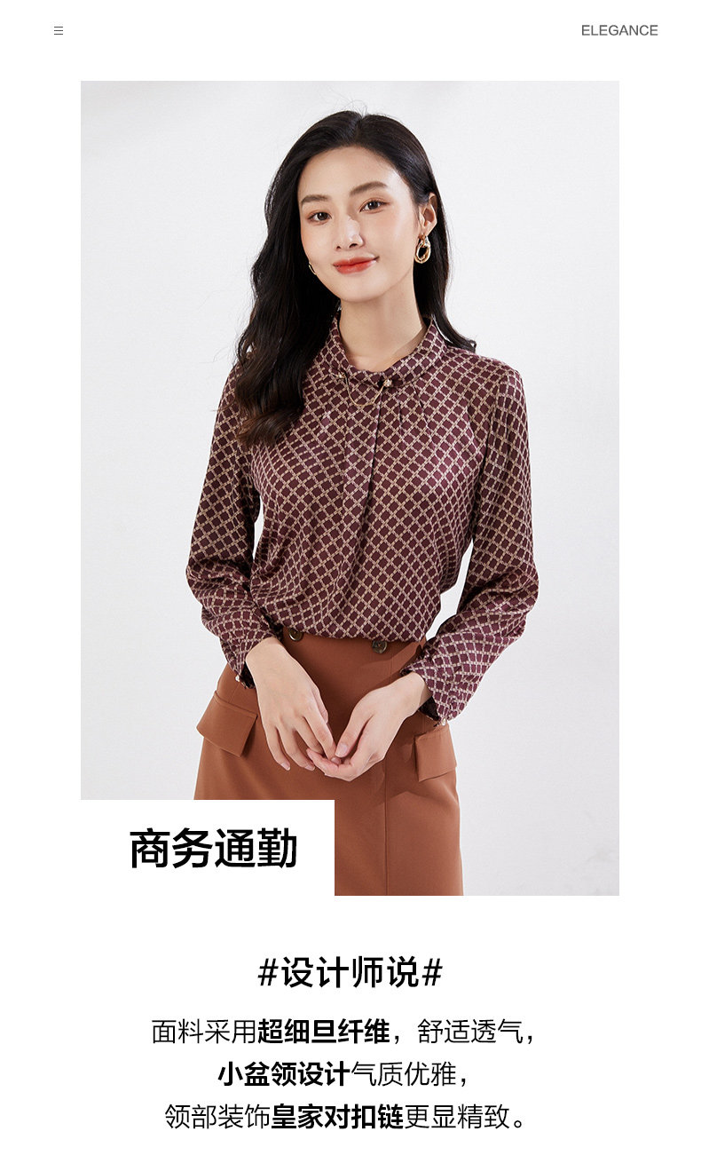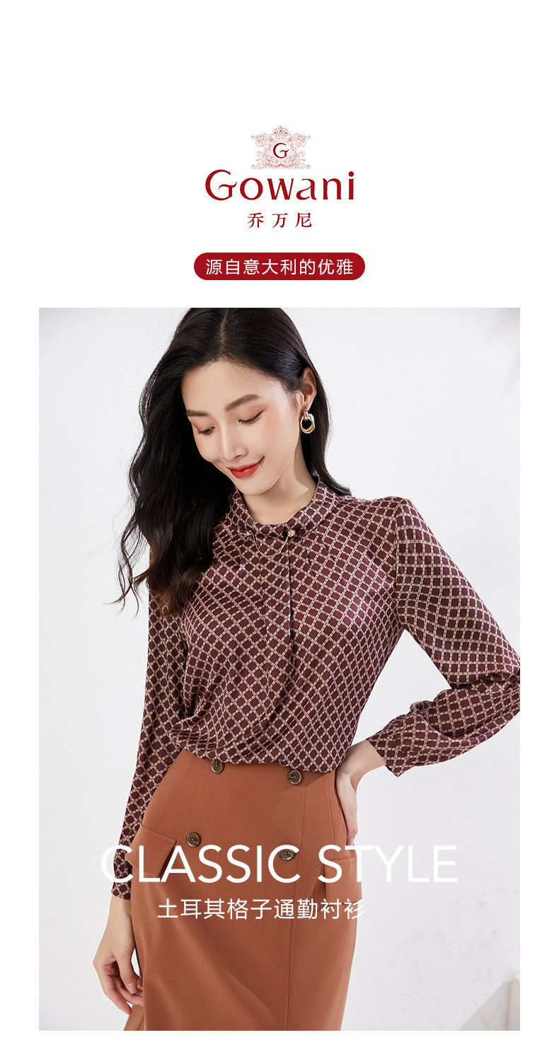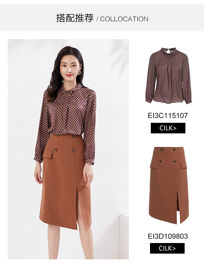 乔万尼长袖衬衫气质立领上衣抽褶设计衬衣EI3C115
