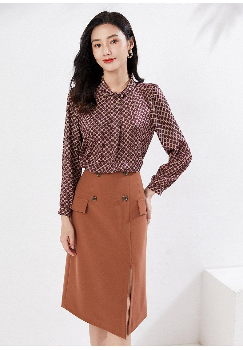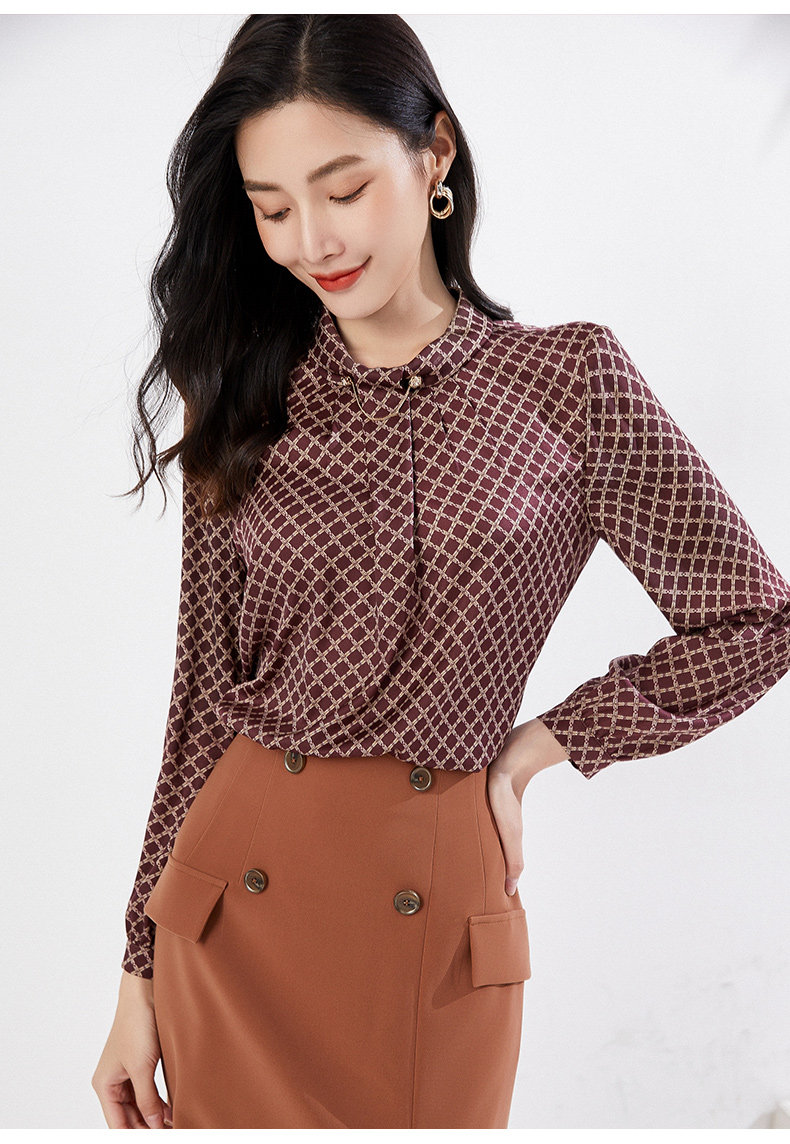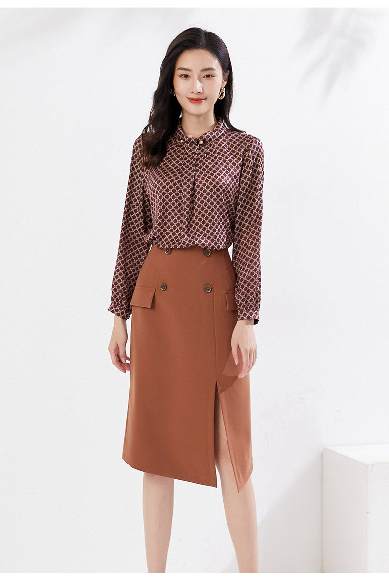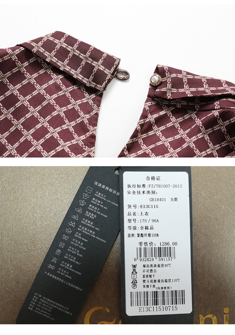乔万尼长袖衬衫气质立领上衣抽褶设计衬衣EI3C115