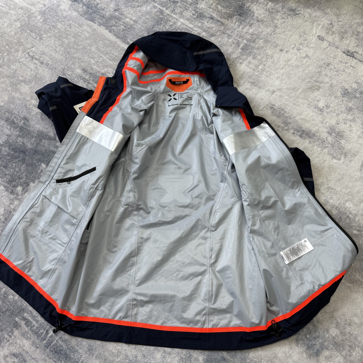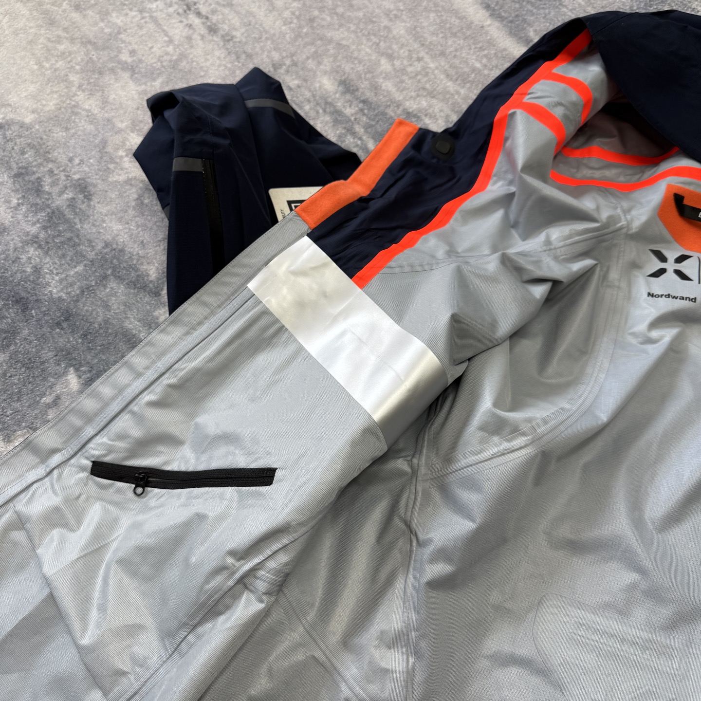 正经户外登山滑雪极限徒步版型,后背4D效果X logo点缀!到手看细节!内里橙色压胶条工艺➕镭射银压胶膜都堪称硬壳冲锋衣的天花板!