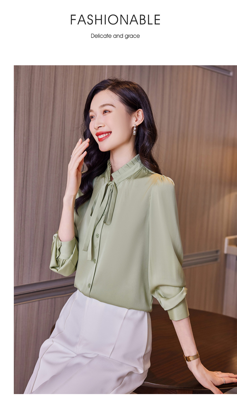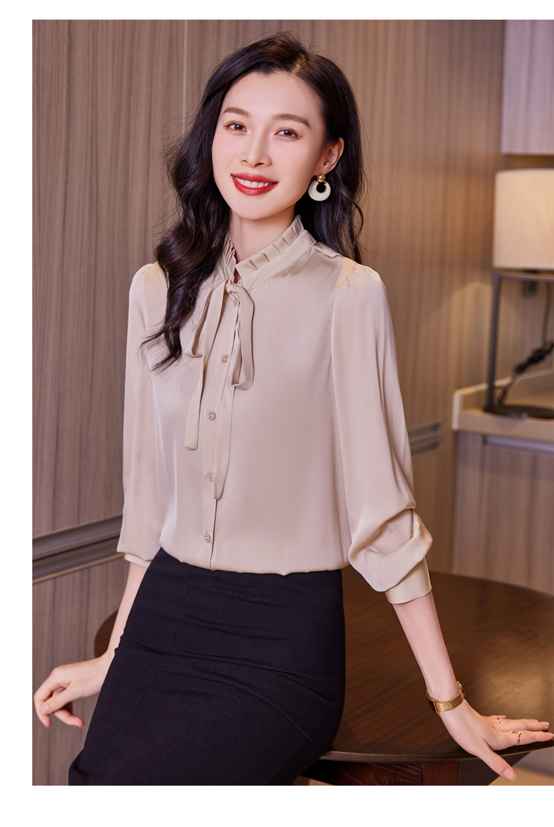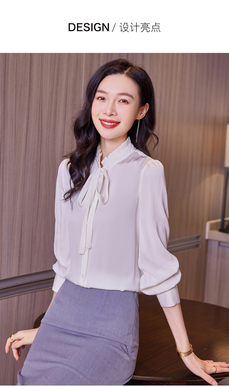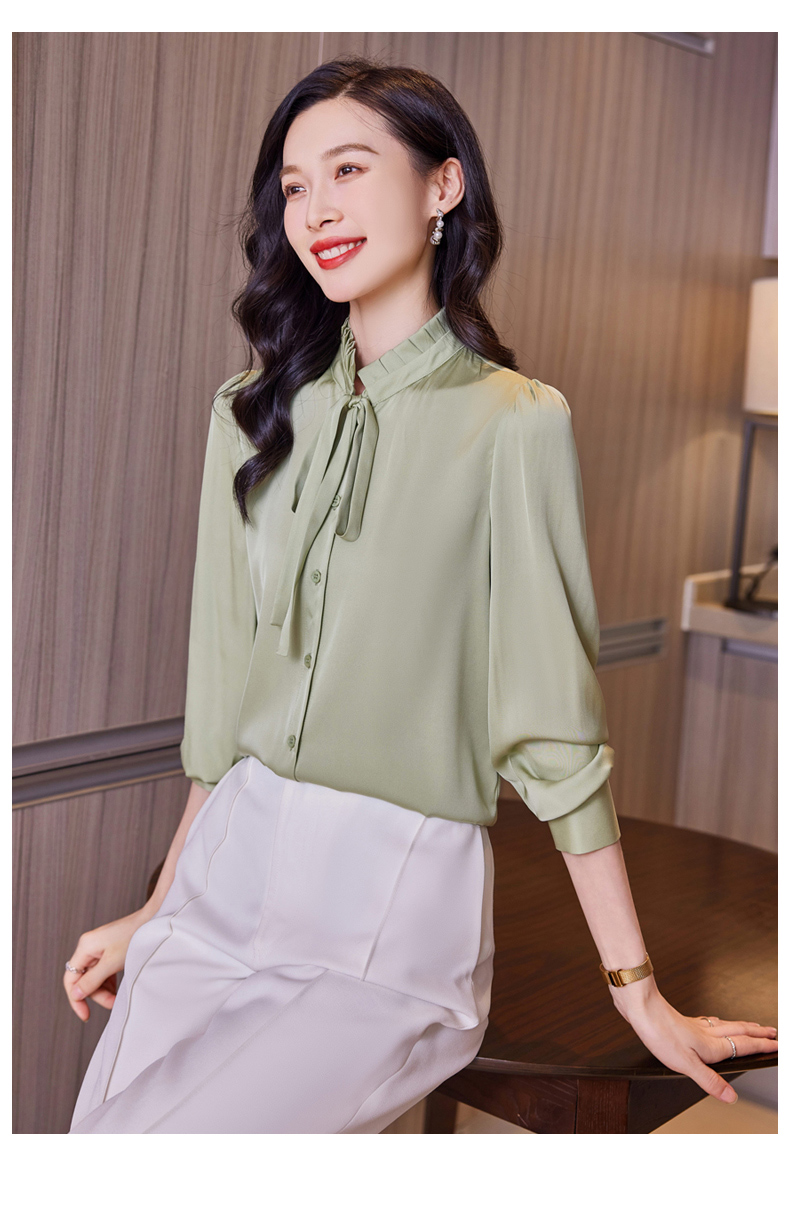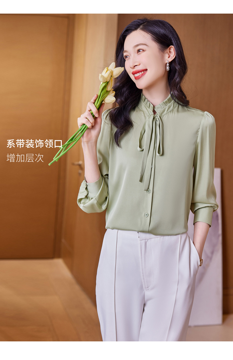 时尚优雅,褶皱系带领口真丝衬衫HR-ASE9623