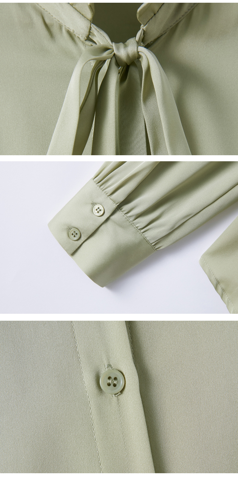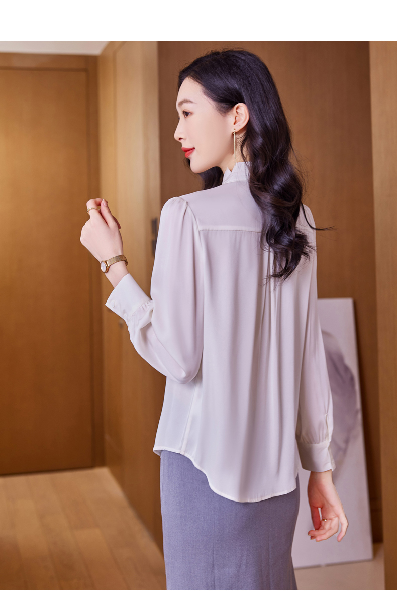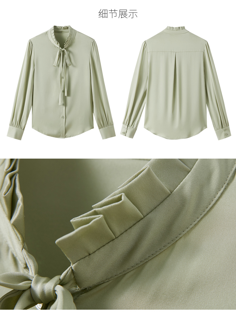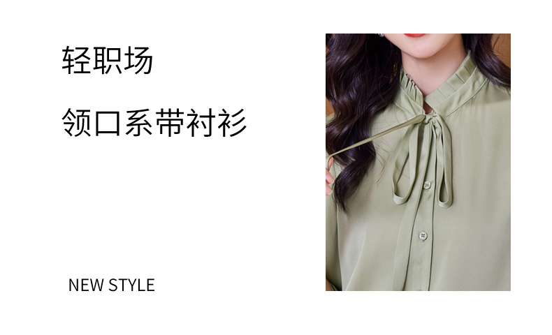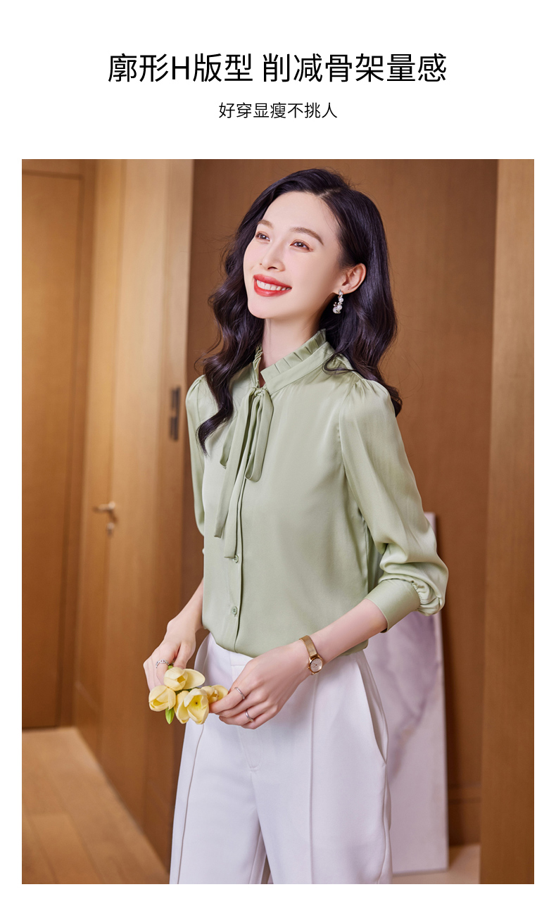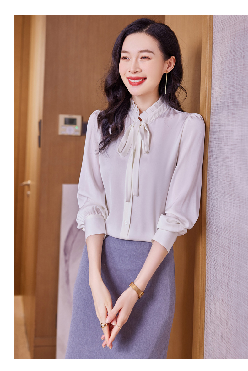 时尚优雅,褶皱系带领口真丝衬衫HR-ASE9623