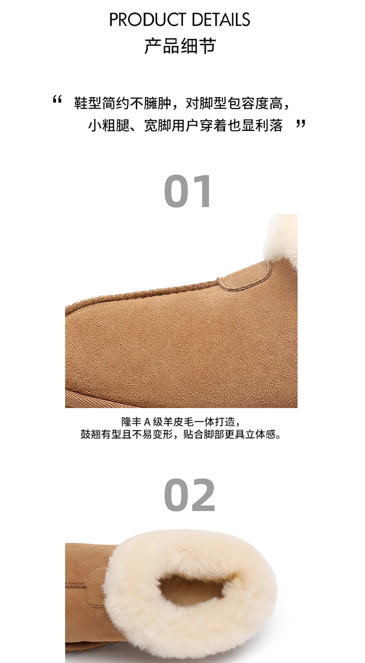 隆丰 冬季新款厚实A级羊皮毛一体塔次特植物氢底专利厚底毛边雪地靴短靴122228 商品图6