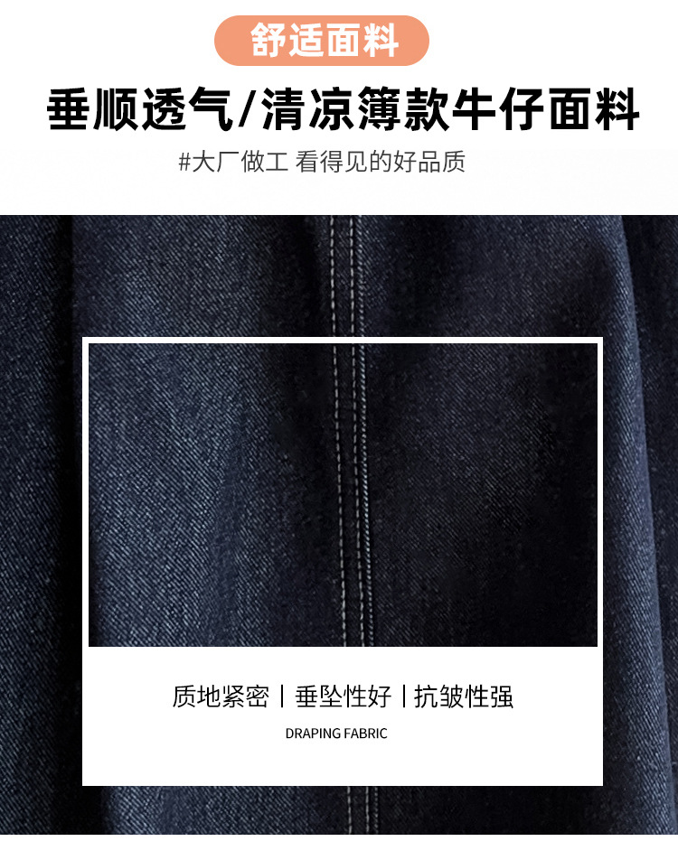 丁摩 深蓝色国风绣花洗水窄版阔腿牛仔裤女春秋新款高腰垂感直筒裤6ZF-1956