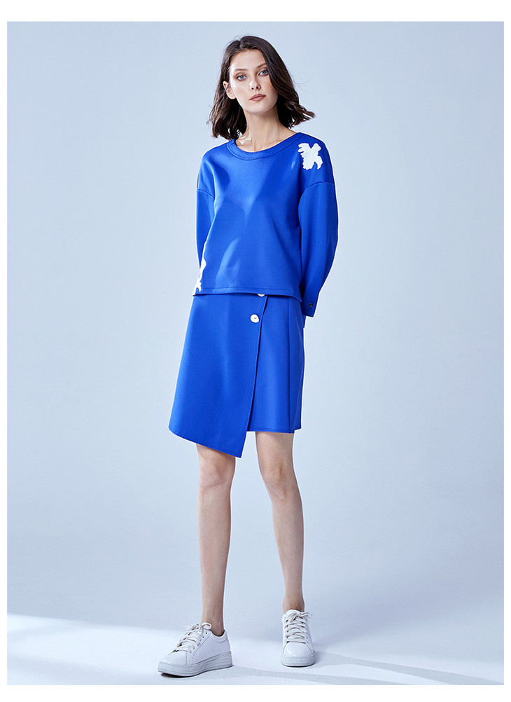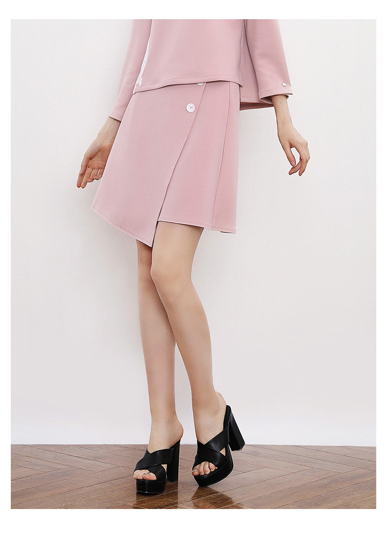 VIMAGE纬漫纪秋季女装拼接不对称A字裙半身裙半裙短裙女V906505