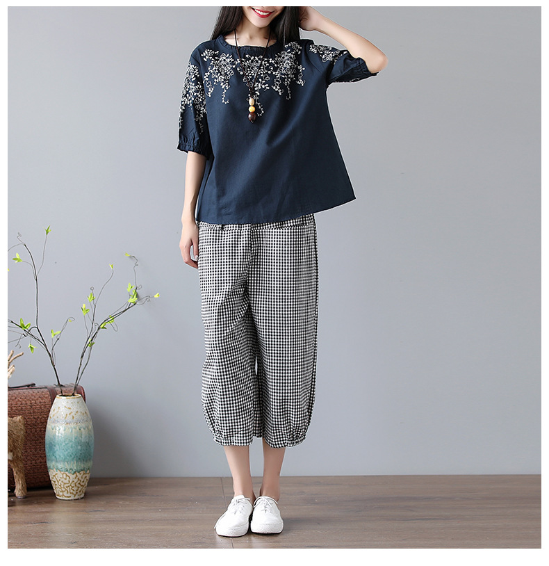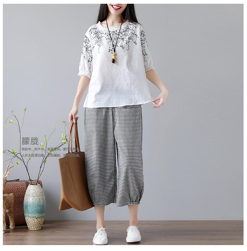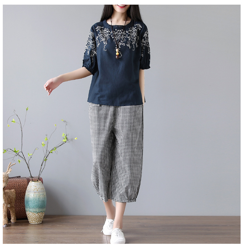 DHFY-EJOY8789新款大码女装复古文艺刺绣棉麻两件套