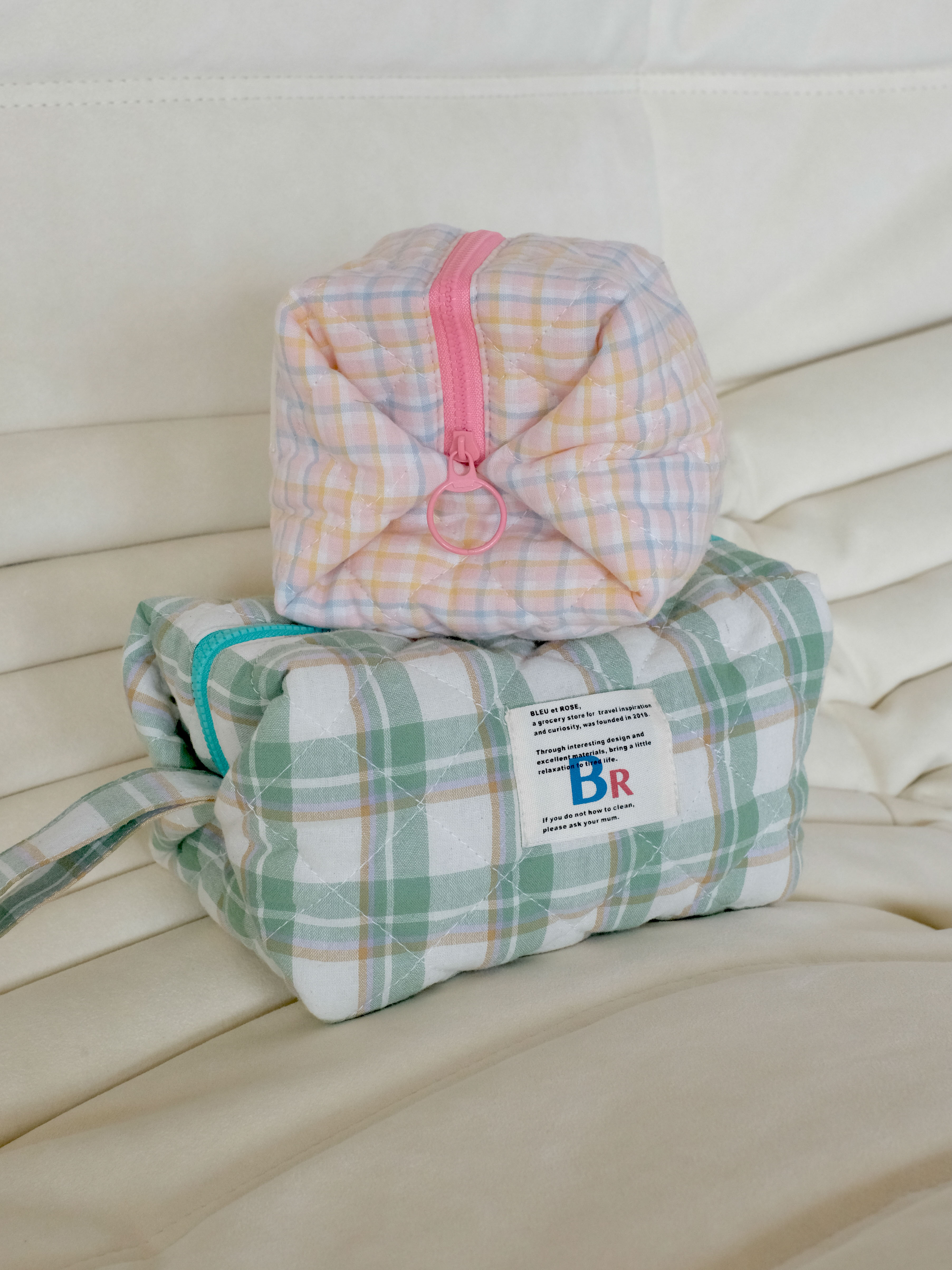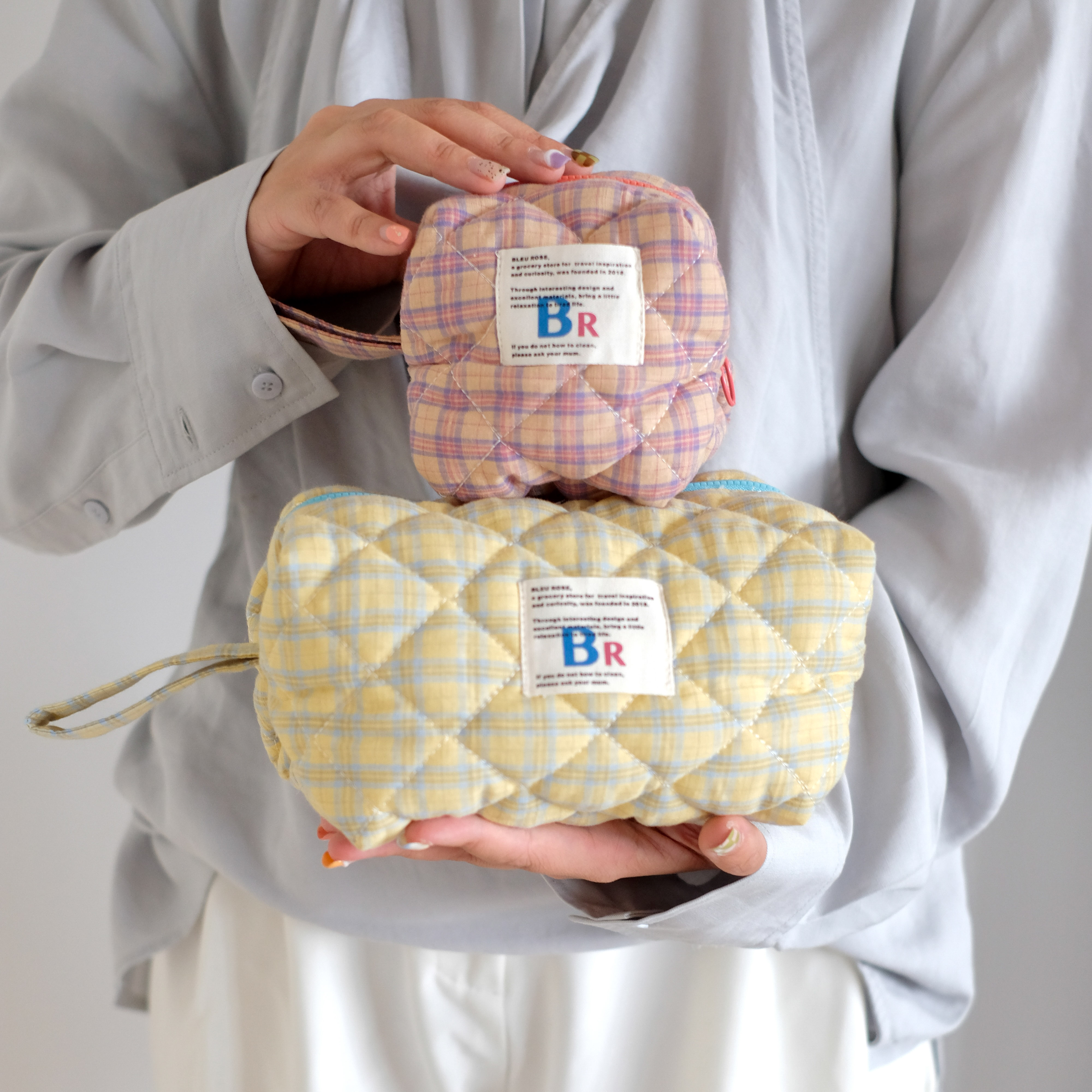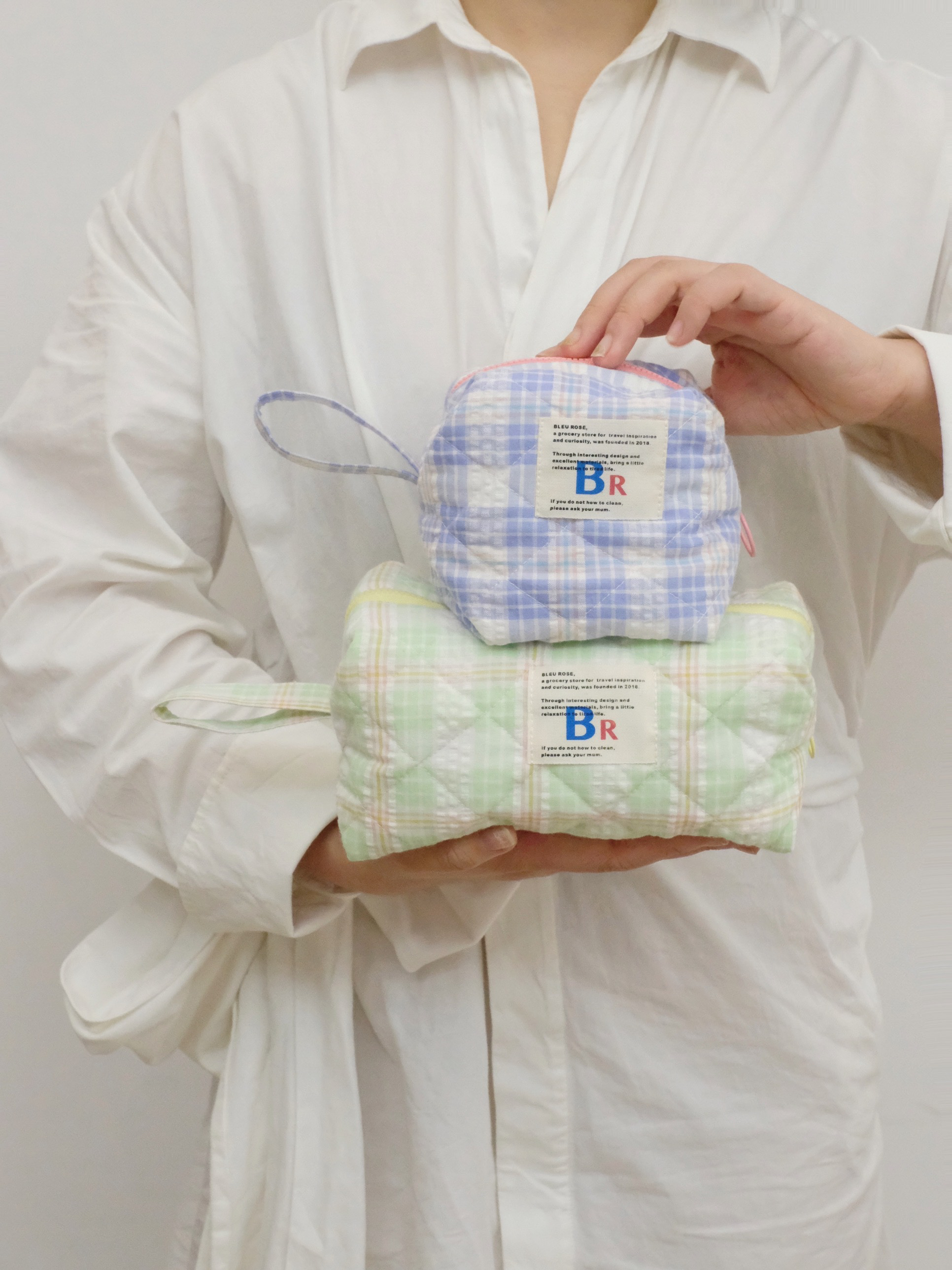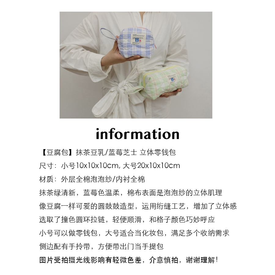 豆腐包 BLEU et ROSE ins风立体格纹大容量便携化妆包 小号/大号