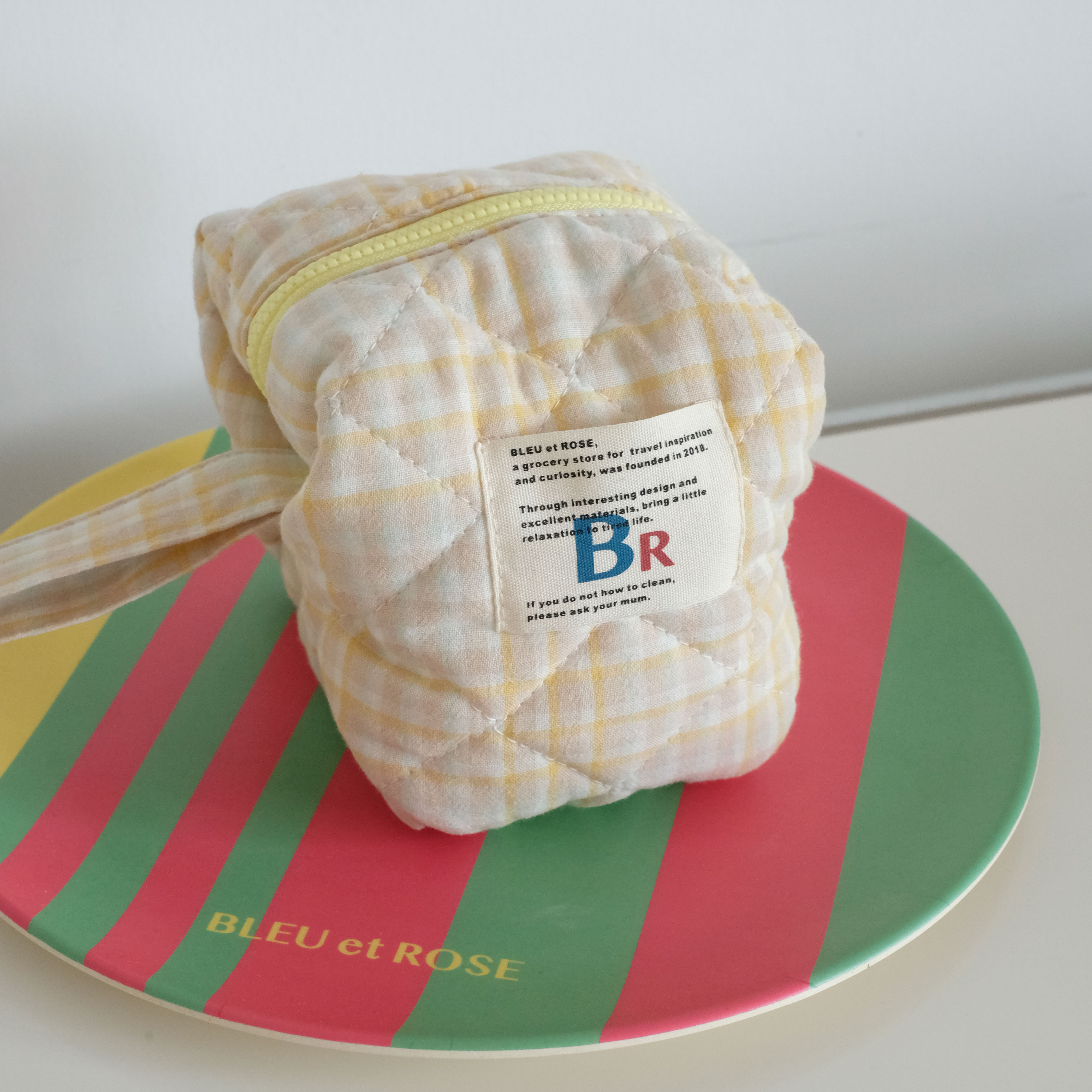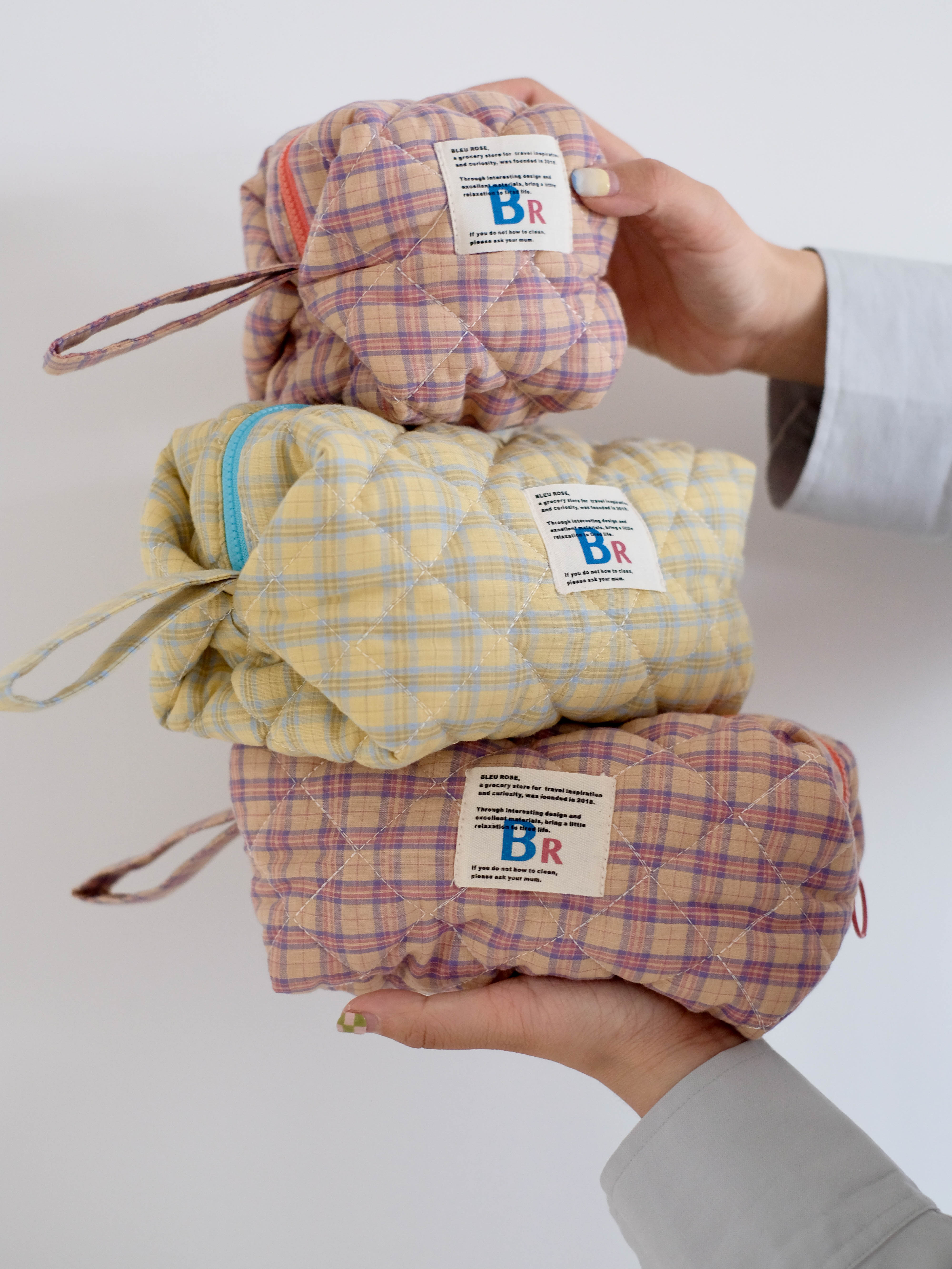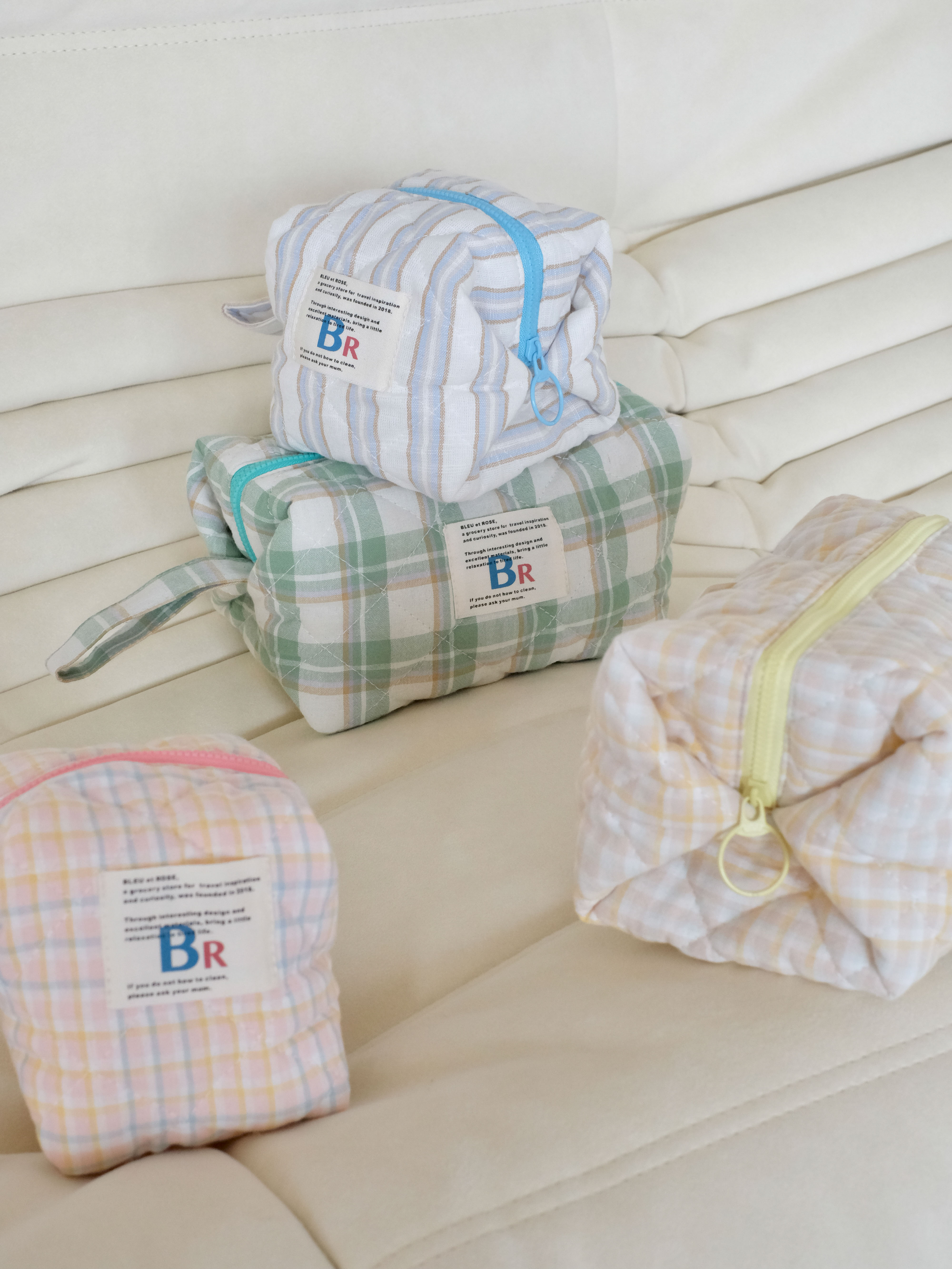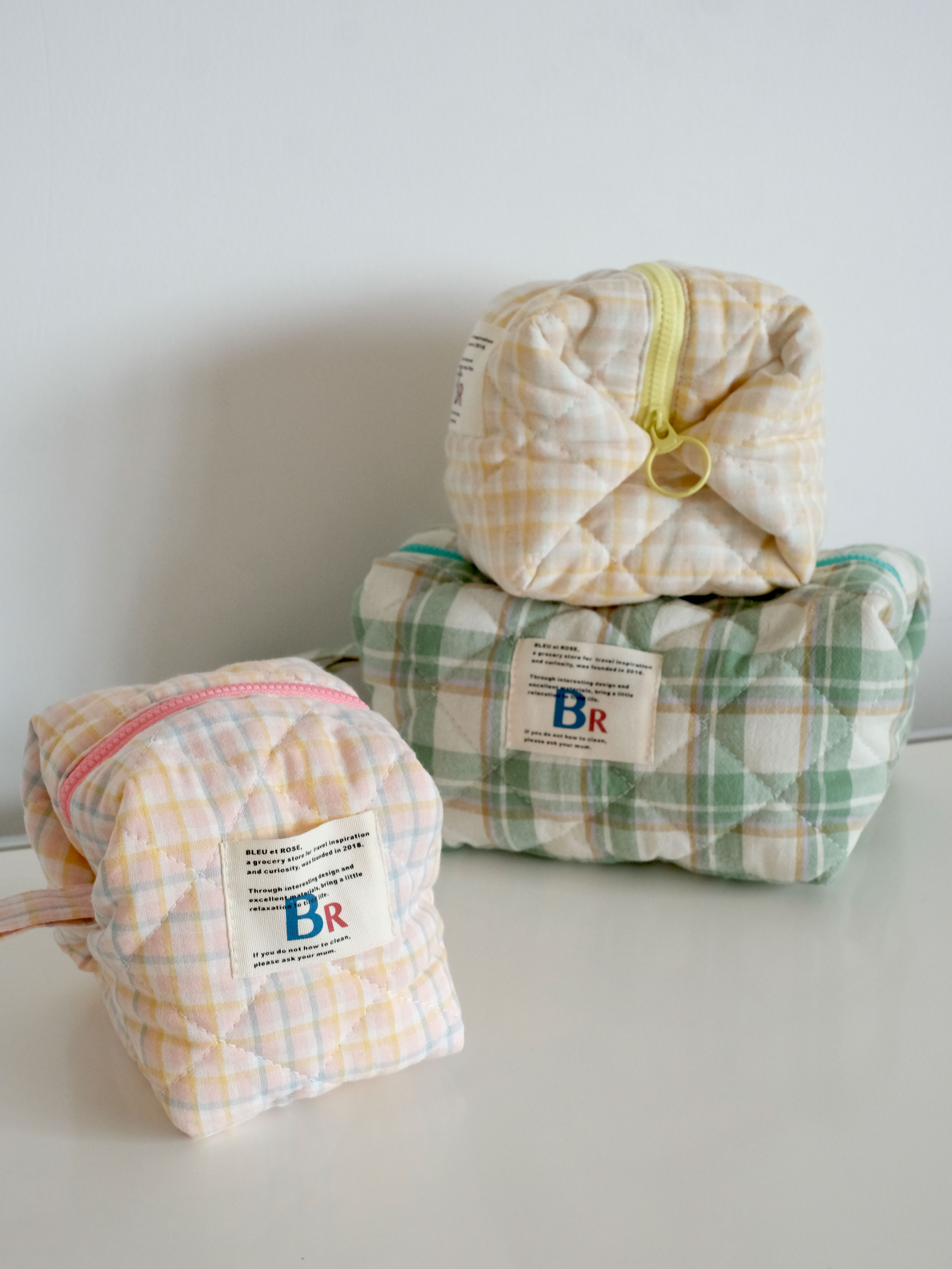 豆腐包 BLEU et ROSE ins风立体格纹大容量便携化妆包 小号/大号