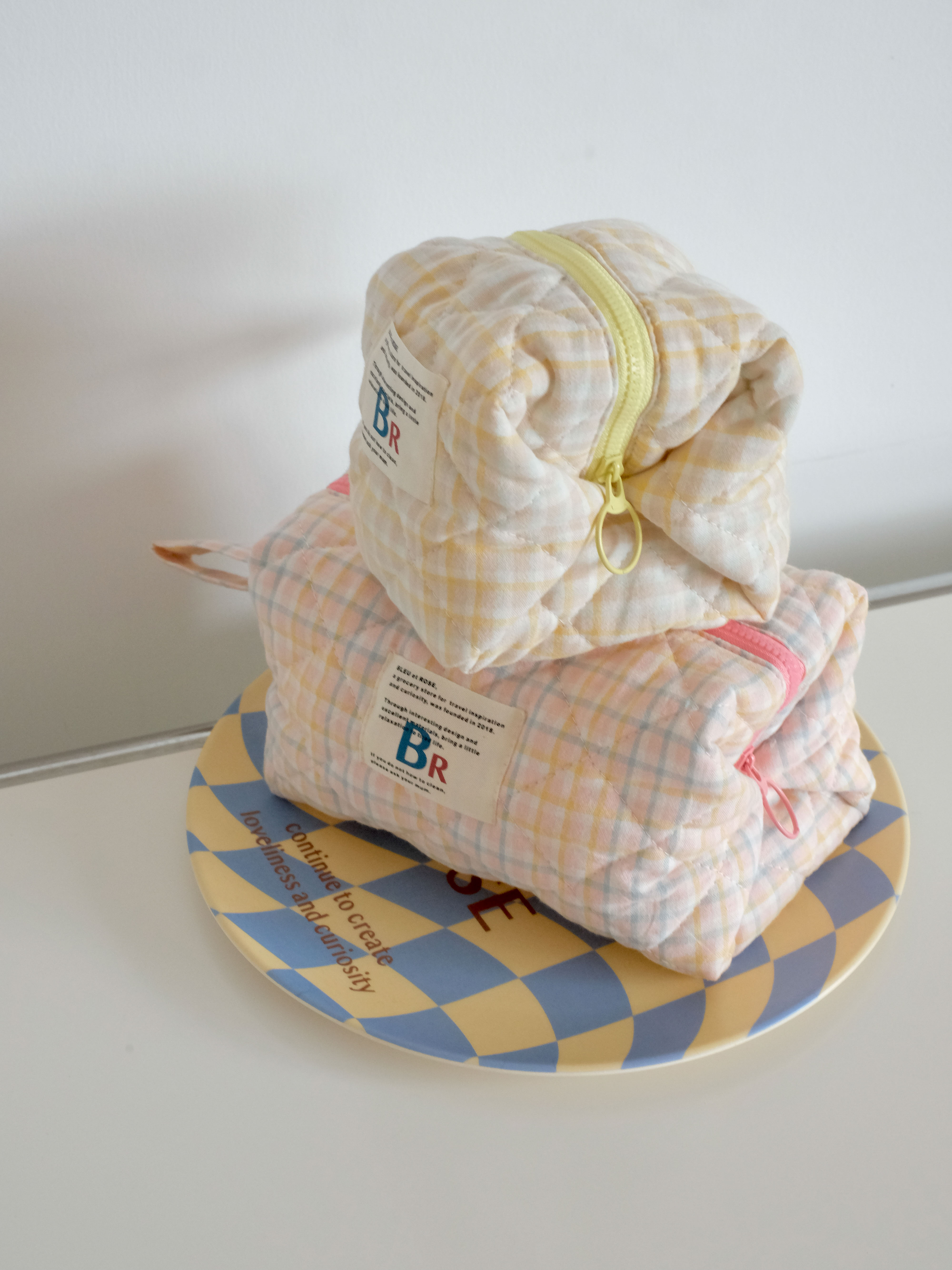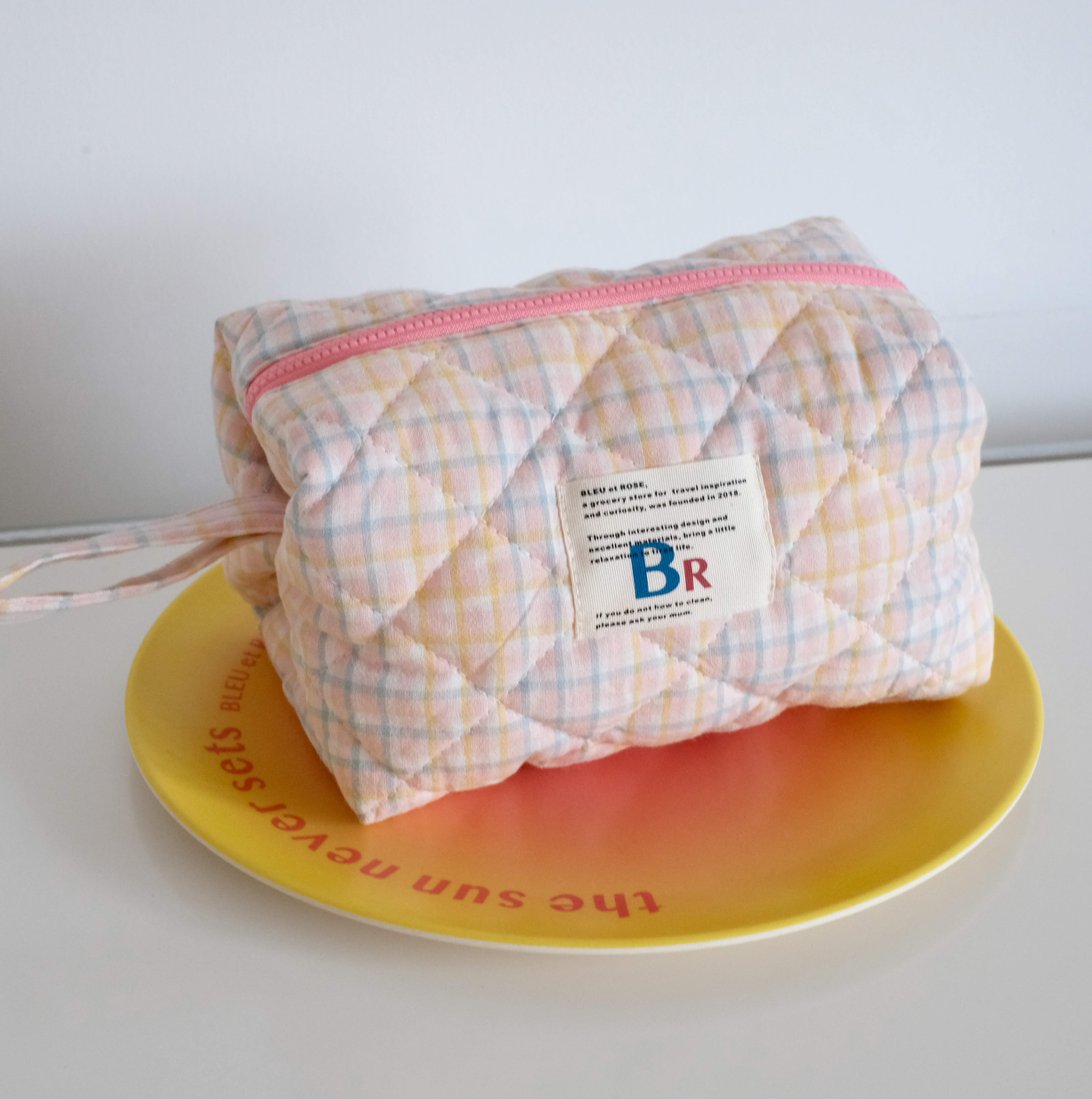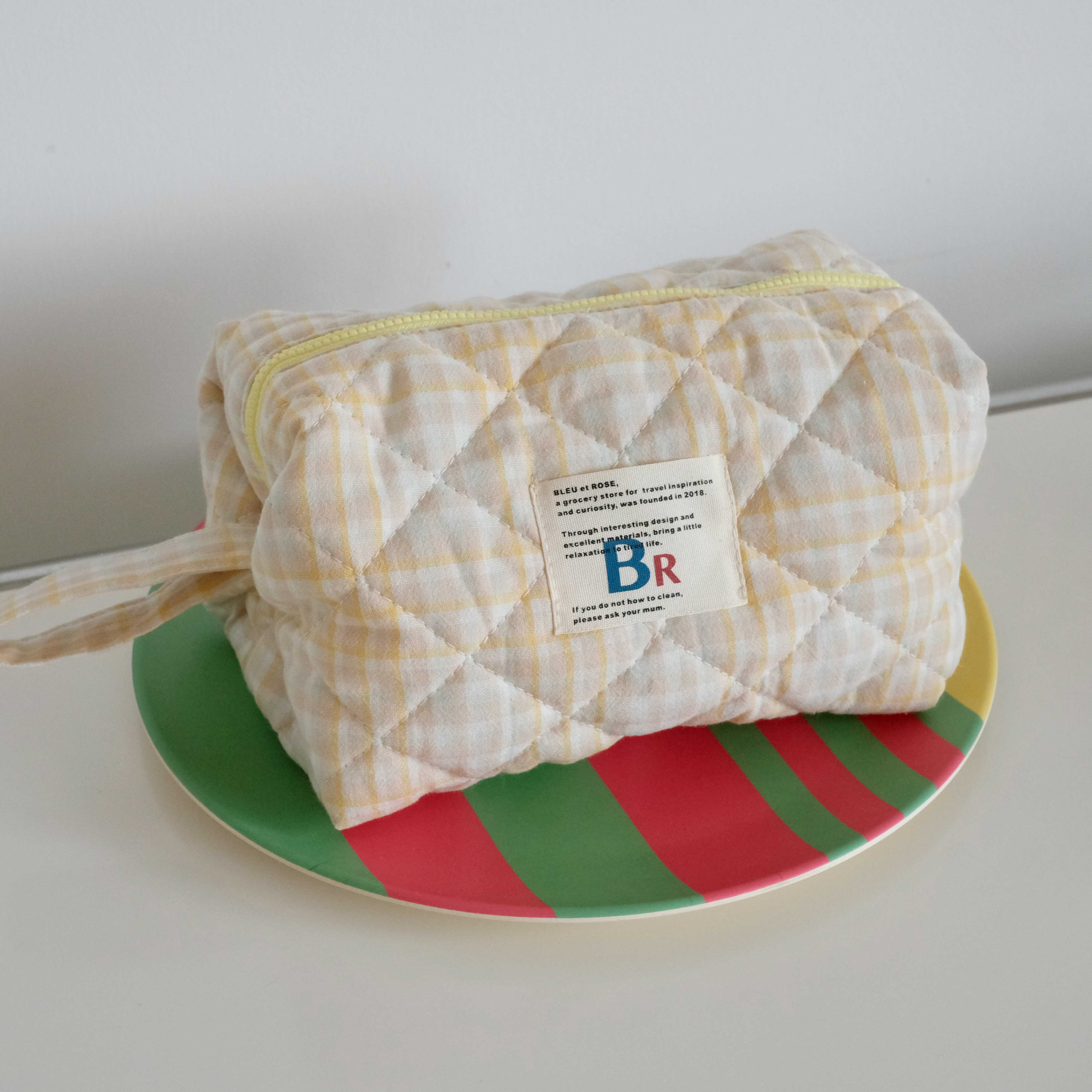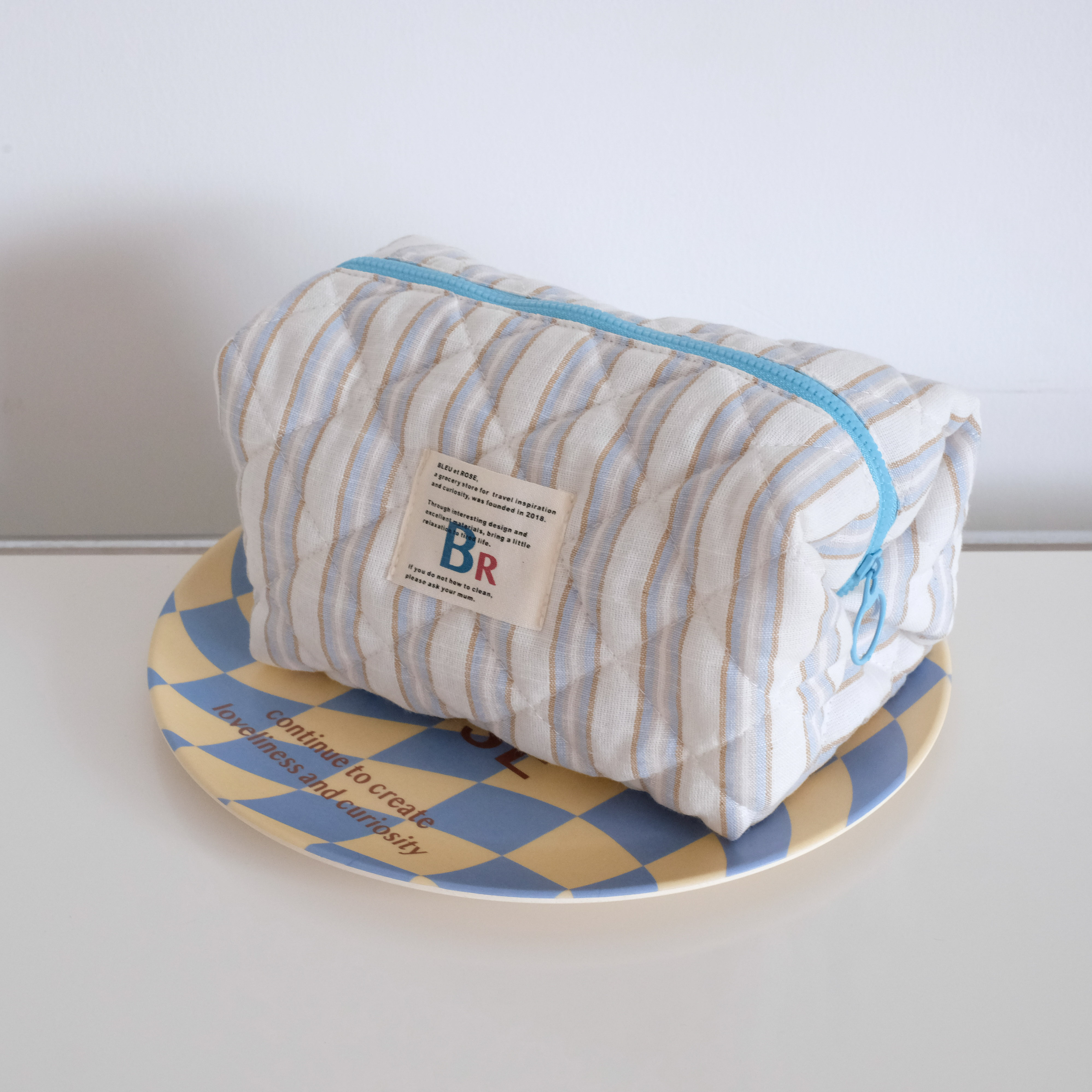 豆腐包 BLEU et ROSE ins风立体格纹大容量便携化妆包 小号/大号