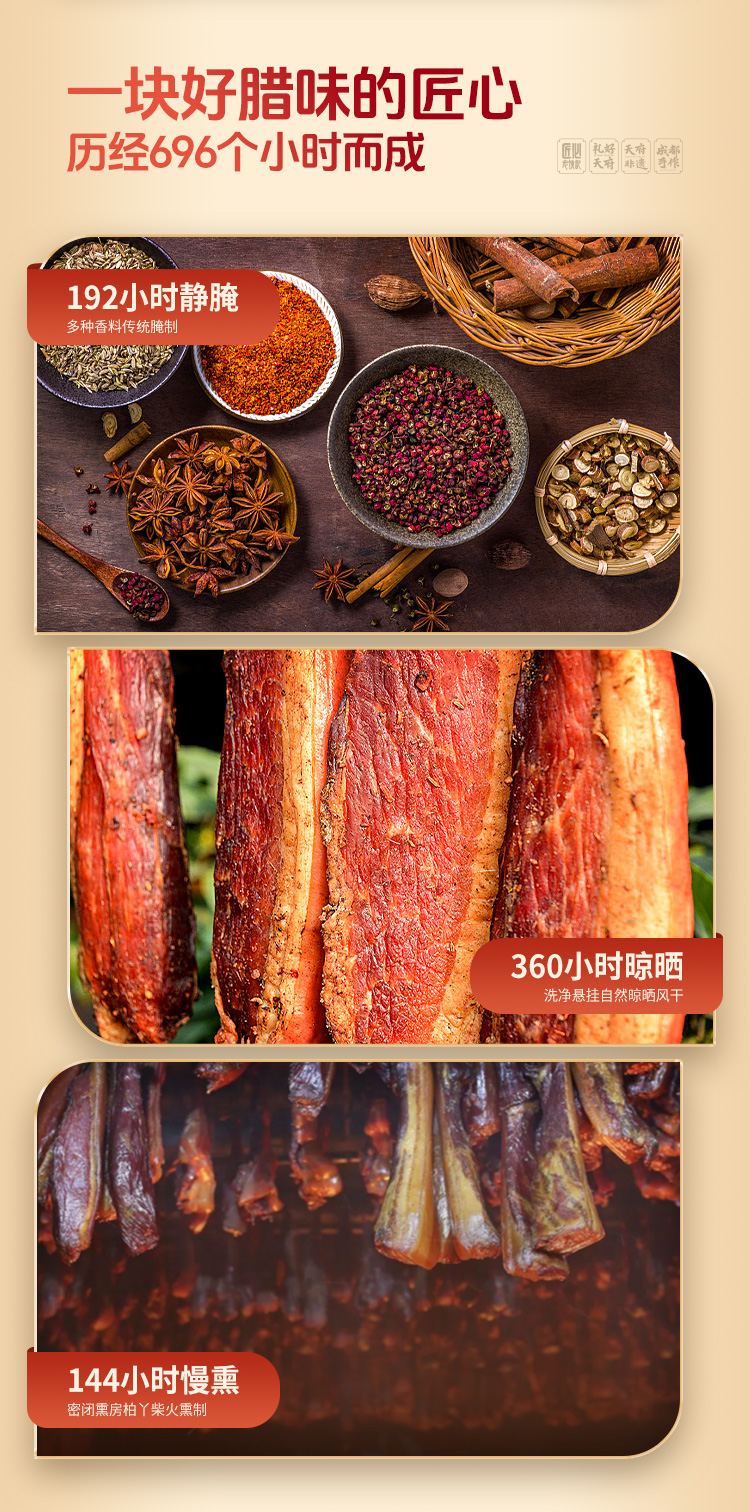 【产品特点】非遗技艺,精选原材,匠心手作,自然风干,色泽诱人,肉质细嫩,咸淡适中,不柴不腻;