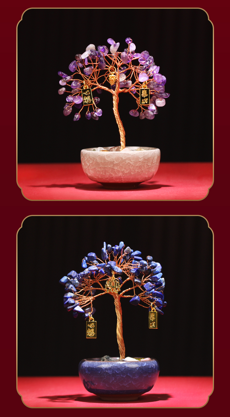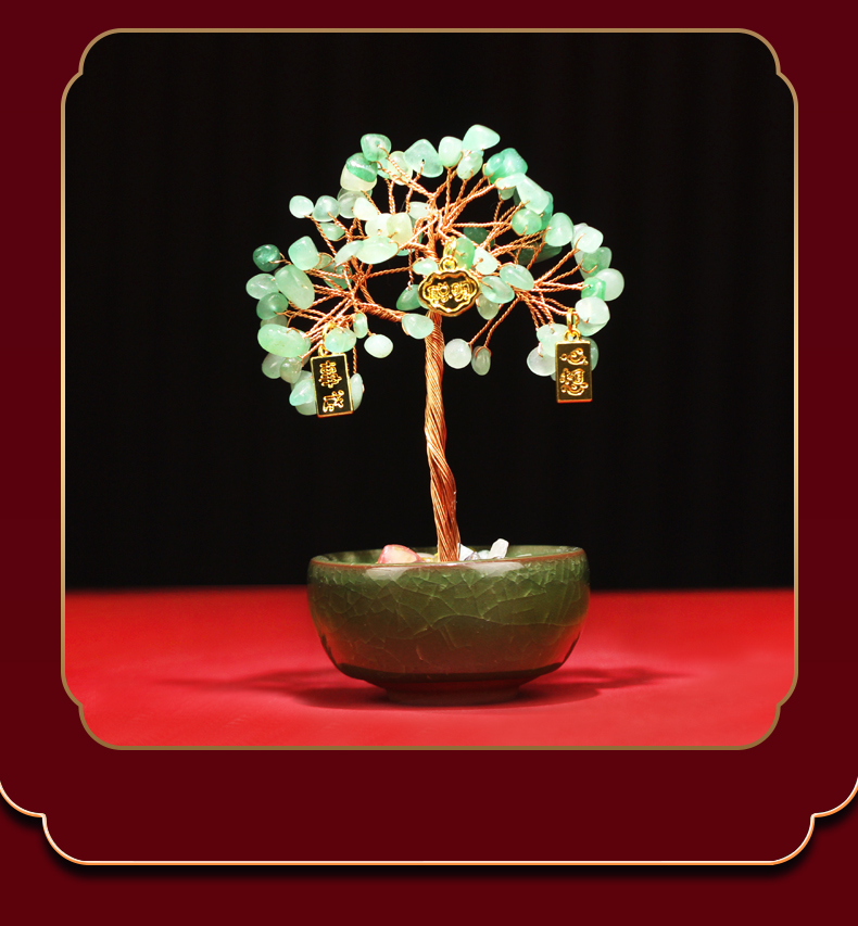 宋韶光大师新款聚宝盆茶盏底座水晶发财树摆件创意手工工艺品